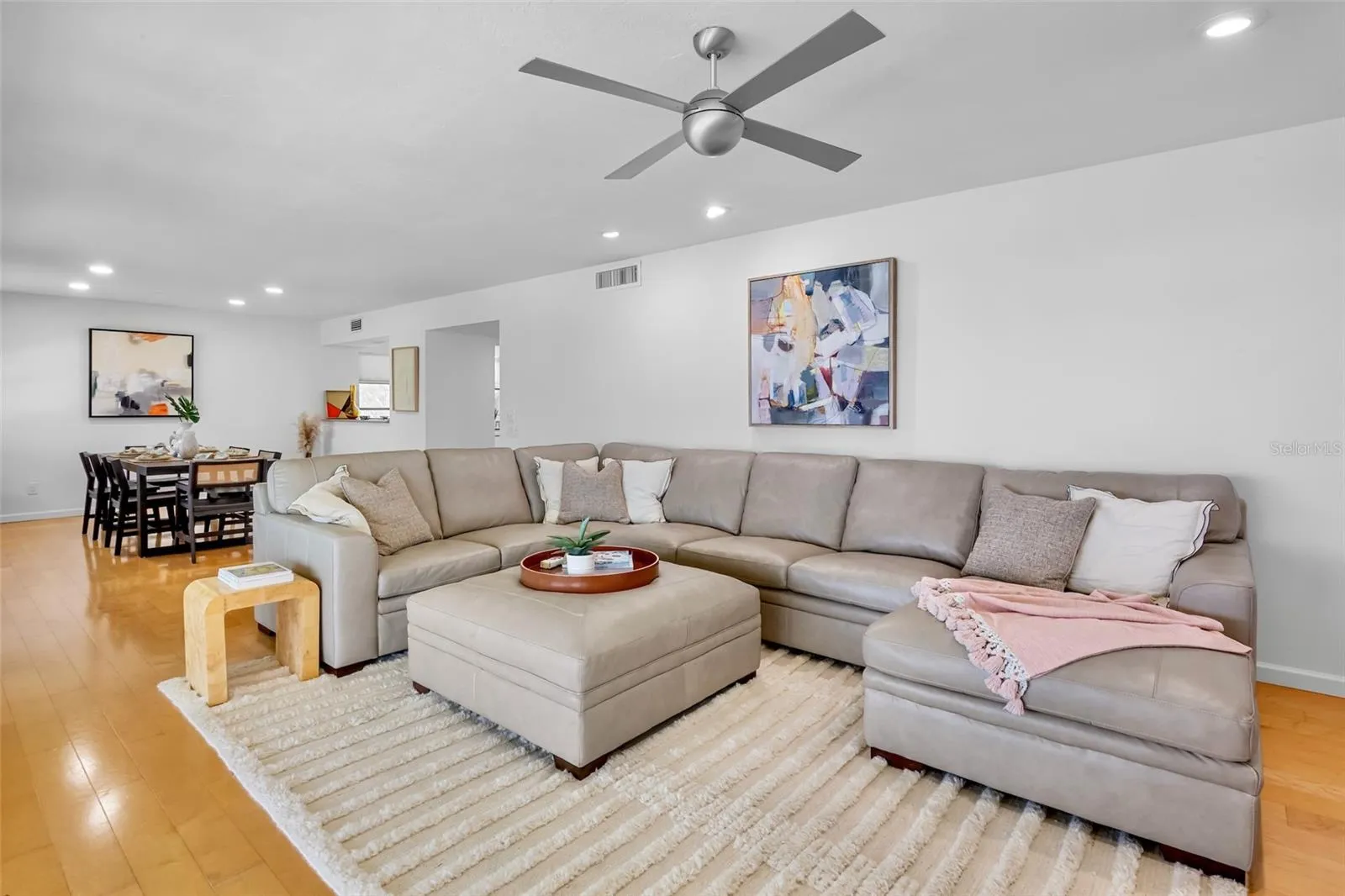 With over 1,600 sq ft of coastal-inspired living space, this residence features a spacious living room, tranquil dining area, and a serene owner’s suite with lanai access and a beautifully renovated ensuite bath. Recent updates include new carpet, furniture, recessed lighting, professionally painted interiors, mounted TVs, and a new AC and water heater (2024). Additional conveniences include in-unit laundry and covered parking.