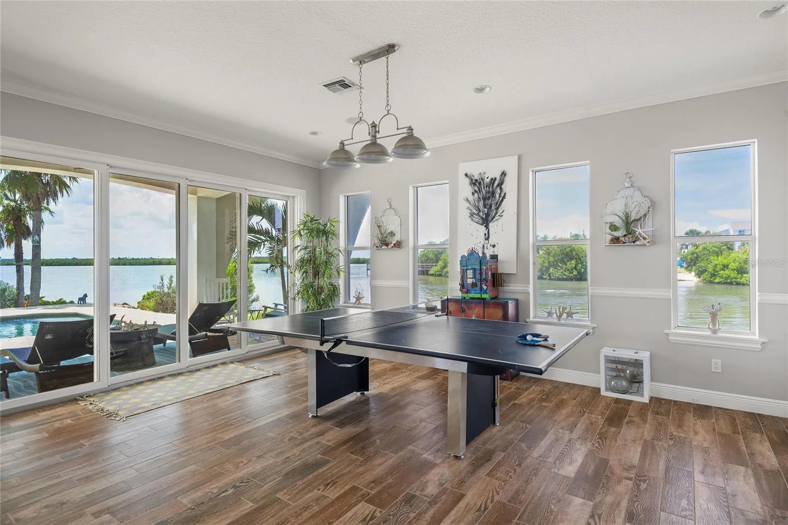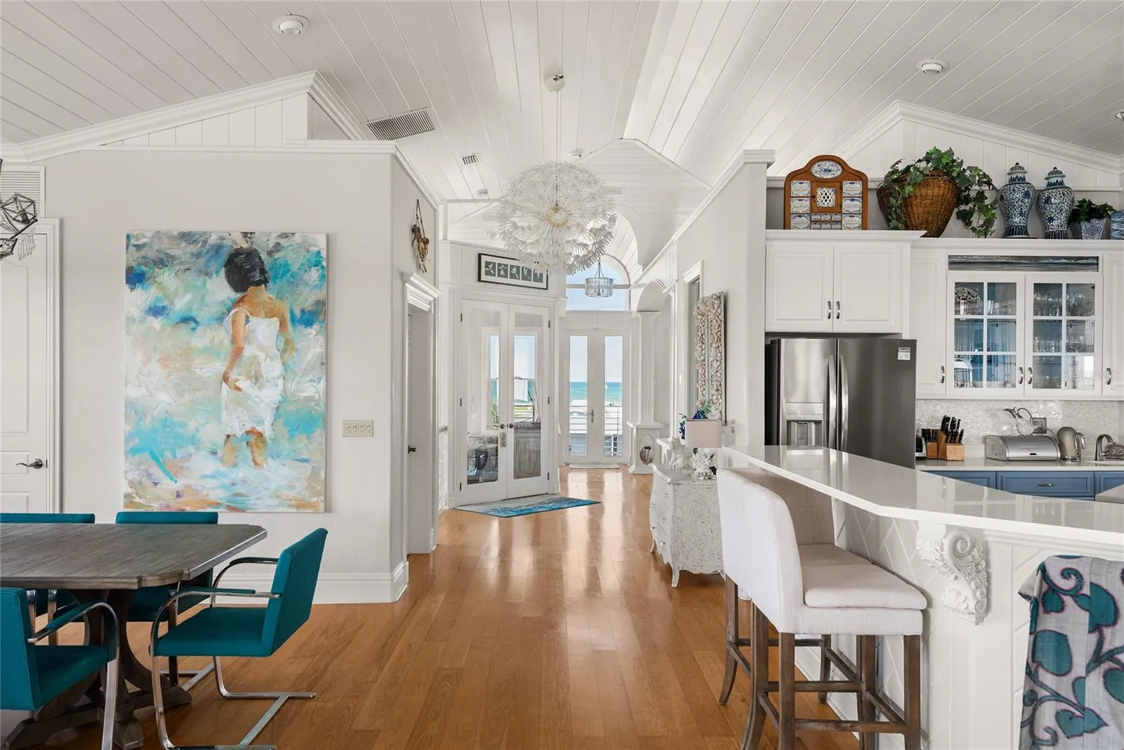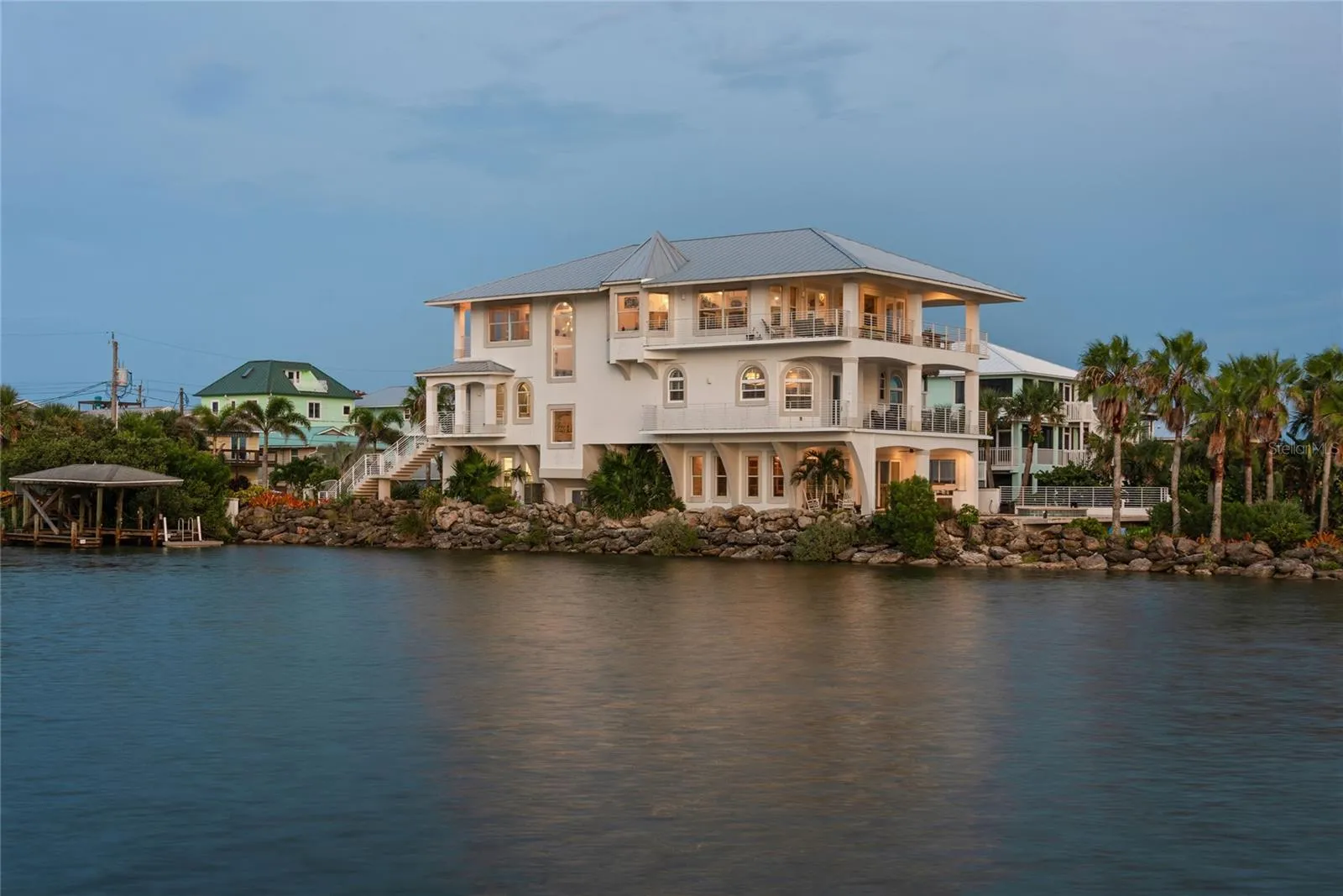 Manatee Point – Where Nature Paints the Hours – is a rare coastal estate that seamlessly blends refined luxury with the raw beauty of Florida’s most captivating landscapes. This 4-bedroom, 3.5-bath residence encompasses 5,531 square feet of living space, artfully designed to capture sweeping views of both the Indian River & the Atlantic Ocean. Nestled in the tranquil Bethune Beach enclave of New Smyrna Beach, the property offers an unparalleled lifestyle at the meeting point of elegance, comfort, & unspoiled nature. A private covered dock grants direct access to boating, fishing, & endless waterway exploration. Set along the Indian River, this home is more than a residence—it is a sanctuary. Each day begins with the sight of golden sunrises glistening across the water & ends with dramatic, color-soaked sunsets mirrored in the tranquil river. Dolphins leap playfully while manatees drift silently in the quiet cove, just steps from your backyard. Elegant herons, pelicans, & egrets arrive daily, transforming your waterfront into a living canvas of natural wonder. To the east, the Atlantic Ocean is only a block away, ensuring the sea is always within reach. Every room is oriented to celebrate these vistas, from the owner’s suite & formal dining room to the glass-enclosed office & expansive living spaces. Built with poured concrete for strength & permanence, the home was crafted with soaring ceilings, rich wood & marble floors, & an architectural floating staircase. A three-stop elevator ensures convenience, while walls of glass frame panoramic 180° views that blur the boundaries between indoors & out. At the heart of the home, a chef’s kitchen awaits, complete with quartz countertops, a gas range, butler’s pantry, & designer lighting. The primary suite serves as a private retreat, with dual walk-in closets, a coffee bar, & a spa-inspired bath featuring a Jacuzzi tub overlooking the river. Additional comforts include a second-floor laundry with granite counters, outfitted closets with custom storage, & a 969-square-foot three-car garage. On the first level, a private guest suite with its own living room & bath opens directly to the pool & dock, offering an ideal escape for family or visitors. The outdoor lifestyle here is second to none. A sparkling pool with waterfall Jacuzzi overlooks the river, while multiple balconies invite both sunrise coffee & sunset cocktails. Paddleboard or kayak from your backyard, stroll to world-class surf breaks, or fish the legendary waters of Mosquito Lagoon. Lush landscaping with mature palms enhances the sense of privacy & tropical charm. Modern upgrades include a whole-house water filtration system, impact-rated glass doors & windows (2018), nineteen new architectural windows (2025), two Lennox HVAC systems with transferable warranties (2024) & a durable metal roof (2014). These features ensure both luxury & peace of mind. Beyond your gates, New Smyrna Beach offers vibrant cultural & recreational opportunities. Stroll to the no-drive beach, kayak through Canaveral National Seashore, or watch rocket launches from nearby Kennedy Space Center. Just minutes away, Flagler Ave & Canal Street deliver boutique shopping, dining, & art. Championship golf, Daytona Speedway, & Orlando’s theme parks & international airport are within easy reach. More than a home, Manatee Point is a private waterfront sanctuary—an inspiring retreat where natural beauty & refined living converge in one extraordinary address.