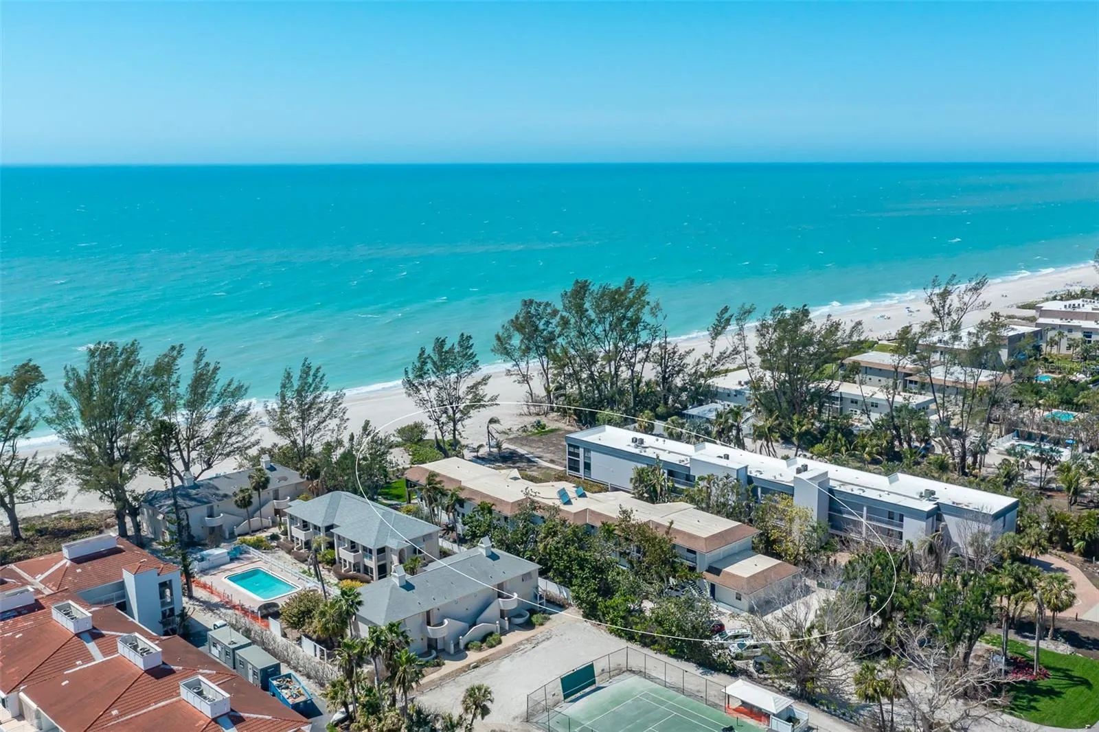 Attention Investors! This is a rare opportunity to own on the beach on LBK and collect rent. The GROSS INCOME from 1/1/25-10/12/2025 is $62,469. This intimate, unique beachfront resort has only 8 condos and is available for daily, weekly or monthly rentals. All condos are beautifully appointed and smoke free. You will enjoy many relaxing hours on the beach where chairs are provided for you. The kitchen has stone counters and every small appliance you like to use. The screened porch is a quiet refuge from which to view the Gulf water and the lush landscaping. On site management handles all rentals, cleaning, advertising, bookkeeping and other administrative business. There are no HIDDEN CHARGES, (NO linen rental fee, NO cleaning fee, No business tax fee,) as there are in other vacation rentals. This lovely condo is being offered TURNKEY FURNISHED. Restaurants, nature trails, a park with tennis and pickleball, and food shopping are close by. Financials will be provided upon request. This condo is heavily booked so showings are available only on check out day which is usually Saturday at 10.Call agent for availability. Life is good on Longboat Key!