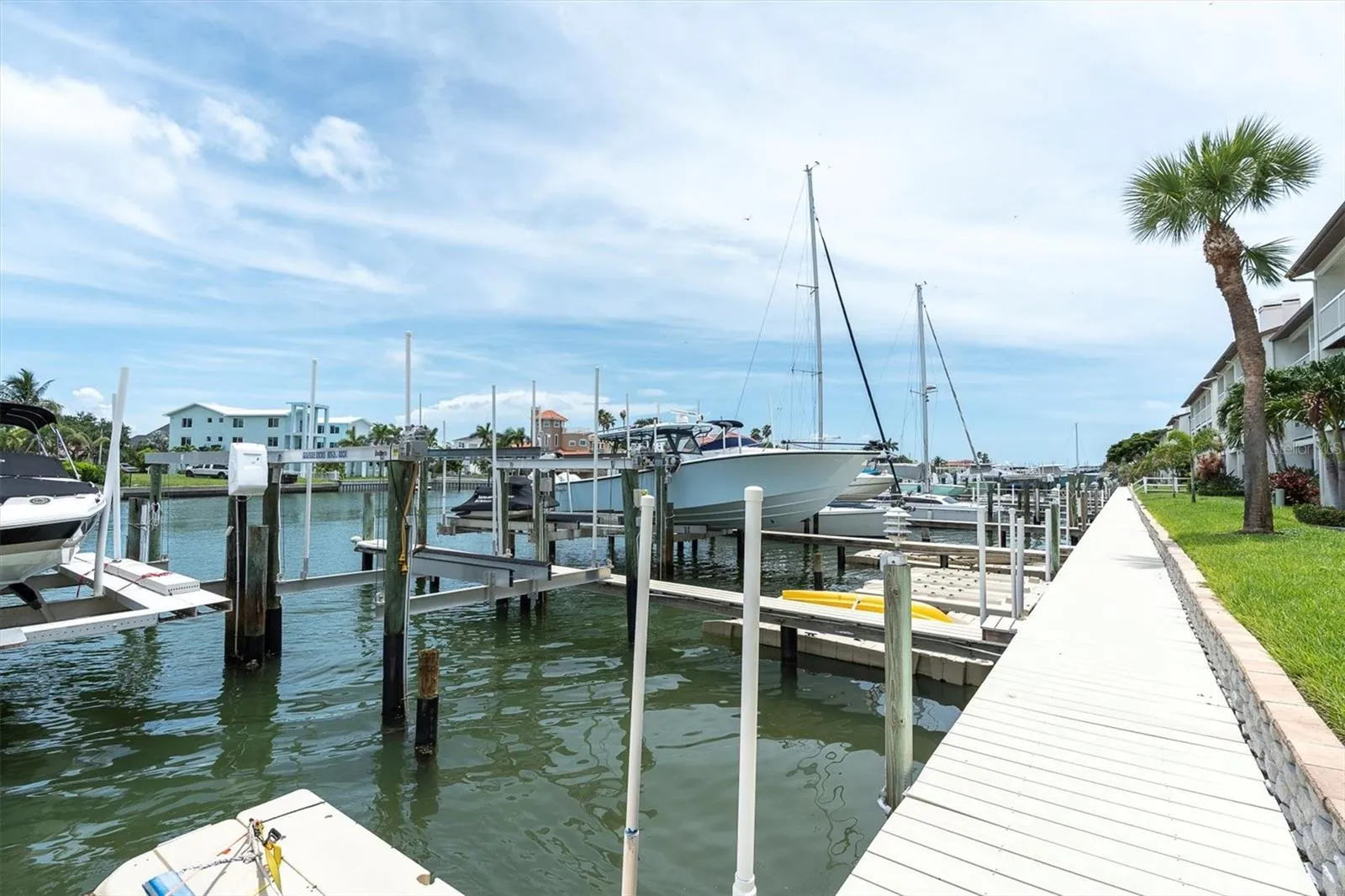 Calling all boaters! Don’t miss this absolutely beautiful WATERFRONT townhome offering a DEEP WATER, 50 FT DEEDED BOAT SLIP located right outside of your back door! Beautifully updated and decorated in true coastal style, this 3 bedroom, 3 bath furnished townhome is A MUST SEE with features galore!! Upon entry, you are welcomed with a custom tropical etched glass front door leading to a marble floored entryway. The inviting kitchen is equipped with white shaker cabinets, gorgeous marble countertops, a marble geometric design backsplash, under-cabinet lighting, and stainless steel appliances. A counter-height bar with seating and additional storage cabinets completes the space. Brand new hurricane-impact windows, sliding doors, skylights & garage door provide piece of mind! Inside you’ll find waterproof luxury vinyl plank flooring throughout, a modern wood and steel cable staircase railing, plantation shutters, crown molding and a stacked stone wood-burning fireplace with a custom wood mantle. All 3 levels provide serene waterfront views with an outdoor patio on the ground level and private balconies off both the living room and master bedroom (fully furnished and ready for your enjoyment!)! All 3 bedrooms boast en-suite bathrooms with the master bath featuring custom built in closets, quartz countertops, a double vanity, and a huge walk-in shower with double shower heads and a bench seat. The private dock provides a 13,000 lift, Wearguard decking and electric and water hookups. This protected deep water location leads to the bay in under 1000 feet and is minutes to open water with NO DRAWBRIDGES. Additional features include an air-conditioned bonus room (not included in square footage). Palms of Tierra residents enjoy a community heated pool and spa, fitness center, tennis courts, and a fishing pier. This pet-friendly community is located on the island of Tierra Verde- 2 minutes to running/ bike trails, 5 minutes to Fort DeSoto beaches, 5 minutes to the words famous St Pete Beach, 10 minutes to downtown St Petersburg, 40 mins to TPA airport, and just steps away from from a boating cruise. There’s nothing like waterfront island living and your boat right outside calling your name. You don’t want to miss this one! Copy and paste to see the video tour at https://lightlineproductions.hd.pics/307-Madeira-Cir/idx