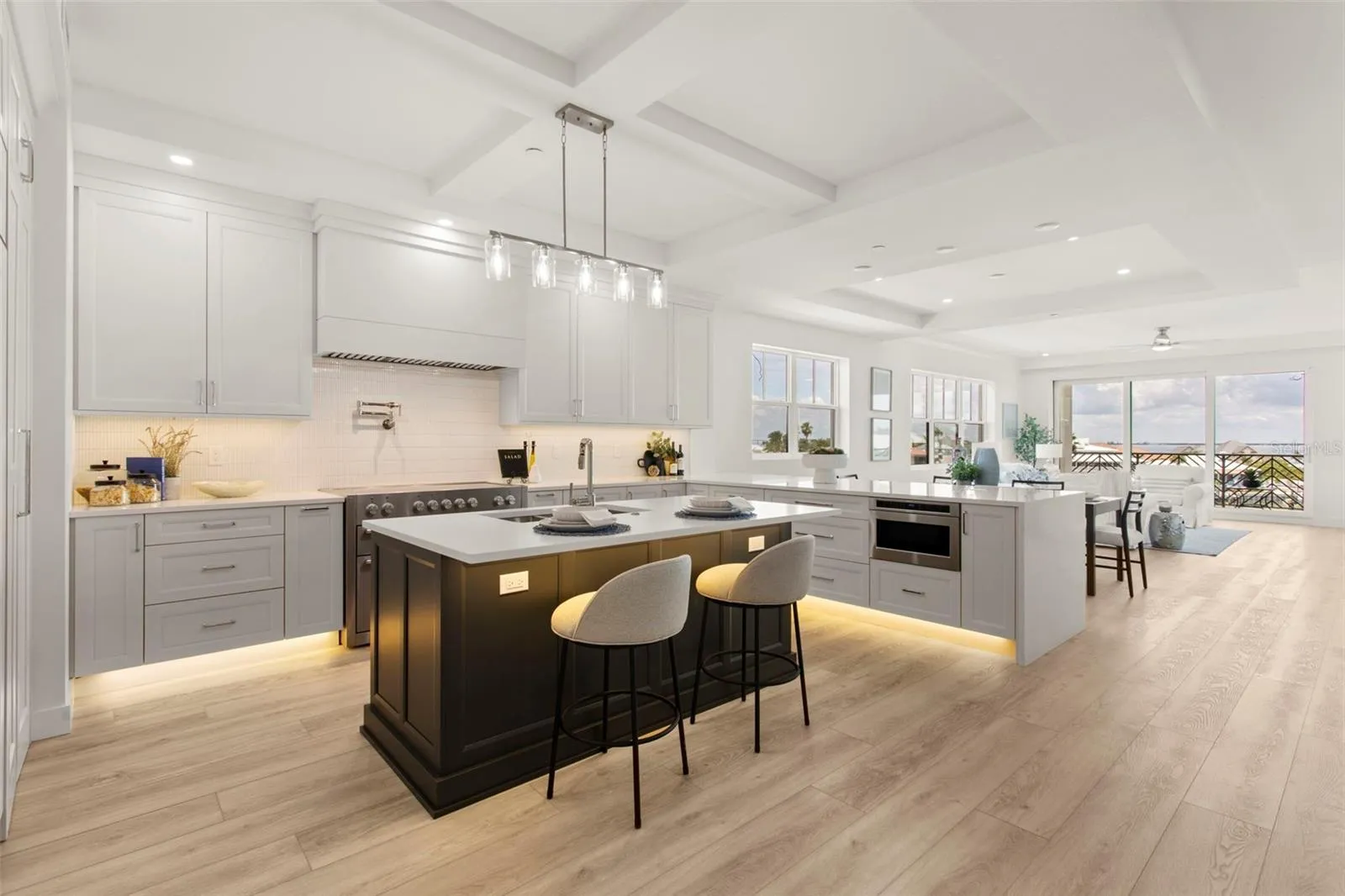 Step inside via your private, secured elevator into a beautifully appointed entry foyer and be immediately immersed in the home’s elevated coastal aesthetic. Wide-plank driftwood-style flooring, soft-close shaker cabinetry, and designer lighting set the tone for relaxed luxury throughout.