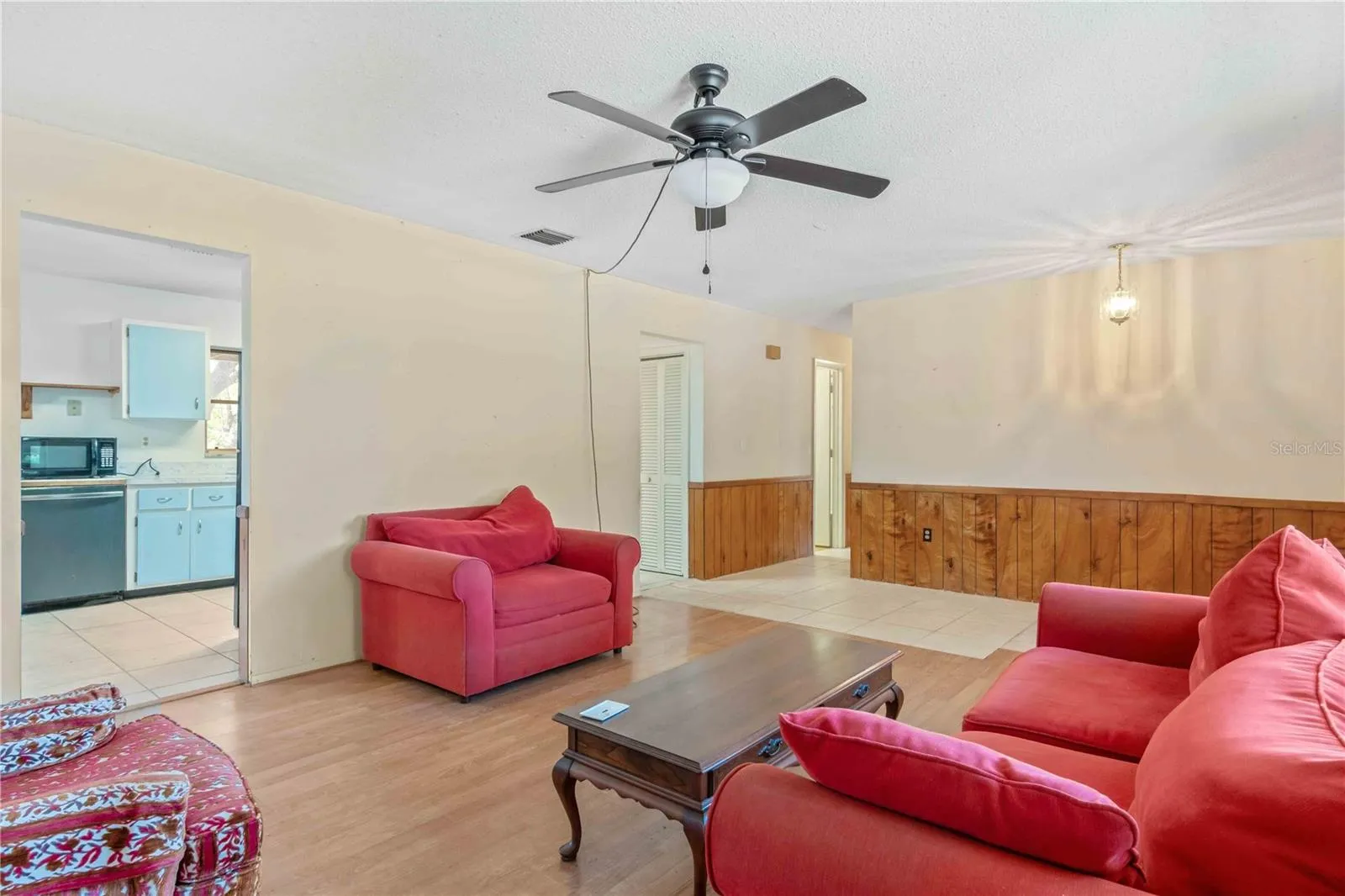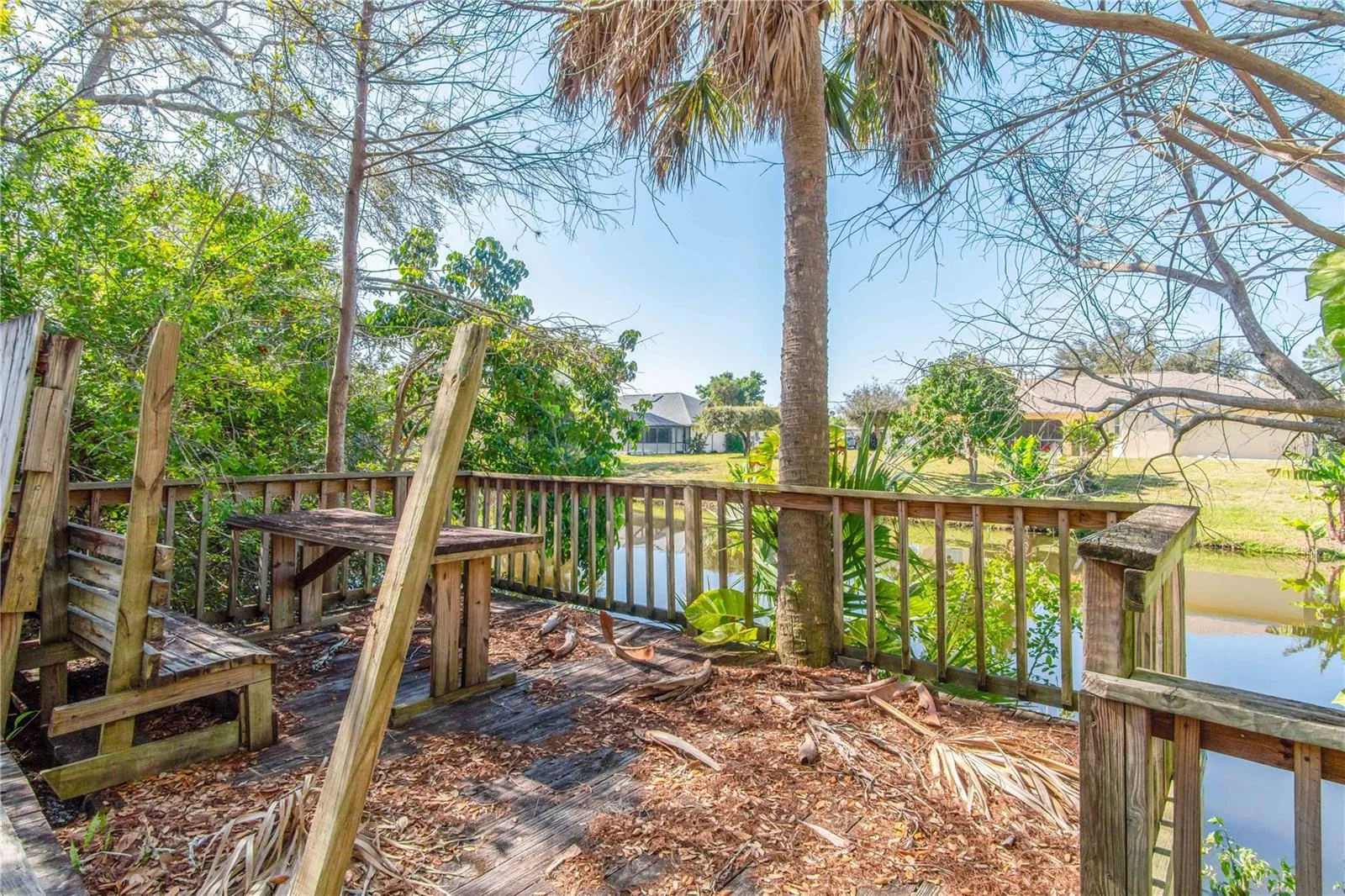 Under contract-accepting backup offers. DOUBLE WATERFRONT LOT HOME! This is a diamond in the rough with tons of potential! Let’s begin with the most important features… *2023 – New roof, soffit, and fascia *2022 – New electric panel *2020 – New septic tank and drainfield *2019 – water heater *Updated garage door *Double waterfront lot with seawall *Not in a flood zone *No deed restrictions or HOA *Detached 22×30 garage *4×6 Screened garden enclosure *Fenced chicken coop area *Backyard shed *10×17 Wood deck overlooking the water with concrete stairs leading down. This is a three bedroom home with an additional flex room/office area. The office has an exterior door opening to the side fenced-in yard, in addition to the french doors opening into the large 22×14 family room. This family room is bright and beautiful with wood tongue and groove ceilings and accent walls, traditional Mexican floor tile, and a decorative gas fireplace. The kitchen offers the perfect pallet for making this home your own with serene waterfront backyard views. The double door laundry closet currently houses the washer and dryer (which are included), plus there is extra storage space to be creative with. All three bedrooms are located on the same side of the house. The two guest rooms share the hallway bathroom which has a tub/shower combo. The master bedroom has its own bathroom with a walk-in shower plus an exterior door leading out to the large 14×14 screen enclosed lanai with glass windows making it a great place to relax all year long! With some TLC, the backyard will be amazing with all of the plants & gorgeous mature trees. With almost 1/2 an acre of land (including the additional waterfront lot), your canvas is even larger for bigger and better things!