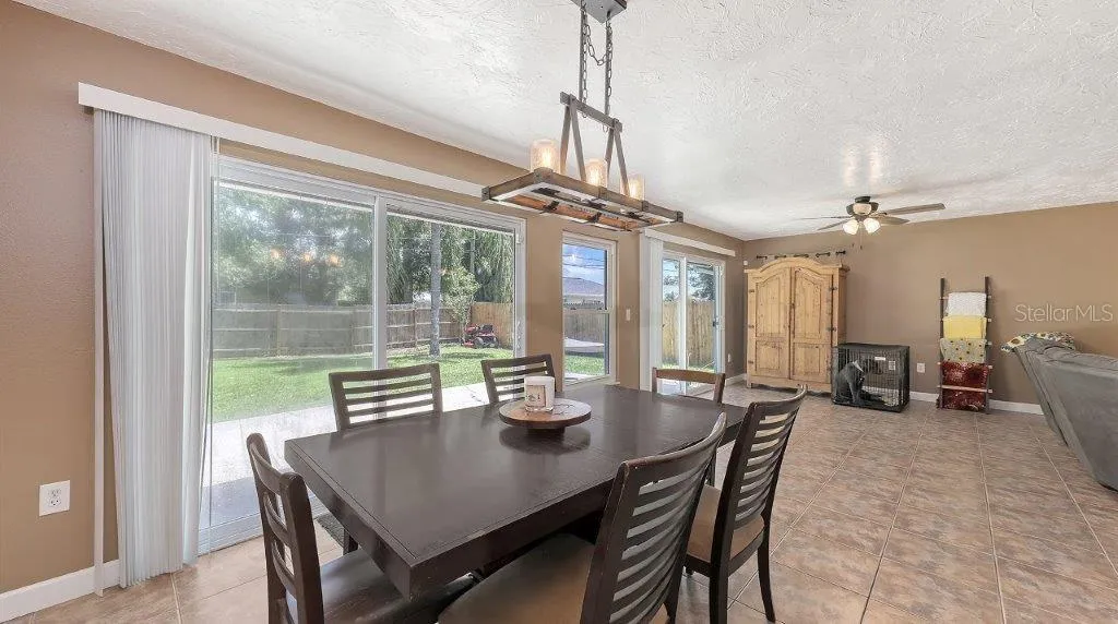 Delightful home is ready for new owners. This 3BR/2BA split plan offers tile and laminate throughout. NEW roof, new water heater, updated baths, and 4-year young stainless appliances and new kitchen cabinets and counters. French doors from primary bedroom lead to back porch. The oversized 1 car garage offers a new garage door and a semi-finished area that could be converted to a nursery or reading room with door off the primary bedroom. The back yard is fabulous with oversized concrete patio, fire pit and wood fence. Close to I-75, shopping, banking, restaurants, Home Depot and more.