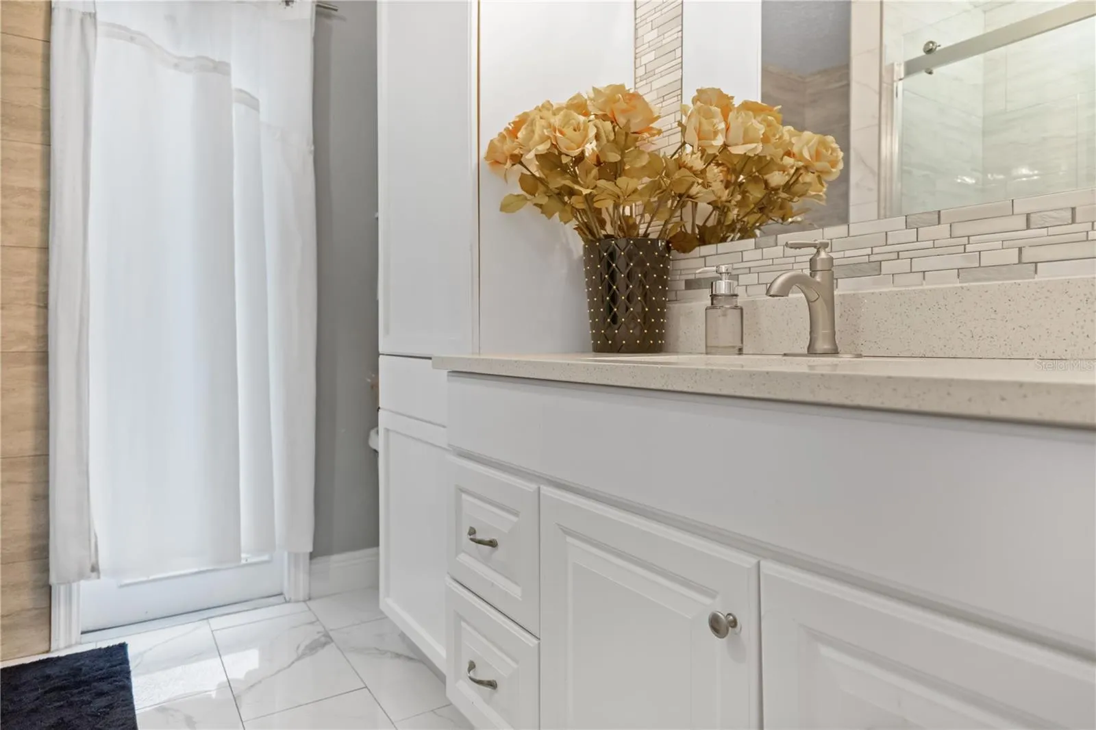 Welcome to this Beautiful updated, Private Studio fully furnished! Full Bath in the garage, Conberted Garage Driveway, 3 bedroom, 2 bathroom. The garage has been professionally converted into a private studio with its own separate entrance and full bath, ideal for guests. Single family home located just off Osceola Parkway. Kitchen and floors have been remolded. Home displays and open floor plan. The open kitchen features a breakfast/eating area and it over looks the family room. The spacious master is located right off the family room and has a large walk-in closet. Master bathroom features a jetted garden tub with separate shower. This home has a very private back yard with screen enclosed inground heated pool.