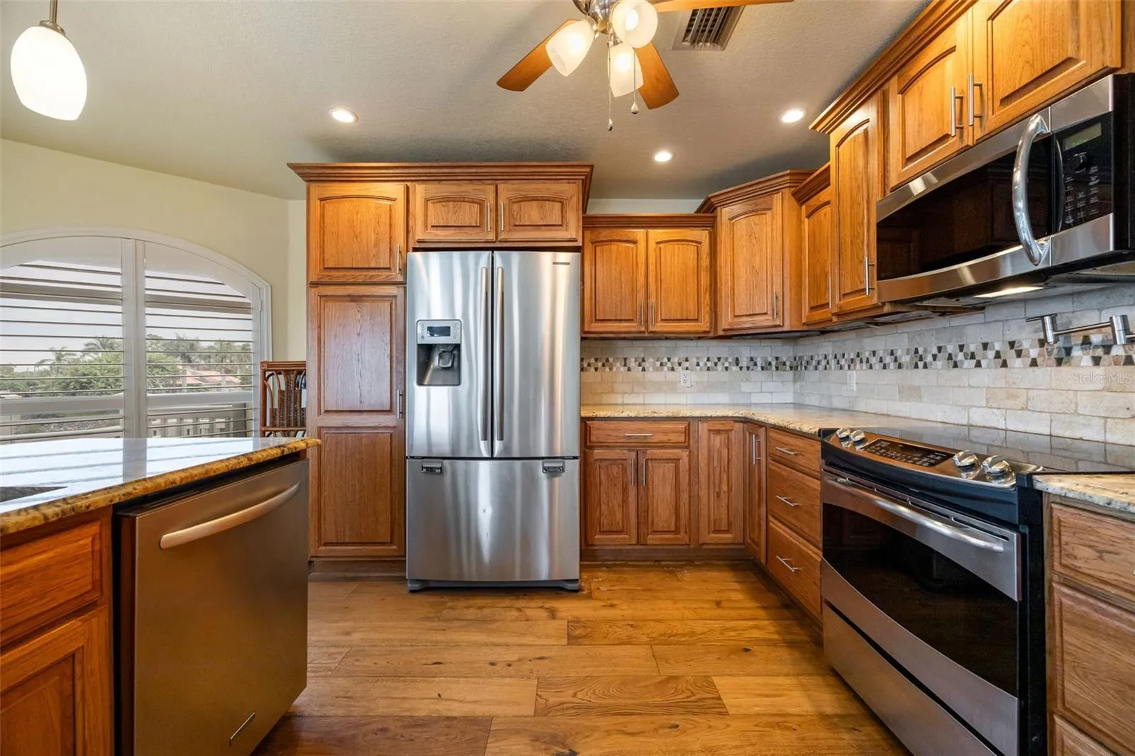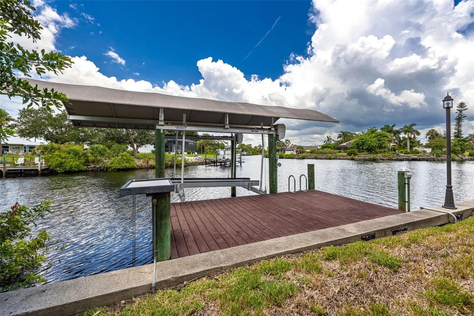 Luxury Waterfront Key West-Style Retreat on nearly 1/2 an acre lot with Gulf Access boating. Experience the ultimate Florida lifestyle in this Solar Powered, remarkable home tucked away on the serene Venus Waterway, just a few minute boat ride to the Myakka River, to Charlotte Harbor and the Gulf of Mexico. Situated on two waterfront lots with 160 feet of concrete seawall, this large masterpiece offers sweeping views of intersecting canals, lush tropical landscaping, and privacy, just minutes from shopping, dining, golf, and beaches. On the first floor you will discover a fully self contained in-law or guest suite with a private entrance, a second full kitchen with granite counters, new cabinets, a bedroom, plus 1.5 baths, a laundry room with storage , and a massive family room. This space is ideal for multi generational living or income potential! Take the gorgeous stairway with bright skylight up to the second floor with vaulted ceilings, new wood flooring, impressive crown molding and plantation shutters framing the expansive open layout. The elegant living and dining rooms are complemented by a gourmet kitchen with sparkling water views. It features granite countertops, wood cabinetry, stainless steel appliances, and an island breakfast bar. Perfect for entertaining while watching dolphins swim by. The upper level also hosts three spacious bedrooms including the primary with a huge ensuite bathroom and walk in closets. Beautiful French doors invite you onto 2 separate second level decks to enjoy the views of wildlife and water. Outside is your personal paradise with an open lanai around the tropical pool and outdoor shower, two private docks with composite decking, one with a 10,000 lb covered boat lift and the other for fishing. A lush landscaped oasis with an oversized, fenced yard giving lots of room to run and play. Additional upgrades include 2022 Roof, 2020 HVAC, New tile flooring, new wood flooring, some hurricane impact windows, shutters for the rest, Ready to use, fully installed Starlink internet. 2 separate garages with storage and outdoor access, and a bonus Tesla charger. Solar powered home (completely paid off) to save you money on energy! This home is special, very peaceful and offers Boating, fishing, sun bathing, relaxing and could be money making! Don’t miss this unique opportunity.