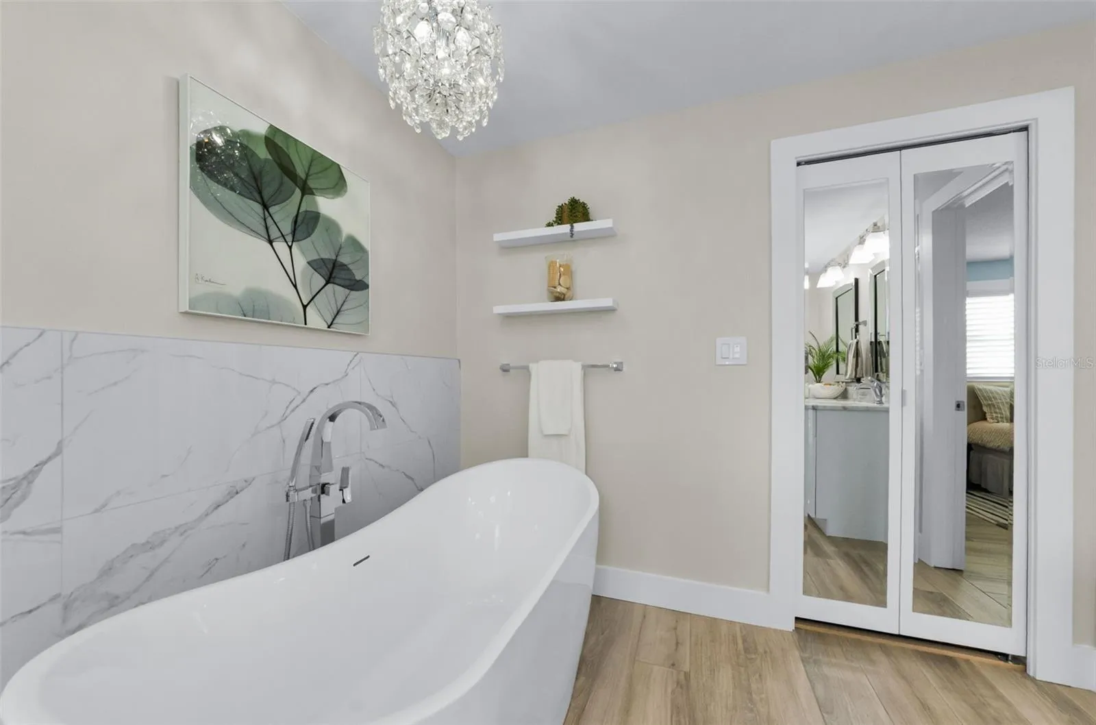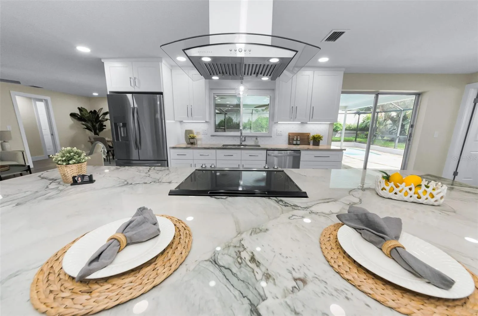 The expansive master suite provides a peaceful retreat with its spacious design and beautifully renovated en-suite bath which features a luxury soaking tub, separate shower, marble countertop and walk-in closet. You prefer double sinks in the primary? No problem. Look under the counter, it was pre-plumbed for to add another sink. Access to pool area off the primary suite also. The additional bedrooms (on the opposite side of the house) are equally spacious, offering plenty of room for family, guests, or a home office.