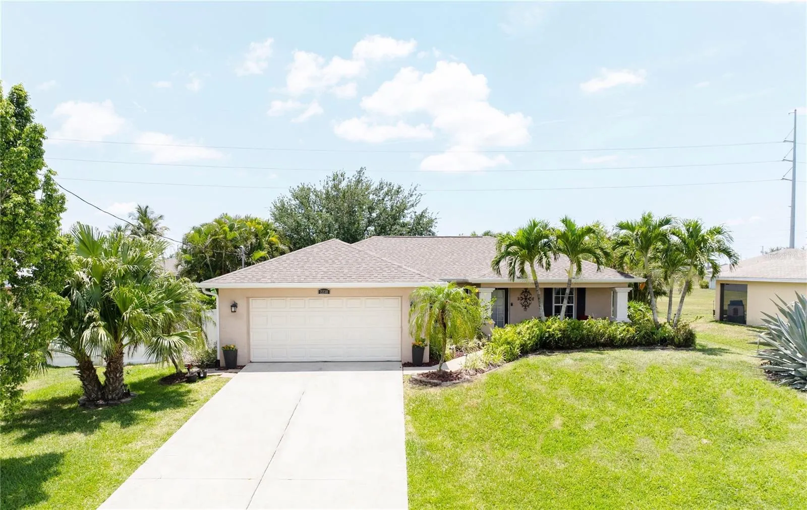 A Tropical Retreat- NO FLOOD INSURANCE Required! Featuring A RECENTLY RENOVATED- EXTENDED LANAI- Offers Endless Opportunities For Relaxation And Entertainment. From The Moment You Step Inside, Your Eyes Are Drawn To The TRIPLE SLIDERING GLASS DOORS Leading To The Spacious Covered Lanai Highlighted By A Wood Accented Ceiling, And An Expansive SALTWATER POOL, Beautifully Framed By Lush, Mature Landscaping That Provides Complete Privacy And A True Sense Of Retreat. The Kitchen Is Designed For Gathering, Showcasing A Stone-Accented Bar, Granite Countertops, A Stylish Backsplash, And A LARGE PANTRY, Creating The Perfect Space For Family And Hosting. The Primary Suite Provides A Private, Serene Escape With A Shiplap Accent Wall, A New Bath Fitter Shower With Glass Enclosure, And An Expansive Walk-In Closet With Custom Wood Shelving. Enjoy Peace Of Mind With A Newer Roof And Gutters (Less Than Two Years Old) And Impact Windows. The Home Also Features Stunning New Landscape Lighting, A Second Pantry In The Laundry Room, A Split A/C System In The Garage, And Pull-Down Attic Storage. Located In One Of Cape Coral’s Most Desirable Neighborhoods, Close To Shopping, Dining, Entertainment, And More. Whether You’re Seeking A Private Family Oasis Or A Prime Investment Opportunity, This Home Perfectly Captures The True Florida Lifestyle.