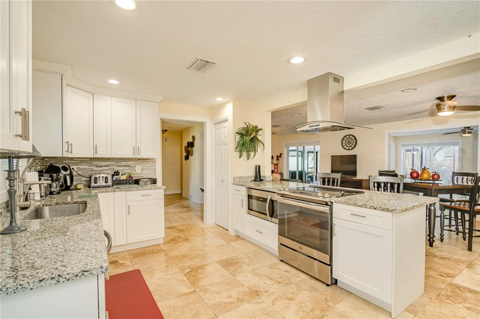 Welcome to this stunning, fully remodeled 3-bedroom, 2-bath home located in the highly desirable Arvis Circle neighborhood of Clearwater. No detail has been overlooked—this home has been completely remediated and upgraded from top to bottom. Enjoy a brand-new kitchen, stylish new bathrooms, new doors, and beautiful new flooring throughout.The unique craftsmanship and loving care of this home are unbelievable!! The combined living and dining room feature travertine floors and sliding doors to the lanai and Pool area.