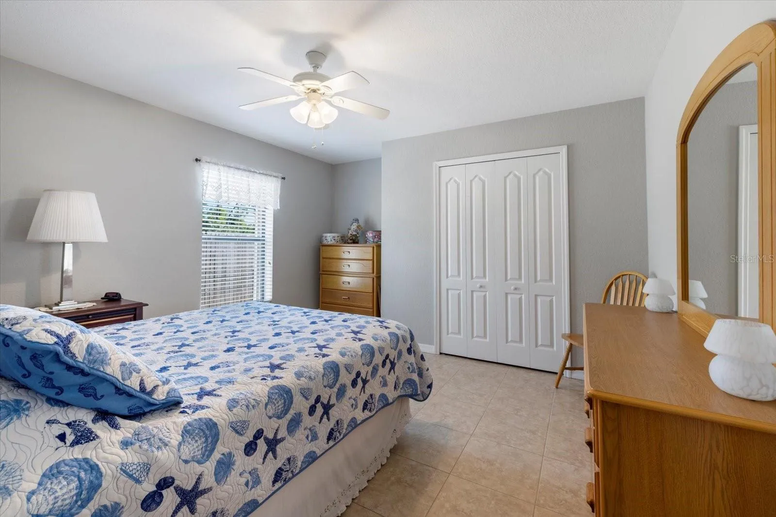 Primary bathroom includes separate bidet. Front lanai is enclosed with screens and sliding screens are installed on garage door opening. Rear lanai is enclosed with windows and screens and is accessible via glass sliders from living room, dining room, and primary bedroom. Sidewalk leading from driveway to backyard with storage shed that has workbench.