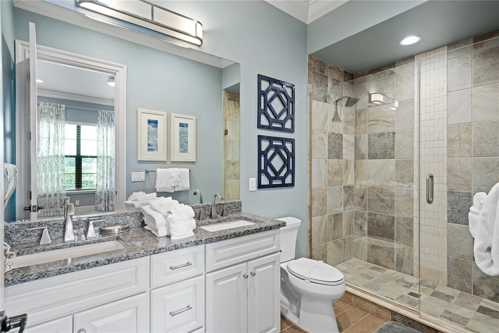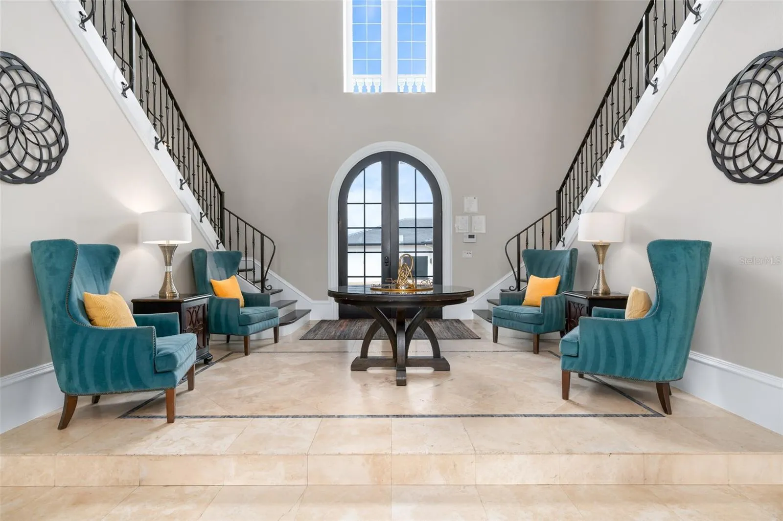 A stunning double staircase welcomes you to this incredible one-of-a-kind home. With a large open plan living room, summer kitchen, and covered lanai, there are plenty of spaces to relax and socialize. Experience luxury with a large private pool with spillover spa, sun shelf, and oversized patio. The home also features two additional gathering areas upstairs, a home theater and game room, and two themed bedrooms. The large balcony overlooking the golf course features 6 TVs to enjoy sports games, a pool table, ceiling fans, and plenty of seating.