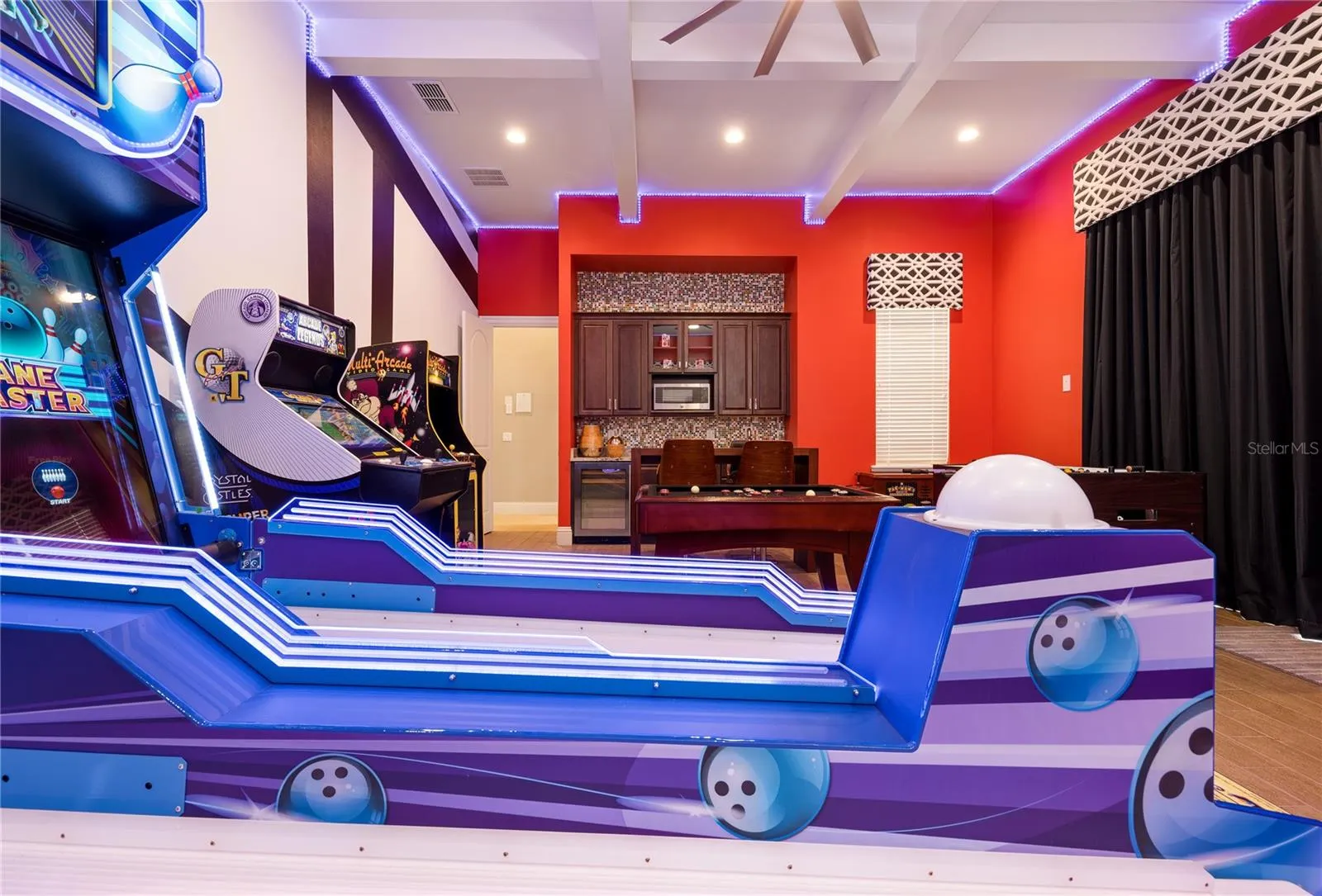 Designed for large multi-generation family reunions, prepare home-cooked meals in the fully equipped gourmet kitchen, or a barbecue in the summer kitchen. Swim in the pool, watch a movie in the home theater, nap in a themed bedroom, or play hours of arcade machines and games.