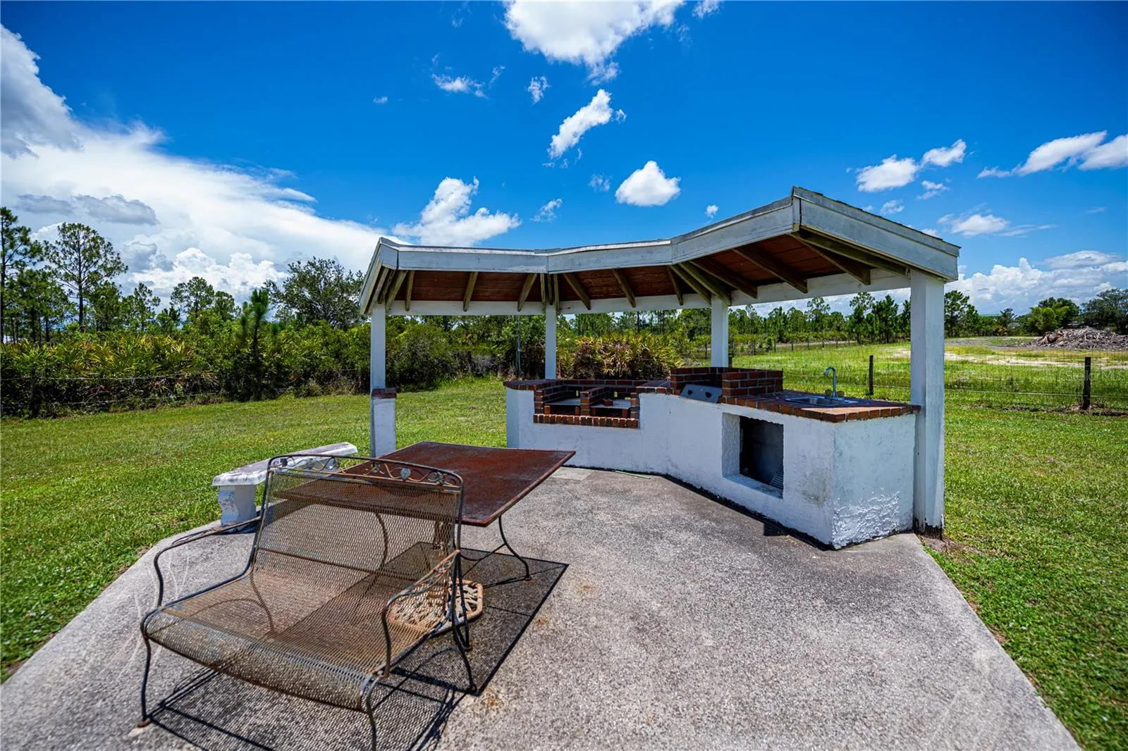 Adjacent to the kitchen, a 30X20 foot great room with wood-burning fireplace, features a large panoramic window that provides breathtaking views of the property; a large gazebo, outdoor kitchen with BBQ pit, and local wildlife or equestrians on the trails – an entertainer’s dream. The great room has a closeable access to 2 spacious bedrooms, separated by a full bath, each with private views of the pond, fountain, and the great outdoors.