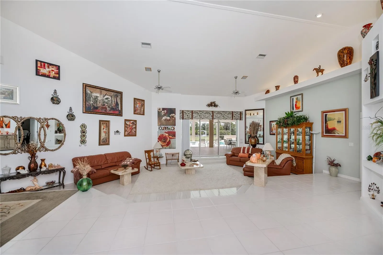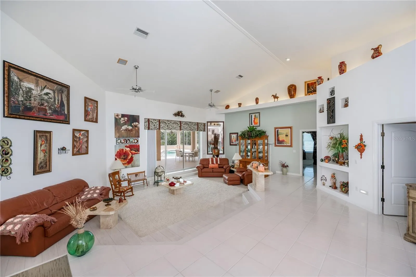 The tile roof, concrete curbing around landscaped features, and grand entryway will leave a lasting impression. Step through the double-door entry into a magnificent 5,548 sqft residence into a formal foyer featuring fine architectural finishes, elegant crown molding, decorator alcoves, and a soaring 20-foot ceiling. The abundant natural lighting and low-level corridor lighting set the stage for entertaining or relaxing in the beautiful living room with direct access to the beautiful pool/lanai area through expansive sliding glass doors. The screened-in pool deck, equipped with a heated saltwater pool and hot tub, private bar with a sink and built-in refrigerator, invites year-round entertainment.