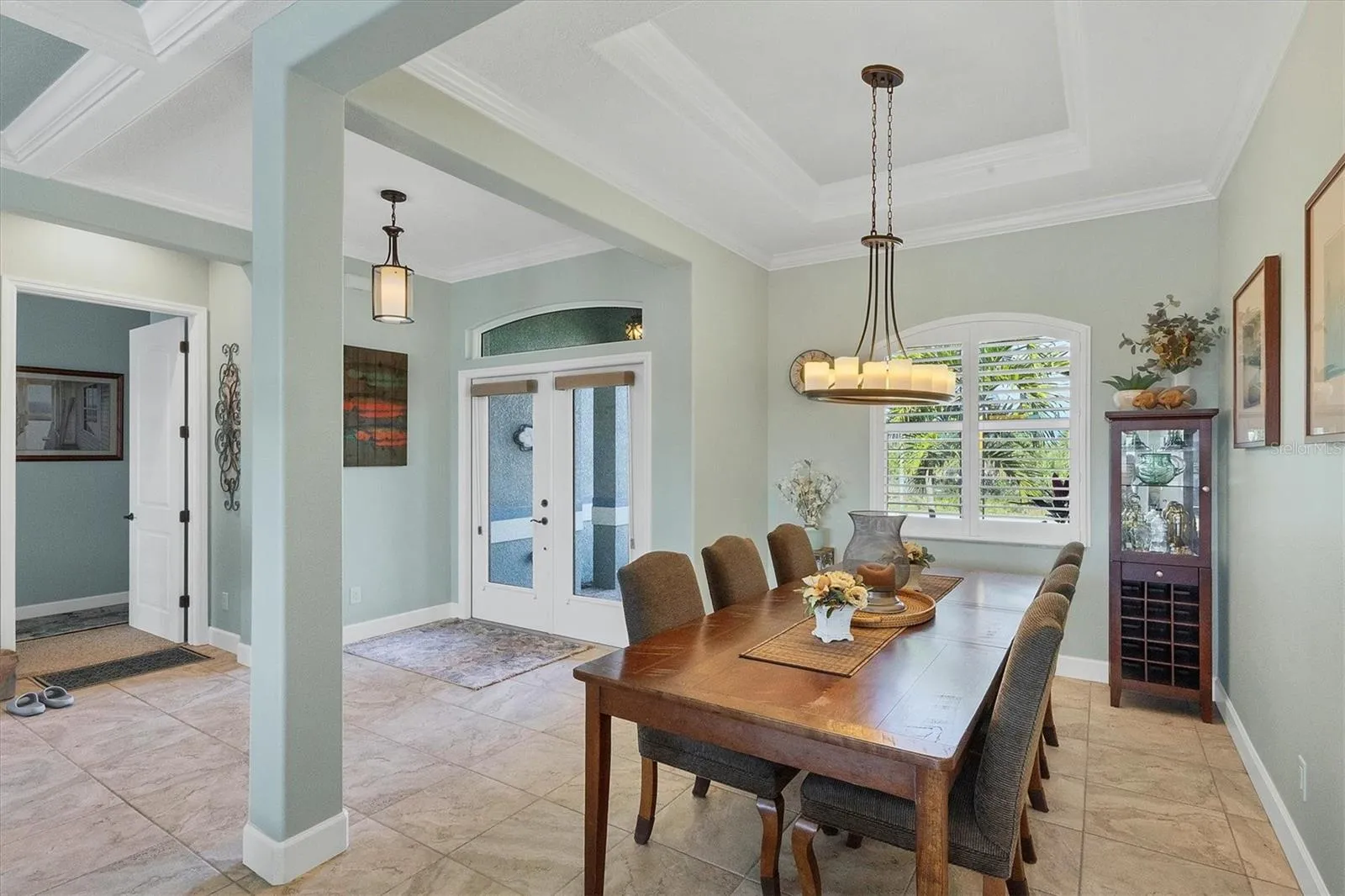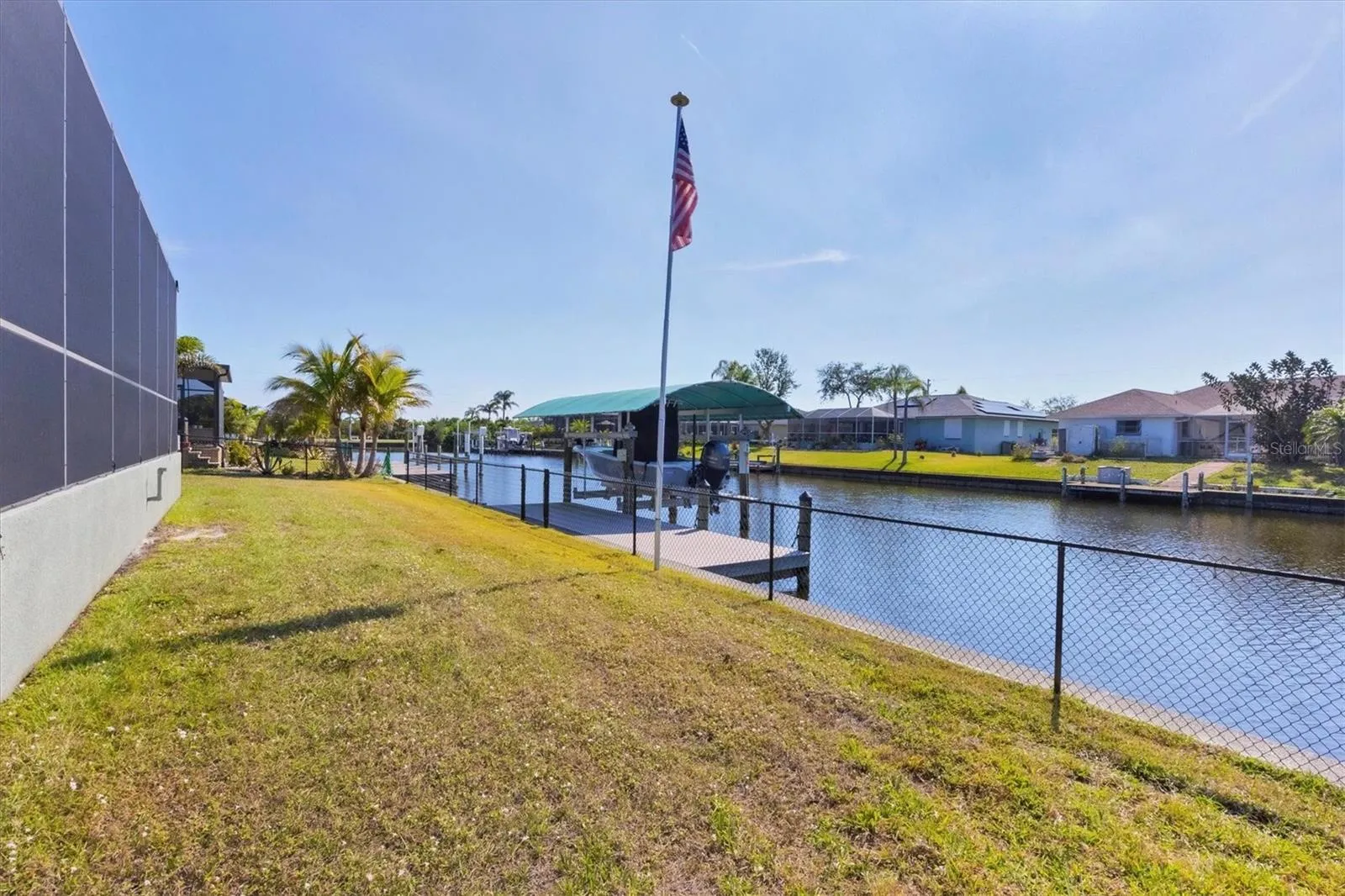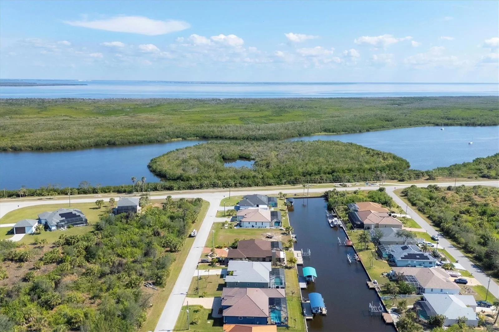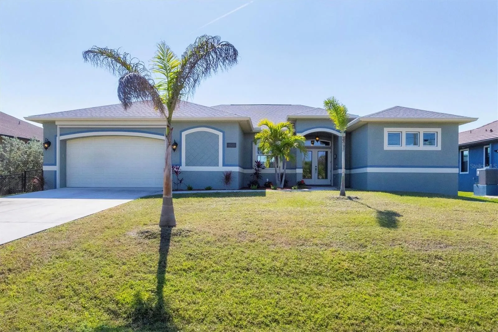 Location, location! South Gulf Cove welcomes you to the Florida lifestyle, in one of the most desirable areas of Port Charlotte. As you enter your view of the lanai and waterway is wide open through zero corner sliders that line the main living area. These literally bring the outdoors in and double your living space. The living room/great room is spacious with a beautiful coffered tray ceiling, and adjoining dining room will compliment your special gatherings. These flow to the open kitchen featuring an oversized granite breakfast bar with plenty of room for preparing and serving. Crowned wood cabinets, stainless appliances, walk in pantry and an cooktop make your life easy. Serve your feast in the large dinette area, which is also open to the beautiful views outdoors. The master suite is lovely with two HUGE closets, and the ensuite features a walk through shower with two rainheads. The guest bedrooms in this split plan can be closed off for privacy. The finishes in this home are lovely, with crowned molding throughout, tray ceilings, elegant light and fan fixtures. Practical features include impact glass, panels for the lanai sliders, concrete seawall, bonus area in garage. The garage also featured an remote control roll down bug screen. The salt water heated pool surrounded by multicolored LED lights and lanai complete your outdoor living, with an additional half bath. Electric Hurricane roll down shutter protect the front and back of the house. The house also features a wired in surge protector, a dog walk, 10k boat lift, new roof (2023), New salt water generator (2025), Interior and exterior paint. Imagine the wonderful times you can spend entertaining family and friends, or just relax enjoying life.