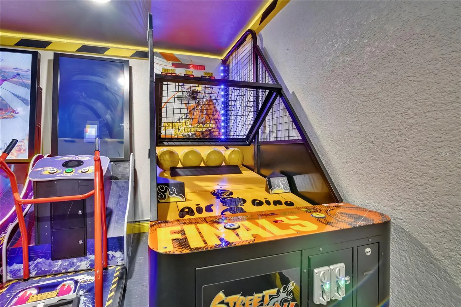 Welcome to your stunning luxury vacation home in the highly desirable Reunion Resort in Kissimmee, FL, boasting an ACTIVE and transferable Reunion Resort MEMBERSHIP, which grants access to exclusive amenities such as a 5-acre water park, three signature golf courses, tennis courts, and world-class dining. Designed for unforgettable vacations, this exceptional residence features a one-of-a-kind AVENGERS THEMED ROOM with a built-in slide, making it a dream space for young superheroes. The fun continues in the PRIVATE ARCADE, complete with racing simulators, air hockey, basketball, and classic arcade games, ensuring endless entertainment for all ages. Nestled along the golf course, this home offers breathtaking views and direct access to championship fairways, perfect for golf enthusiasts. Beyond its luxury appeal, this property presents a fantastic short-term rental opportunity, as themed vacation homes in Reunion Resort have consistently demonstrated strong income potential, commanding high nightly rates and attracting guests seeking a unique and immersive experience. With a private courtyard pool, outdoor entertainment area, movie theater, and proximity to Walt Disney World, this home is the ultimate destination for both relaxation and adventure. Whether you’re looking for a dream vacation retreat or a lucrative investment property, this residence delivers unmatched luxury, entertainment, and income potential.