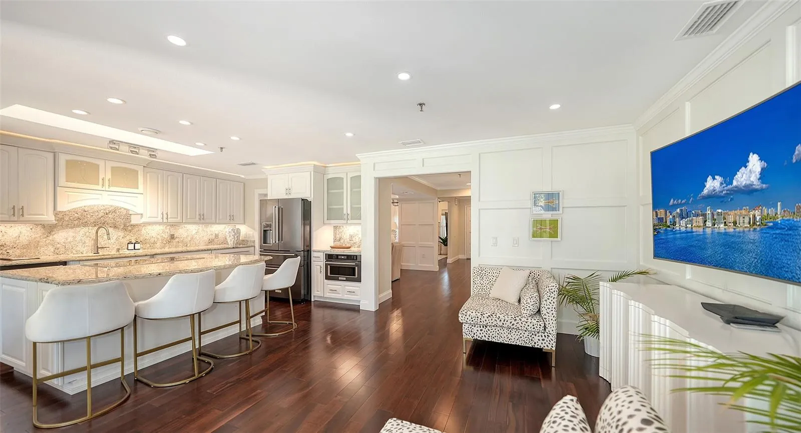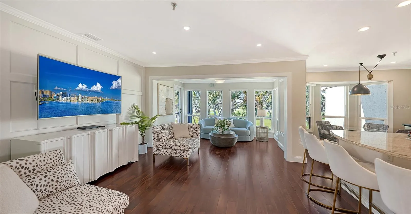 Discover this exquisitely renovated condo with high-impact windows and sliders that lives like a single-family home! This fully furnished 3-bedroom, 2-bath home in the friendly “Harbour Oaks” section of the prestigious Bay Isles community on Longboat Key comes with a private 2 car garage. With just under 2,000 square feet of living space, this residence perfectly combines luxury, comfort, and convenience. This home has been meticulously designed with high-end finishes by an interior designer, offering a sophisticated aesthetic throughout, featuring custom wood paneling, recessed lighting, engineered wood floors, Stark wool carpet in the primary bedroom, and custom window treatments. The 2020 upgraded kitchen features premium stainless-steel appliances and an induction range. Additional thoughtful design elements include cove lighting in the dining room and a wood-burning fireplace with custom Carrera Marble surround. The lanai with a motorized no-see-um bug screen overlooks the Longboat Key Club Harbourside Golf Course, providing breathtaking and comfortable sunset views framed by beautiful trees and lush greenery. For safety, durability and financial peace of mind, this gorgeous second floor residence features recently upgraded high-impact sliders and windows, plus community-wide new roofing and siding. Located in the gated Bay Isles community with 24/7 security, this home is within walking or biking distance to the private and newly renovated Bay Isles Beach Club, the Longboat Key Club Moorings Marina and Portofino restaurant, the Longboat Key Club Pickleball and Tennis Courts, Publix, CVS, as well as to the new Longboat Key St. Regis, which offers exceptional dining options and the vibrant St. Regis Monkey Bar, now open to the public. This remarkable turn-key property with a beautiful community pool and spa offers a rare opportunity to embrace the unparalleled Longboat Key lifestyle. Don’t miss the chance to make it your own.
