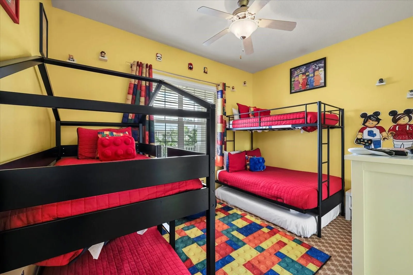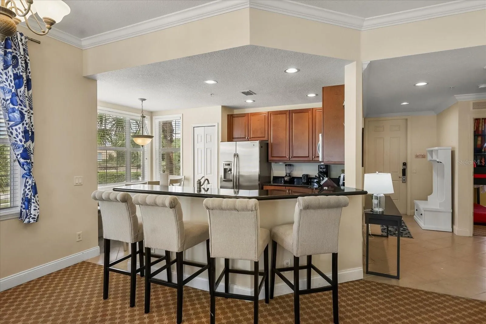 Welcome to this beautifully UPDATED CORNER UNIT condo in the serene and highly sought-after neighborhood of The Terraces at Reunion Resort. This residence offers the perfect blend of style, comfort, and functionality. Step inside to discover a spacious, light-filled interior with a contemporary design. The gourmet kitchen boasts stainless steel appliances, granite countertops, and hardwood cabinets. and a breakfast nook for added convenience. The expansive living area provides a welcoming space with an abundance of natural light, plush seating, a large flat-screen TV, and direct access to the impressive wrap-around balcony only available with CORNER UNITS, where you may enjoy your mornings with coffee or unwind in the evening sun. The primary suite offers a king-sized bedroom set, a spacious walk-in closet and a second closet that can be locked for owner use. The ensuite bathroom features dual vanities and a walk-in shower. The two additional guest bedrooms include a comfortable queen bedroom and a Lego themed bunk room. As an added bonus the unit includes a detached 1 car garage, a highly coveted feature in Reunion. The HVAC is BRAND new September 2025. Residents of The Terraces enjoy access to the largest lap pool on the property and it is just a short walk away ideal for swimming, sunbathing, or relaxing by the water. Whether you’re looking for a primary residence, vacation home, or investment property, this move-in-ready condo checks all the boxes! Reunion Resort is a one of a kind 2300 acre Resort and Golf community that has many amenities including a water park complete with water slides, lazy river, zero entry pools & food and beverage service, 3 award-winning golf courses designed by the legends of golf (Palmer, Watson & Nicklaus), 11 pools throughout the community, putt putt golf, world class tennis courts, pickleball courts, playgrounds, golf cart & bike rentals and several on-site restaurants to include fine dining. Reunion Resort is located just 6 miles to Disney and the parks, and a short drive to the Orlando International Airport. **REUNION RESORT MEMBERSHIP AVAILABLE*** and is transferrable to the next owner.