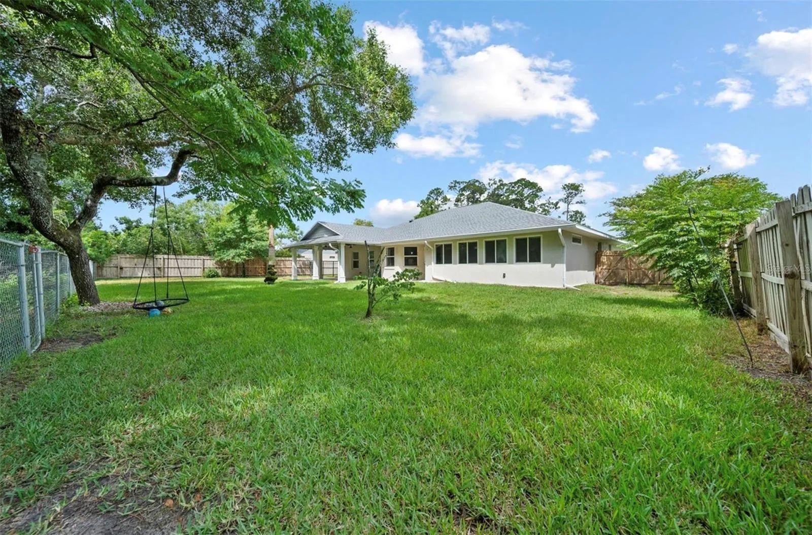 One or more photo(s) has been virtually staged. Short Sale. Short Sale – Welcome to your dream home! Featuring a newer roof, A/C, and water heater (2023), this beautifully updated property sits on an oversized, fully fenced lot with impressive curb appeal and a fantastic backyard entertaining area. Step inside and you’ll be greeted by an open, light-filled floor plan highlighted by vaulted ceilings. The stunning kitchen boasts a HUGE island, stylish grey cabinetry, and an eat-in nook with built-in bench seating and storage, framed by bay windows overlooking the spacious backyard. Updated lighting fixtures throughout add a modern and warm touch to every room. The primary suite offers a luxurious retreat with a spa-inspired bathroom, complete with a gorgeous free-standing tub—perfect for relaxing after a long day. Enjoy Florida living at its best on the covered paver patio, ideal for hosting gatherings or enjoying your morning coffee. Located in a highly sought-after neighborhood, you’ll appreciate the proximity to top-rated schools, dining, and parks. This move-in ready home blends modern updates with timeless comfort—schedule your private showing today!