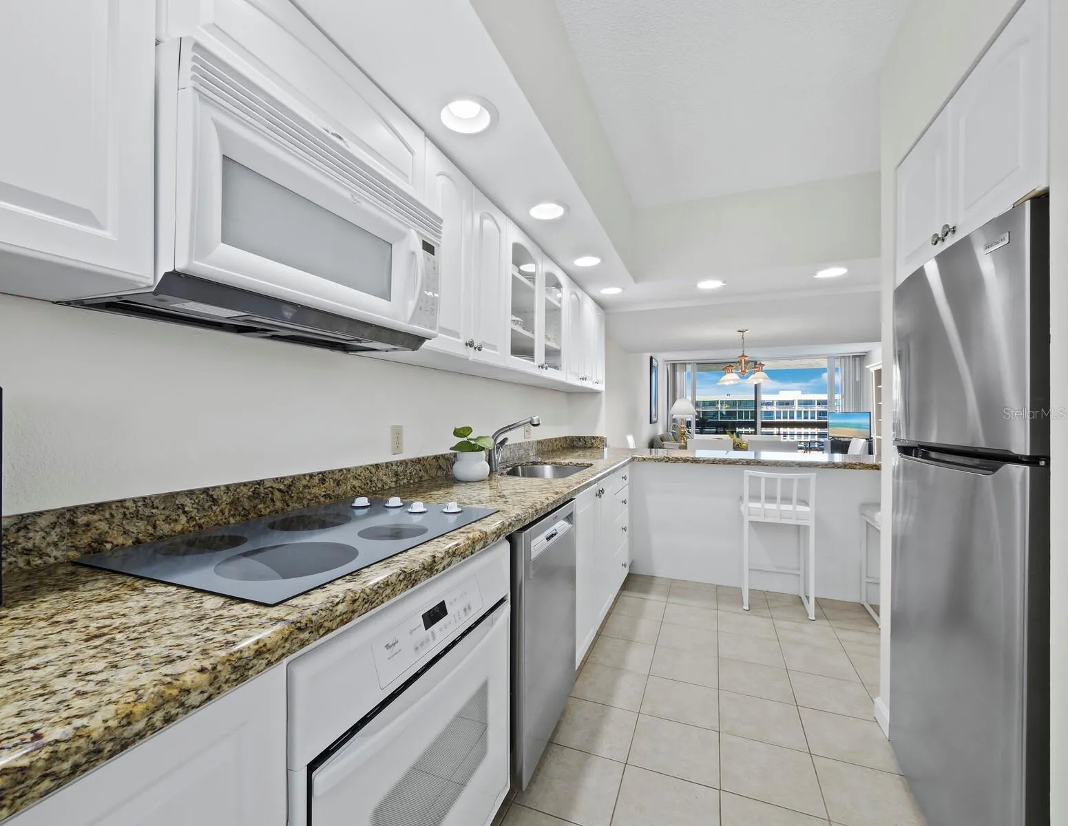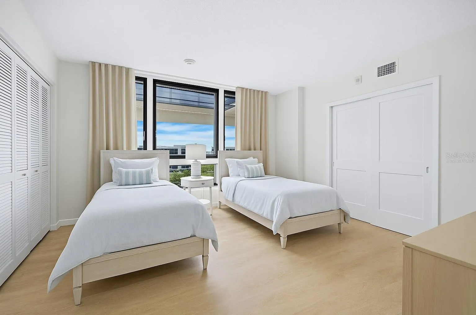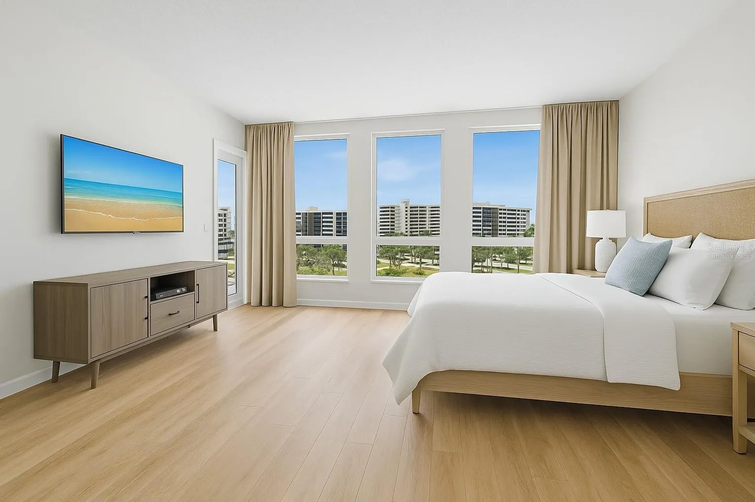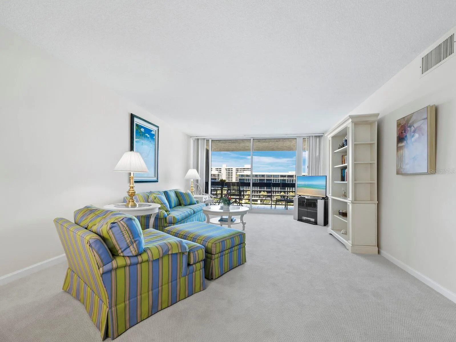 One or more photo(s) has been virtually staged. Enjoy comfortable, coastal living in this well-appointed 2BR/2BA residence on the sought-after south end of Longboat Key. With over 1,500 sq. ft., this home features a neutral color palette and thoughtful design that enhances the natural beauty just outside. The kitchen offers classic white cabinetry with glass accents, granite countertops, stainless-steel appliances, and recessed lighting. A breakfast bar opens to the dining area, which flows into the spacious living room. Large sliding glass doors lead to the terrace, offering views of Sarasota Bay, the peaceful community lake and fountain, and the Gulf of Mexico – perfect for watching sunsets. The primary suite is light and airy, with terrace access and a full wall of glass. The en suite bath includes dual vanities, a walk-in shower, and a separate water closet. The guest suite also features generous space, plenty of storage, and its own full bath. Beachplace is a 31-acre gated community known for its mid-century modern design by Tim Seibert and its outstanding amenities: private beach access, a Jr. Olympic-sized pool, spa, kiddie pool, clubhouse with social activities, two fitness centers, sauna, tennis and pickleball courts, EV charging, and grilling stations. Rentals are allowed 12 times per year with a 30-day minimum. Residents also enjoy proximity to the prestigious Longboat Key Club, offering an exceptional lifestyle with 45 holes of championship golf, a world-class tennis center, a full-service marina, spa and wellness center, fine dining, and a private beach club – making it easy to enjoy the best of resort-style living just moments from home.
