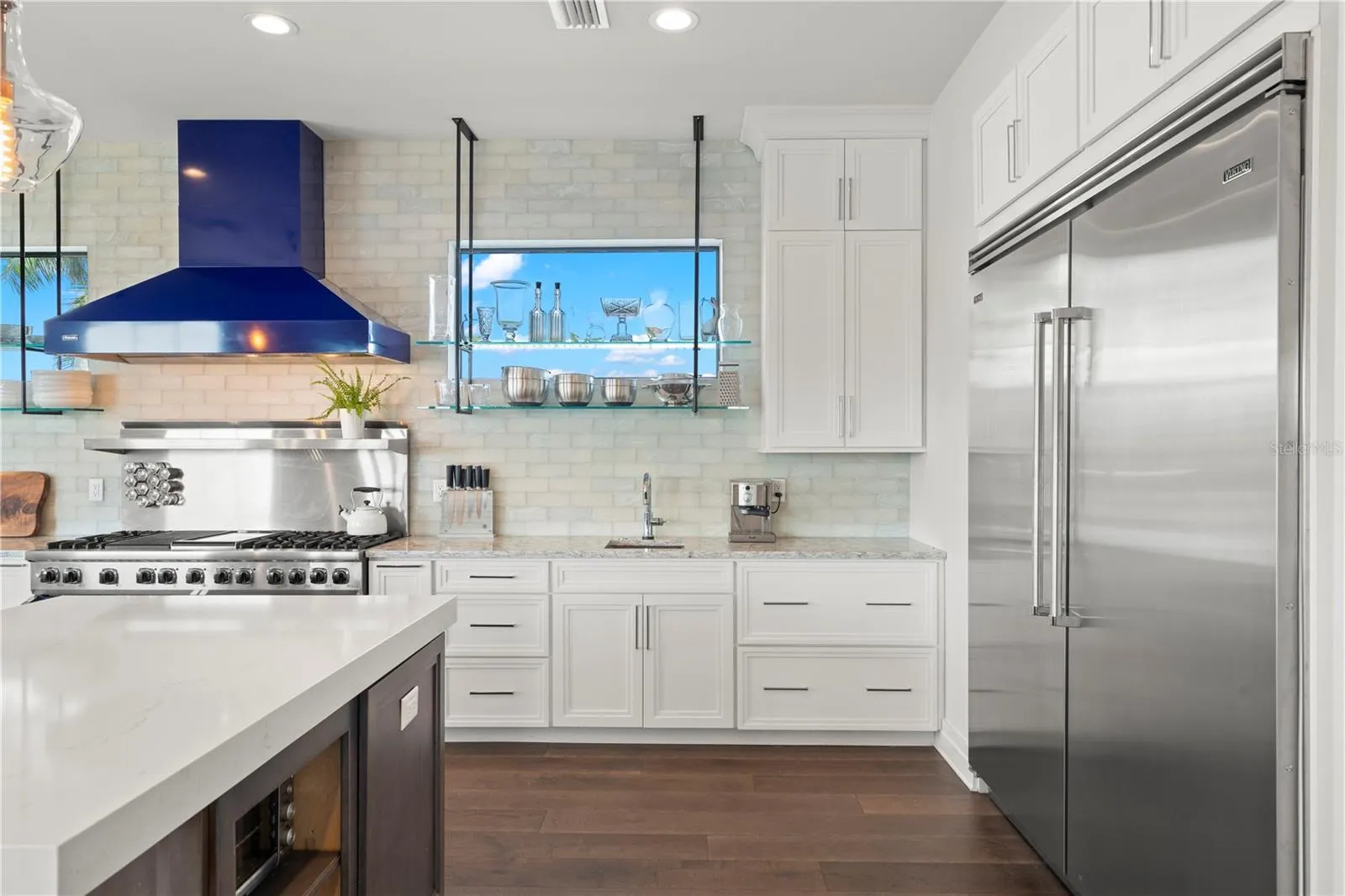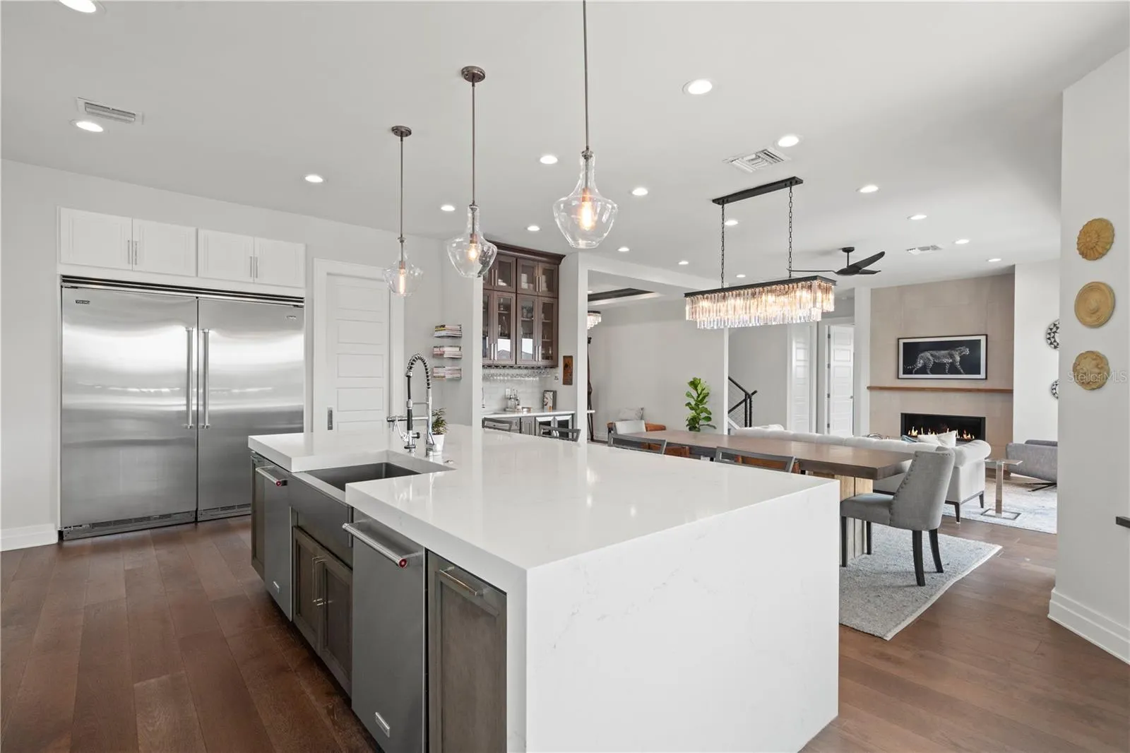 This meticulously crafted smart home offers nearly 3,800 square feet of light-filled, thoughtfully designed living space. Enjoy water views from every room, tall ceilings, engineered flooring, custom cabinetry, luxury appliances, open floor concept and bonus space galore. The heart of the home is a seamless blend of indoor and outdoor living. Custom accordion style folding glass doors open to reveal a stunning elevated pool deck with a sparkling pool and spa, a fully equipped outdoor kitchen, and a spacious covered terrace perfect for entertaining. This home is designed for both work and play, with approximately over 2,000 square feet of bonus space—ample room for up to SIX vehicles and all your boating and recreational gear. A water-facing garage door provides effortless access for kayaks, paddleboards, and fishing equipment. Built to uncompromising standards, this property is engineered to withstand hurricanes exceeding Category 5 strength. Elevated living spaces provide peace of mind against flooding. Situated in a serene neighborhood just minutes from Treasure Island Beach, downtown St. Petersburg and Tampa International Airport, this home offers the perfect blend of tranquility and convenience. Schedule your appt now! We look forward to showing her off.
