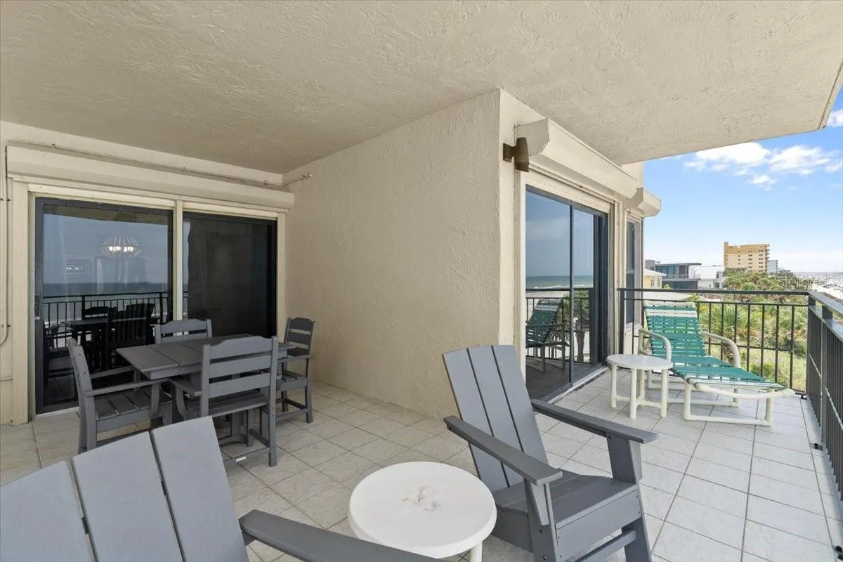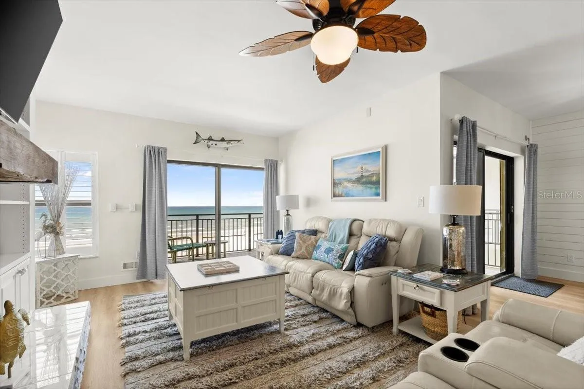 Welcome to Seafire 3A – Where Coastal Chic Meets Oceanfront Elegance! Experience the ultimate beachfront lifestyle in this beautifully remodeled condo located in the exclusive gated community of Seafire. Perched directly on the oceanfront, Unit 3A is an amazing condo where stylish coastal charm blends seamlessly with thoughtful upgrades and timeless design. Step inside and instantly feel a wave of relaxation. The open floor plan, light and bright décor, and unobstructed views of the sparkling Atlantic create the perfect beach retreat. The living space features updated light-wood luxury vinyl plank flooring and elegant shiplap accent walls for a breezy cottage feel. The kitchen is a true centerpiece, featuring stunning granite countertops with creamy tones and turquoise veining, white cabinetry, a glass block backsplash, and a spacious breakfast bar overlooking the dining area and balcony. A cozy yet sophisticated living room centers around a striking stacked stone fireplace—yes, Seafire is one of the rare oceanfront buildings with fireplaces! Flanked by built-in shelving and crowned with a mocha-toned timber mantel, it’s the perfect place to unwind. The primary suite offers tranquility with sunny windows and ample space. The ensuite bath is fully updated with a dual sink vanity, a walk-in shower with modern gray tile, and charming shiplap details. The guest room features a clever Murphy bed system with two beds and added storage, providing flexibility for guests or extra workspace. There is even a trundle bed tucked away in the condo to add even more room for guests. Step out onto your large L-shaped oceanfront balcony and soak in panoramic views of the beach and waves—ideal for morning coffee or sunset cocktails. Additional features include plantation shutters throughout, electric hurricane shutters, and upgraded lighting and ceiling fans. The building has also had recent upgrades such as seawall, landscaping, pavers, renovated pool and elevator system. With a 1-week minimum rental policy, this unit is not only a dream getaway but could also have some income-producing opportunities. Ideally located just east of Atlantic on quiet Hill Street, you’ll enjoy less through traffic and a more peaceful beach experience—while still being just minutes from Flagler Avenue’s restaurants, shops, and vibrant nightlife.