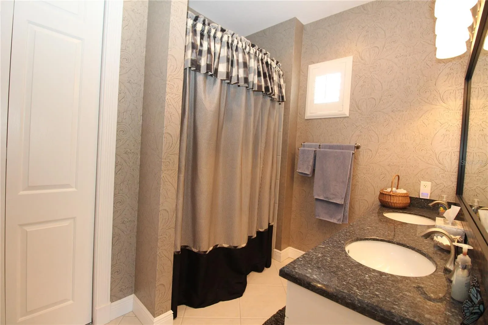 The laundry room is nice size just off the kitchen and features washer, dryer, utility sink and kitchen pantry closet. Half bath is just off the kitchen and great room. Other Features of this Gorgeous Waterfront Home: Tile flooring throughout except the bedrooms and formal dining room have luxury vinyl flooring, Plantation shutters throughout including on all the sliding glass doors, high impact windows, 35 Solar Panels with Electric bill under $50 a month, A/C 2019 & 2021, water heaters 2016 x 2 upstairs, metal roof screws replaced in 2023, Gazebo 2023, concrete curbing 2023, pool heater/pump 2023, Hot tub with cover 2022 and more….. ***One Year Home Protection Plan Included***