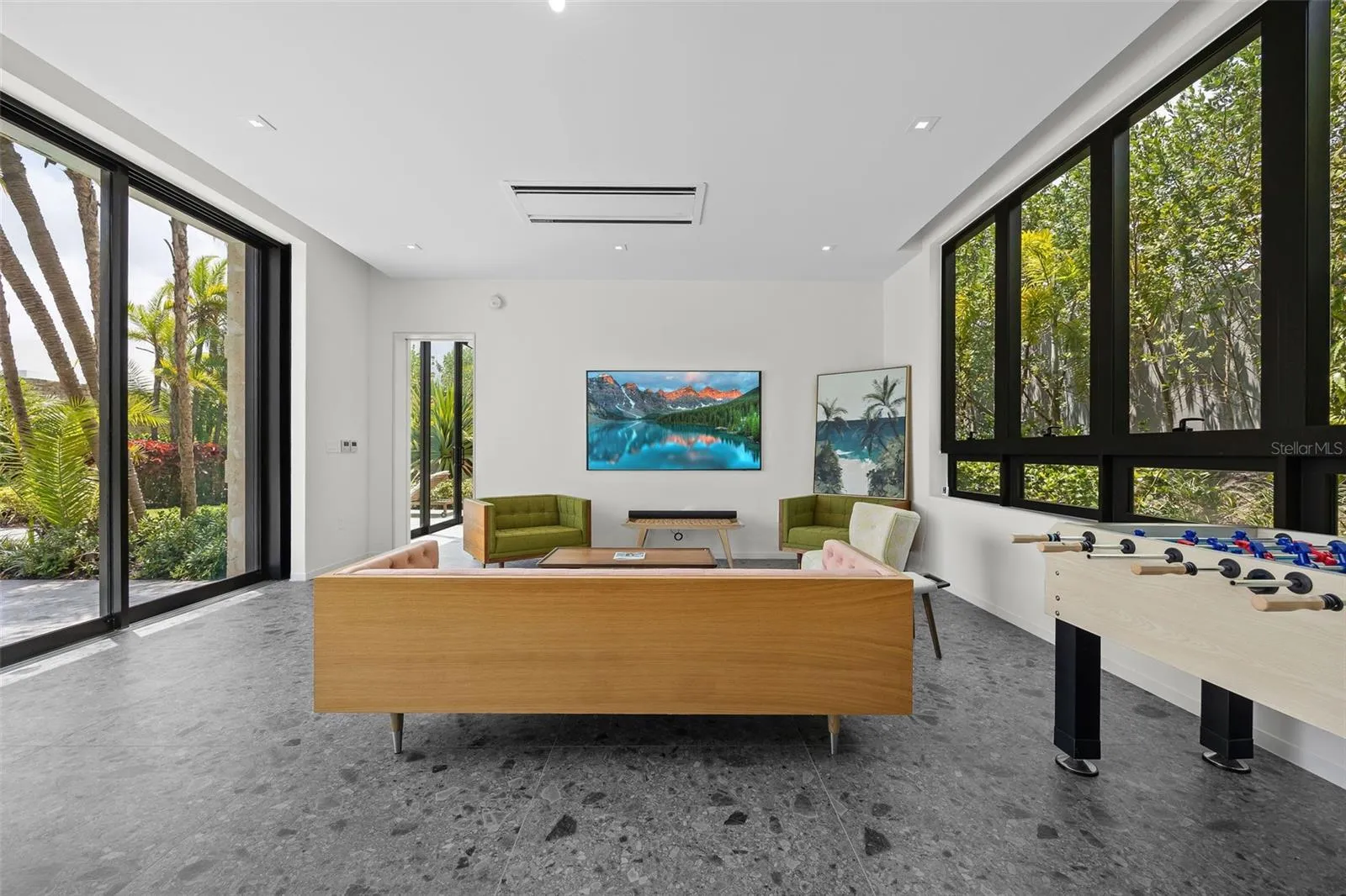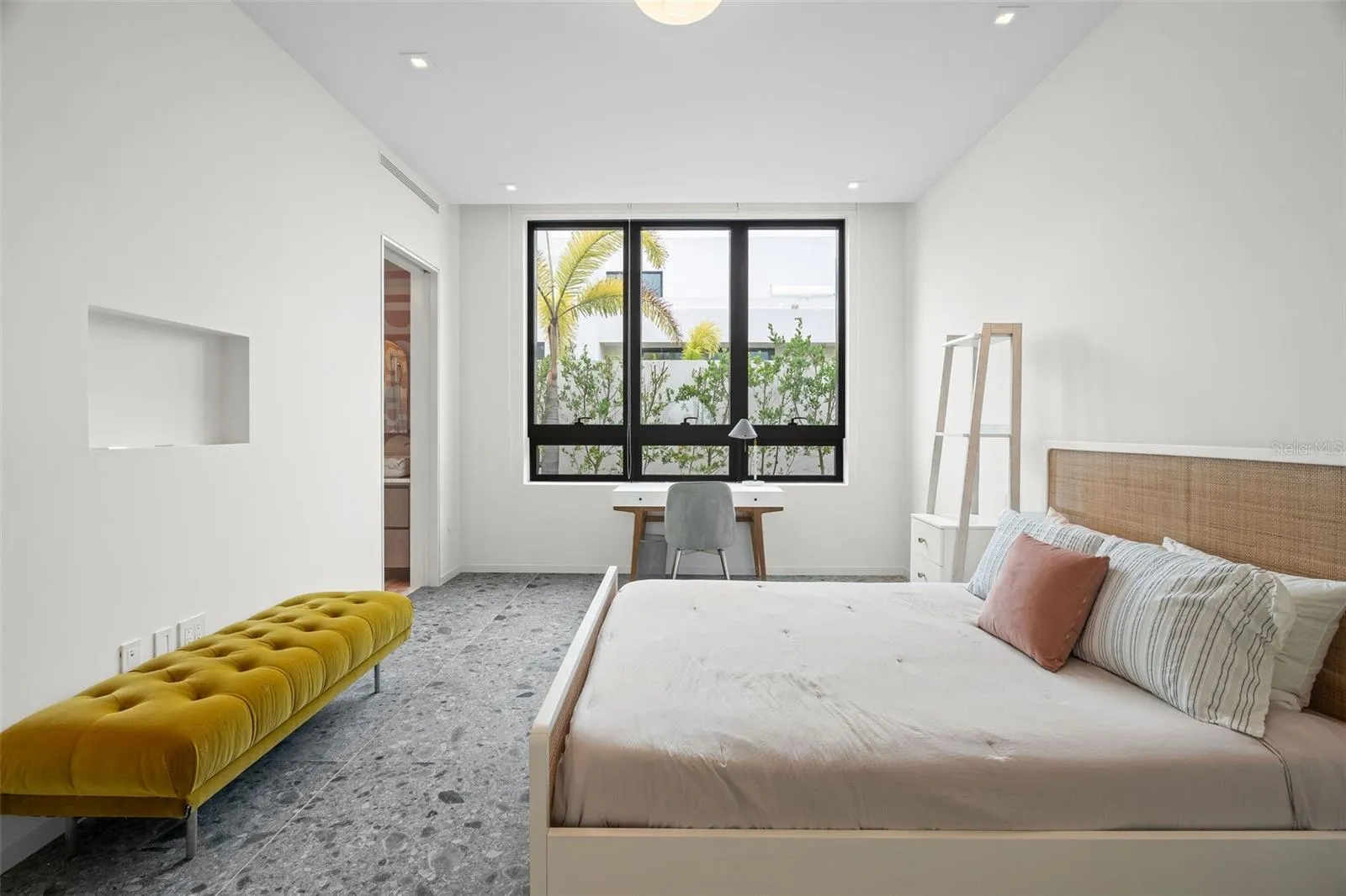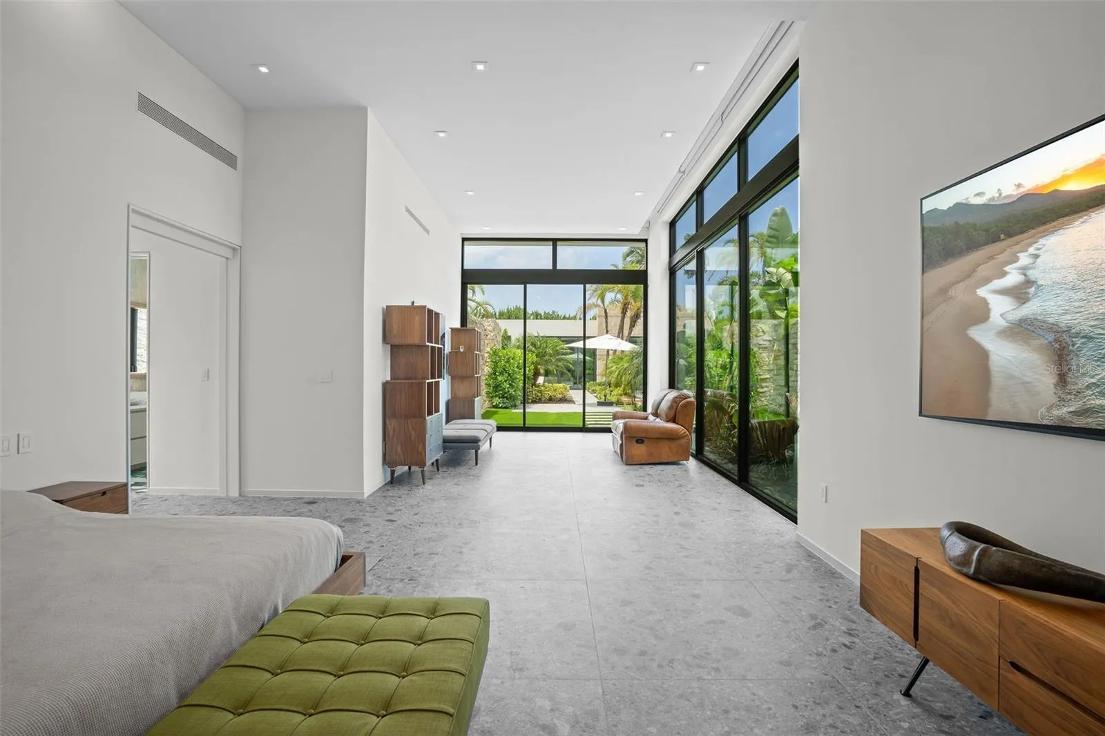 The focal point of the property is the magnificent elongated heated pool, with the detached casita situated to face its beauty. The casita itself is a serene retreat, featuring a private bedroom and full bath, as well as a cozy living room, full kitchen, complete gym, and a pool bathroom with an outdoor shower.