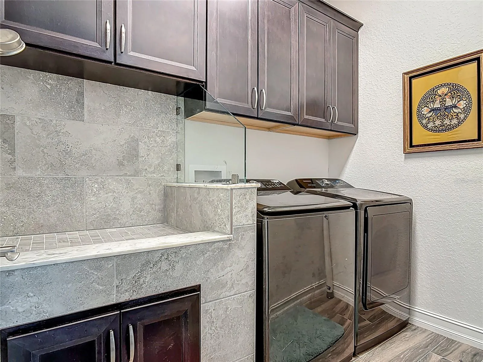 The primary suite is a true sanctuary, offering French doors to the pool, a private office, dual walk-in closets, and a spa-inspired bathroom retreat. Each additional bedroom enjoys its own en-suite bath, including a guest bedroom with direct pool access, ideal for guests or multi-generational living. A three-car garage with epoxy floors and attic storage adds function, while extras like a whole-home generator, hurricane-impact windows, 2024 hybrid water heater, two-zone HVAC, pet wash station, security system, playset, Spectrum fiber internet, and a cell extender ensure comfort, safety, and tech-ready living.