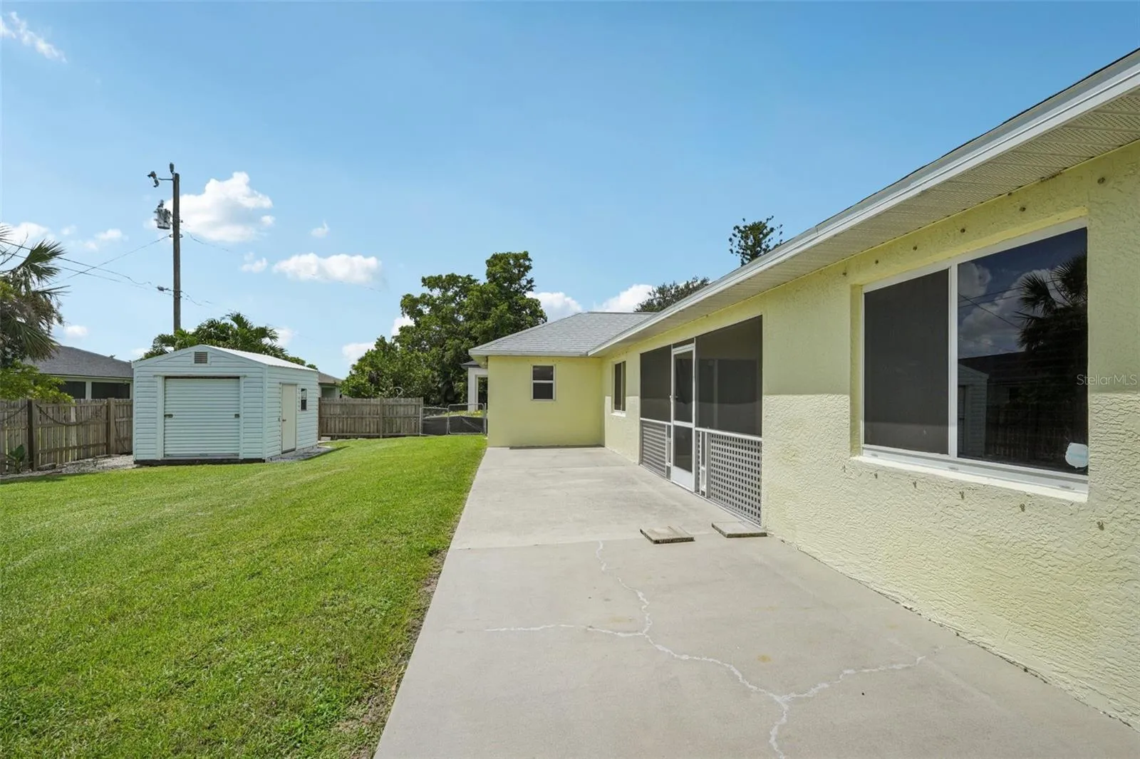 Water Softener System and Located outside of flood zone. Enjoy Florida’s outdoor lifestyle on your 16×10 screened lanai, complete with a new cement pad with footers and an outdoor storage shed for extra convenience. The large backyard, fully enclosed with a brand-new fence, offers plenty of space for a future pool and perfect for customizing your dream oasis.