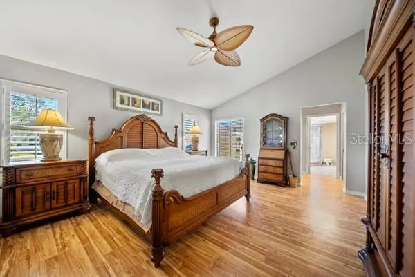A new roof (2025) and fresh interior paint ensure peace of mind and a move-in-ready experience. High ceilings fill the home with natural light, enhancing the spacious feel throughout. The expansive living room, anchored by a wood-burning fireplace, seamlessly connects to the outdoor living area via pocket sliding glass doors, opening to two large screened lanais—ideal for both relaxing and entertaining.
