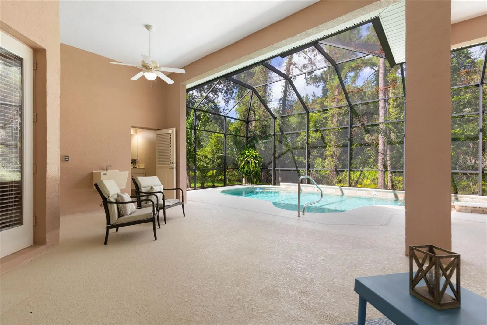Luxury Home with pool & spa in Halifax Plantation. Welcome to this meticulously maintained Ruebel-built custom home in the prestigious Halifax Plantation golf course community. Just minutes from The Loop scenic drive and the beach, this property is the epitome of luxury and functionality, offering a host of high-end upgrades. Upon entering the tiled foyer, you will find Key Features such as brand new neutral carpet, paint and tile, a Heated Saltwater Pool & Spa where you can relax in your private pool with waterfall jets, lights, and a vacuum system. The pool pump is less than 2 years old, and a convenient pool bath is just off the patio. Stylish Interior Upgrades include a keyless entry for ease of access, custom built-ins and glass shelving in the kitchen, dining room and family room has a built in for TV and more. There is an entertainment stand in the garage that fits perfectly in this space that can convey with the sale. The laundry room off the kitchen is large with a window and a wash tub. The home has French doors leading to outdoor spaces, tray ceilings with rope lighting, crown moldings, large baseboards, upgraded cabinetry with granite countertops, under cabinet lighting, a moveable island and tile backsplash in the kitchen, also stainless steel appliances, surround sound wiring in the living room and lanai for seamless entertainment. The owner’s suite is very private with French doors leading to the pool and a lovely en suite bath with large glass block shower with seat, private water closet, soaking tub, vanity makeup area and a walk in closet that could be its own room measuring 12.6 x 12. The pool screen was just Re-screened over the entire lanai (brand new) with updated ceiling fans for year-round enjoyment. Brand New AC, water heater, and fresh paint throughout for a move-in-ready feel. Hurricane-insulated garage door and pest control tubing for added safety and convenience. Outdoor Amenities include a deep water well irrigation system to maintain your lush landscaping. Spacious side-entry garage with natural light from additional window and storage (Florida Basement) above with wide pull down stairs. There is an extra deep parking pad to allow for more ease in backing out of the garage and more vehicle parking. A relaxing lanai with a slop sink and plumbing ready for an outdoor kitchen. A newer Roof (2021) for long-term peace of mind. This home is in a prime location and is perfectly positioned within Halifax Plantation, offering easy access to golf, tennis, a fitness center, and dining at the clubhouse. Its proximity to scenic drives, parks, and beaches makes it a true lifestyle property. This turnkey home combines luxury, practicality, and timeless design in one of Ormond Beach’s most desirable communities. Schedule your showing today!