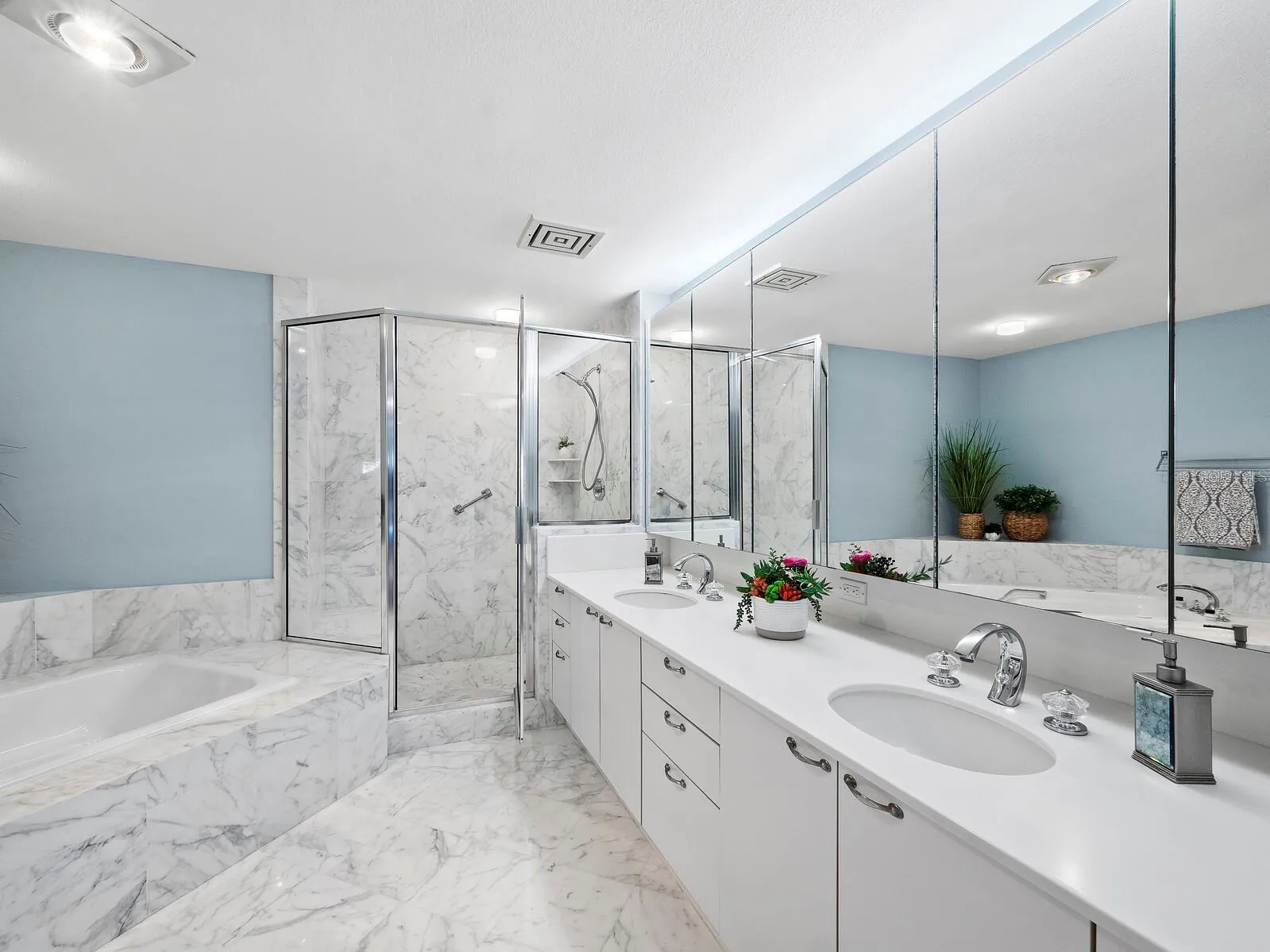Located within the gated Bay Isles community, Marina Bay offers the best of Longboat Key living. This exceptional 3BR/3BA residence spans 2,830 sq. ft. and features an open floor plan with wood tile floors, recessed lighting, and tray ceilings. The spacious living area flows seamlessly to a screened terrace, where you can enjoy views of manicured grounds, the bay, and the city skyline. The kitchen is both stylish and functional, featuring a large center island with seating, all-white cabinetry, stone countertops, a matching backsplash, and premium stainless-steel appliances. The primary suite offers direct terrace access and a spa-like bath with a soaking tub, dual vanities, a glass-enclosed shower, and elegant tilework. Two additional bedrooms provide flexibility for guests or a home office. A laundry room with built-in desk space completes the interior. Marina Bay is pet-friendly and offers onsite management, a fitness center, a library, multiple tennis courts, and a heated pool. As a Bay Isles resident, you’ll enjoy gated entry and exclusive access to the Bay Isles Beach Club, a private, deeded beach with white sands, Gulf waters, a pavilion, picnic areas, grills, and restrooms. Boat slips are available for purchase or lease at The Longboat Key Club Moorings, a premier deep-water marina with concierge services and top-tier amenities for vessels up to 150 feet.