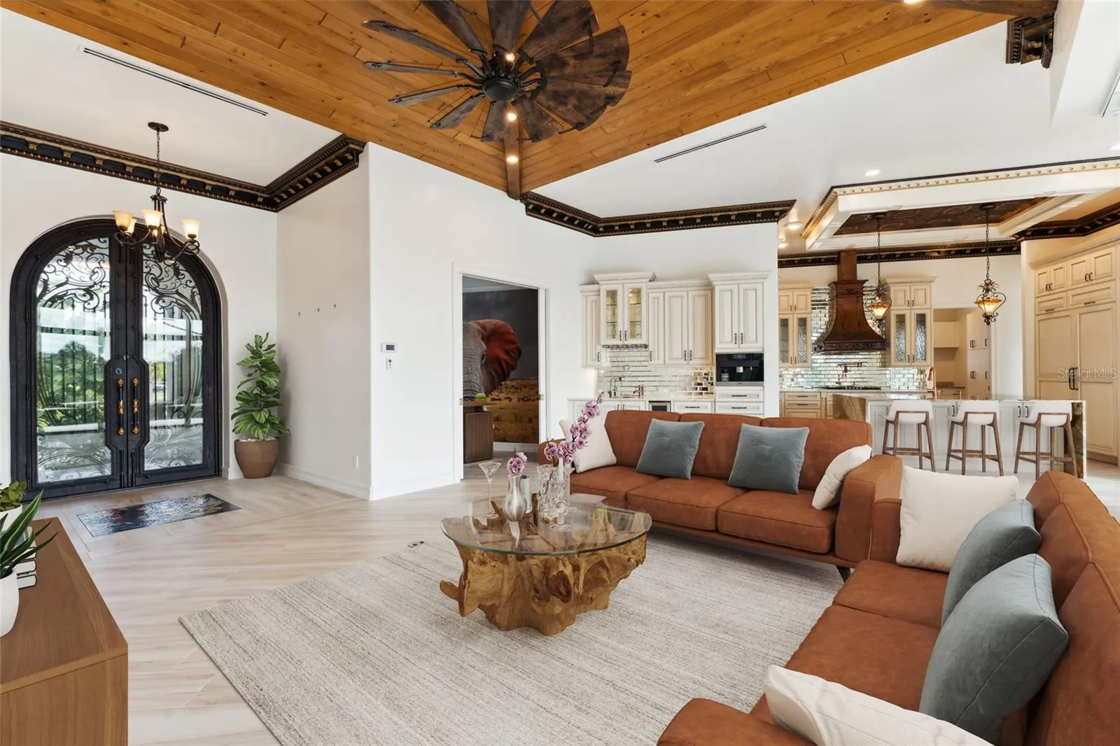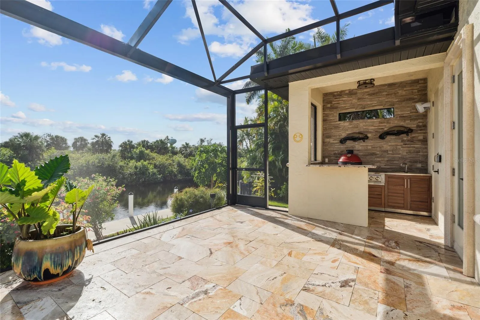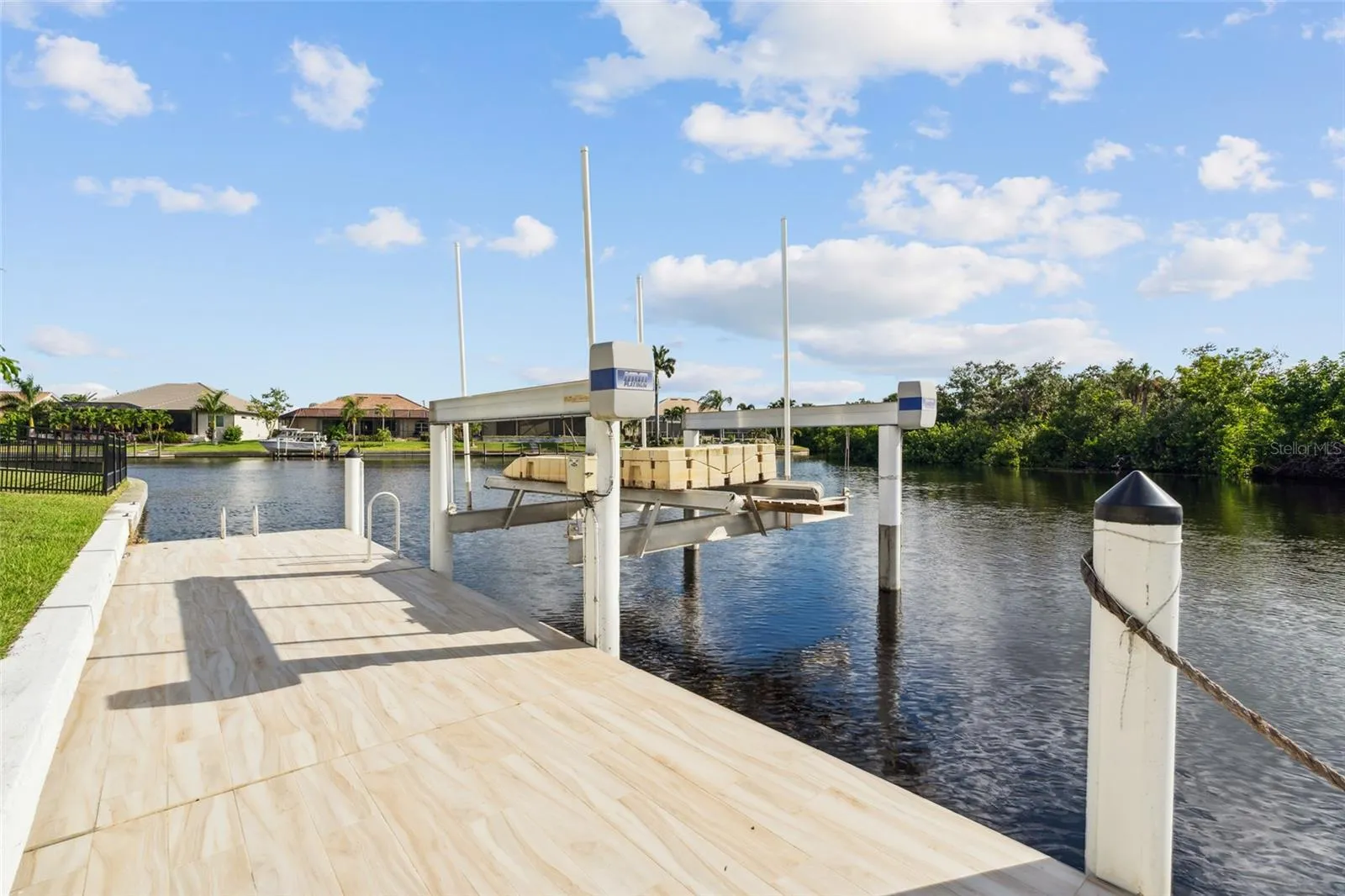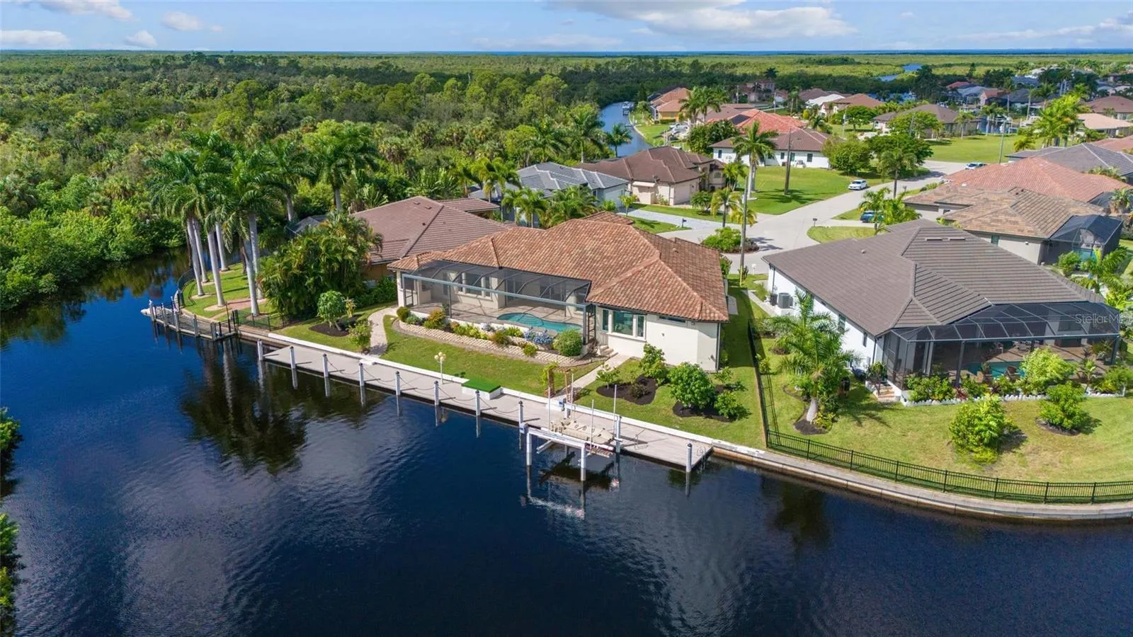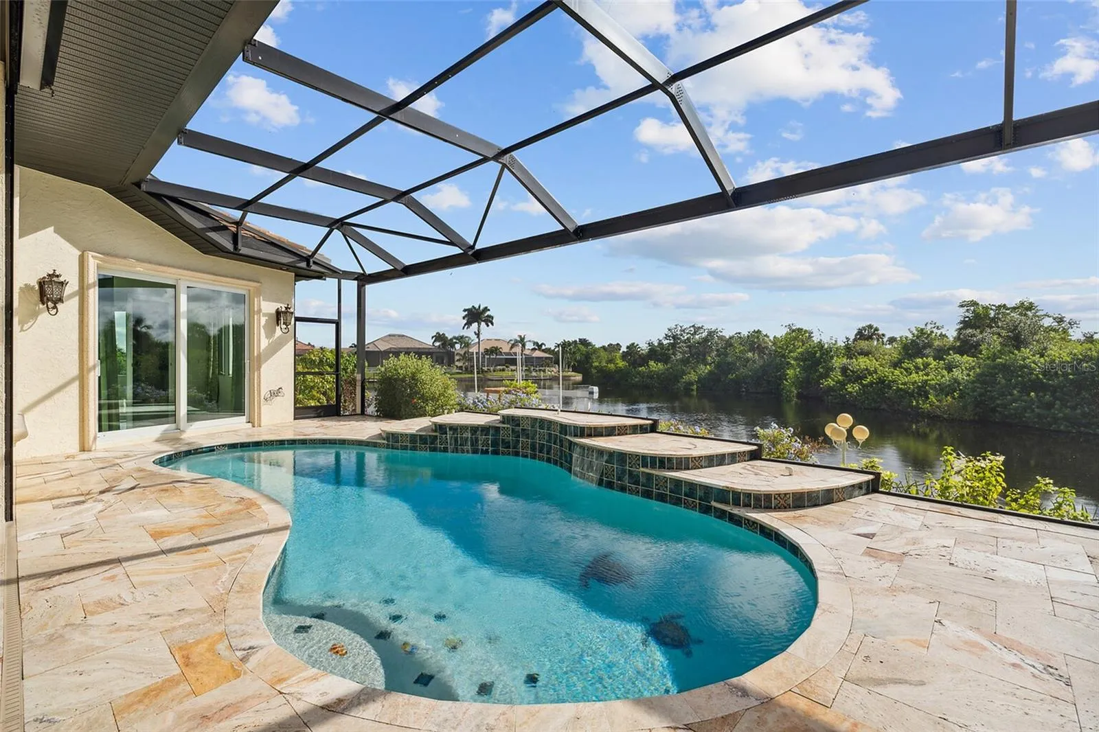 Under contract-accepting backup offers. One or more photo(s) has been virtually staged. Nestled in the desirable canal community of Burnt Store Isles, this 2020-built custom home is a masterpiece of craftsmanship and elegance. Boasting 140’ on the water and a tranquil rim canal location, this residence offers the luxurious waterfront lifestyle you’ve been waiting for. Step inside through magnificent custom double arched doors made of wrought iron and glass measuring 10ft x 6ft. Once inside the grand foyer, you are drawn into the great room with 14’ cypress ceilings and an open floorplan ideal for entertaining. Grab a cocktail from the beautifully appointed wet bar or the perfect espresso from the built-in Miele coffee system with reverse osmosis water filtration system. The heart of the home is the stunning chef’s kitchen, with solid wood cabinetry, granite counters and a large island that boasts a quartz countertop with waterfall edges. The handmade copper kitchen sink and a striking copper range hood add an artistic touch to this gourmet kitchen. Throughout the rest of home, you will discover a world of bespoke details, from the hand-carved sinks that grace each bathroom to the etched glass showers that elevate your everyday routine. Wake up in the primary suite to the beautiful sunrise overlooking the lanai/pool area as well as the canal and mangroves for a private and relaxed feeling. Step into the luxurious primary bath, which boasts a roman walk-in shower with a hand carved glass surround, dual vanities featuring hand-blown glass sinks and beautiful granite countertops. Just off the bathroom is the large custom closet that has direct access to the spacious laundry room, making laundry a breeze. Perfectly accommodating overnight guests, the second primary suite in the guest wing of the home offers a spa-like retreat, complete with a large custom walk-in closet, luxurious steam bath for ultimate relaxation and direct access to the lanai. Outside, the expansive lanai beckons you to enjoy the Florida lifestyle with a private pool, perfect for lounging or entertaining. The lanai is stunning with its French style Leonardo stone floor surrounding a custom salt-water pool boasting two waterfalls and an outdoor kitchen. Beyond the lanai, a canal-front setting awaits, complete with a private boat dock and an impressive 16,000-pound boat lift, making it a boater’s paradise. Additional features include: Hurricane impact windows and doors, Louis Vuitton Octopus mailbox, 4-zone Amana AC, Thermador and Miele appliances, Toto Japanese bidet/toilets, water saving sprinkler system, climate controlled garage, 20KW Kohler whole house generator with a 500 gallon underground storage tank. This home’s perfect blend of luxury, functionality, and artistic detail creates an unrivaled living experience in one of Punta Gorda’s most sought-after waterfront communities. This is a must-see property, schedule your viewing today and start living in luxury.