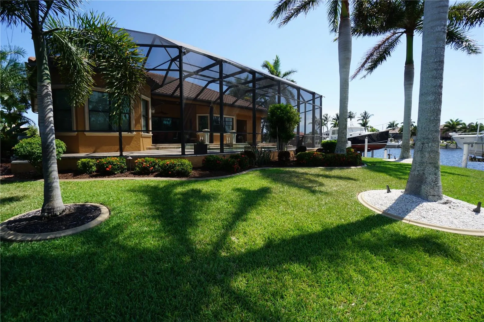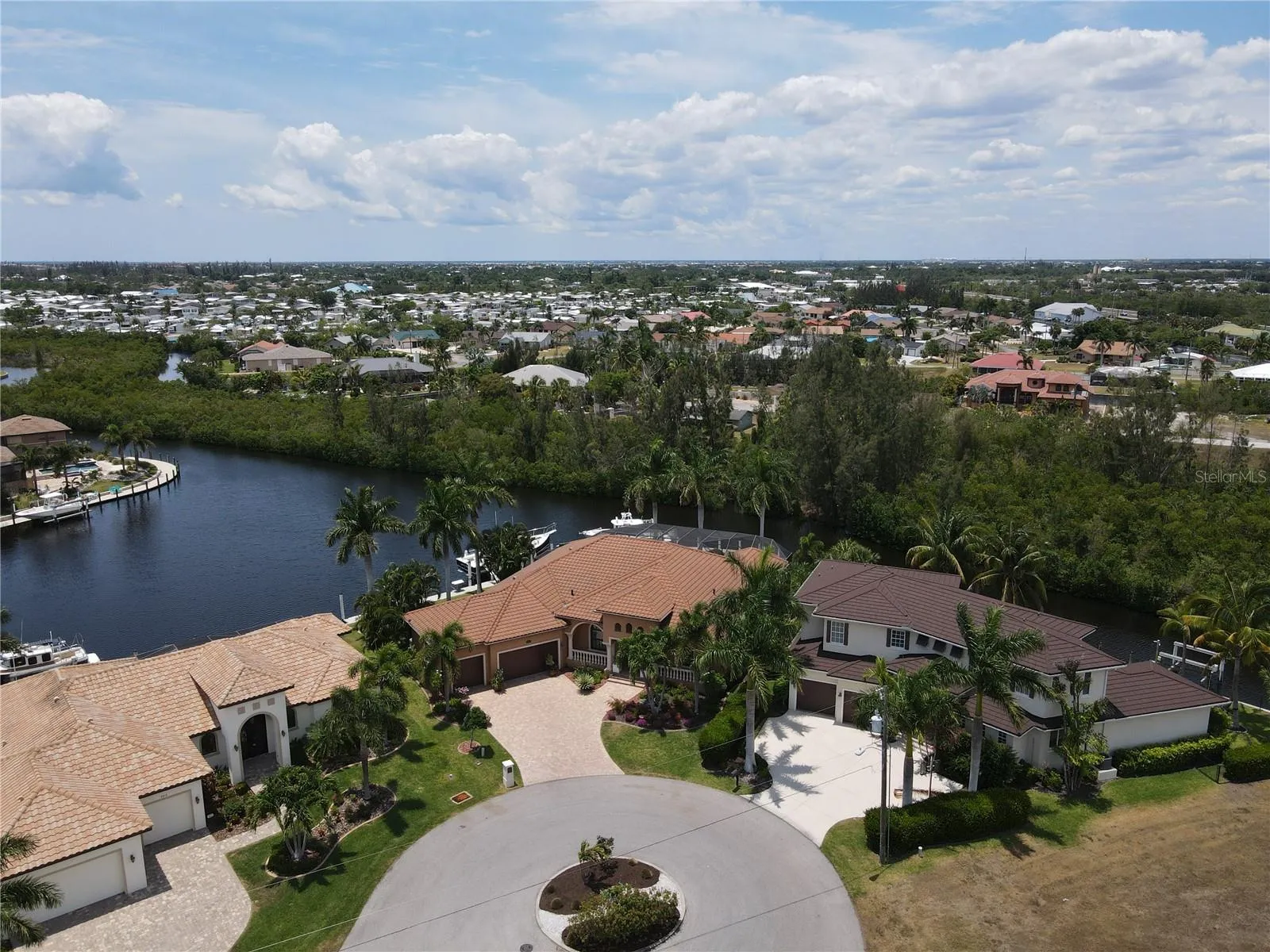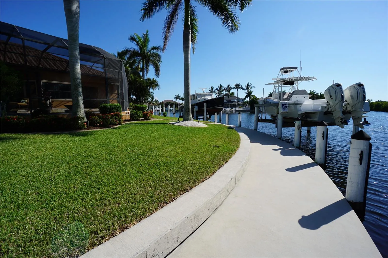 This 2014 Towles Corp. home is truly a one of kind that resides on a tip lot with 192 ln. ft. of waterfront seawall and can be closed within 2 weeks for that special buyer. There is 170 ln ft. of concrete dock with 2 boat lifts. One is a 20,000 lb. lift and the second is a 16,000 lb. lift. The seller is willing to finance for the right buyer who qualifies at a rate lower than the market rate. This home is 2854 sq. ft with 3 bedrooms and 3 full baths. The homes curb appeal is evident as soon as you pull in to this spacious oversized brick paver driveway that leads to a large and tall 3 car garage with lots of options for overhead storage. As you pull in you will notice all the attention to detail starting with the front porch columns and the special ordered front door. It is landscaped like a dream and then in the back you will find the pool area is like a resort setting. The huge lanai with travertine tile is great for get togethers and parties. The privacy out back is second to none as this lot was specifically hand picked for when this home was built. Once inside, it is like a t.v. show when you notice all the amazing upgrades such as a Sub Zero refrigerator and a $14,000 La Cornue gas stove. This home is equipped with a 500 gallon, in the ground propane tank, that is used for cooking on the range, the 20KW whole house generator and the 2 seperate insta hot water heaters. One of the water heaters is used for the master bathroom and the laundry room while the 2nd unit is for the balance of the home. The master bedroom, bathroom and laundry also has it own air conditioner unit as this home has 2 full size units. The entire home has upgraded large format tile in the living areas and plank looking ceramic or wood in the 3 bedrooms. Wood cabinets finished with granite countertops complete the kitchen and the bathrooms. The formal dining room can easily be used as a office. The ceilings are 12 ft. tall and finished off with 7 inch crown molding and multiple tray ceiling accents throughout the home. The 4 door pocket slider opens up to the entire lanai and pool area and feels like an extension of the living room. The pool bathroom with a walk in shower is probably the nicest pool bathroom in the entire neighborhood. The guest bedrooms share the 2nd bathroom with another walk in shower area and raised bowl sink. The master bathroom has a stand alone tub with diverter for the faucets and wand sprayer. The master bathroom is finished off with a walk in shower and a private toilet room with a separate bidet. His and her walk in closets. The laundry room is 12 x11 and has plenty of cabinet storage and closet. The home has all hurricane rated windows, entrance doors and garage doors. The back lanai area can be quickly closed off with an accordian shutter. So now that you have found your dream home, you will quickly find out how great this location is as the Charlotte Harbor is a short boat ride away. Downtown Punta Gorda and all the unique and amazing dining options are just minutes away. A Home Depot and Publix shopping center is just down the road. Downtown Punta Gorda has water side walking and biking trails, along with a doggy park, kiddie park and multiple different Pickle Ball locations like the new Pickle plex with over 20 courts for leagues and tournaments. For all you golfing enthusiast, there are 8 different courses within a 20 minute drive. Location, Location, Location and this home has it and so much more!
