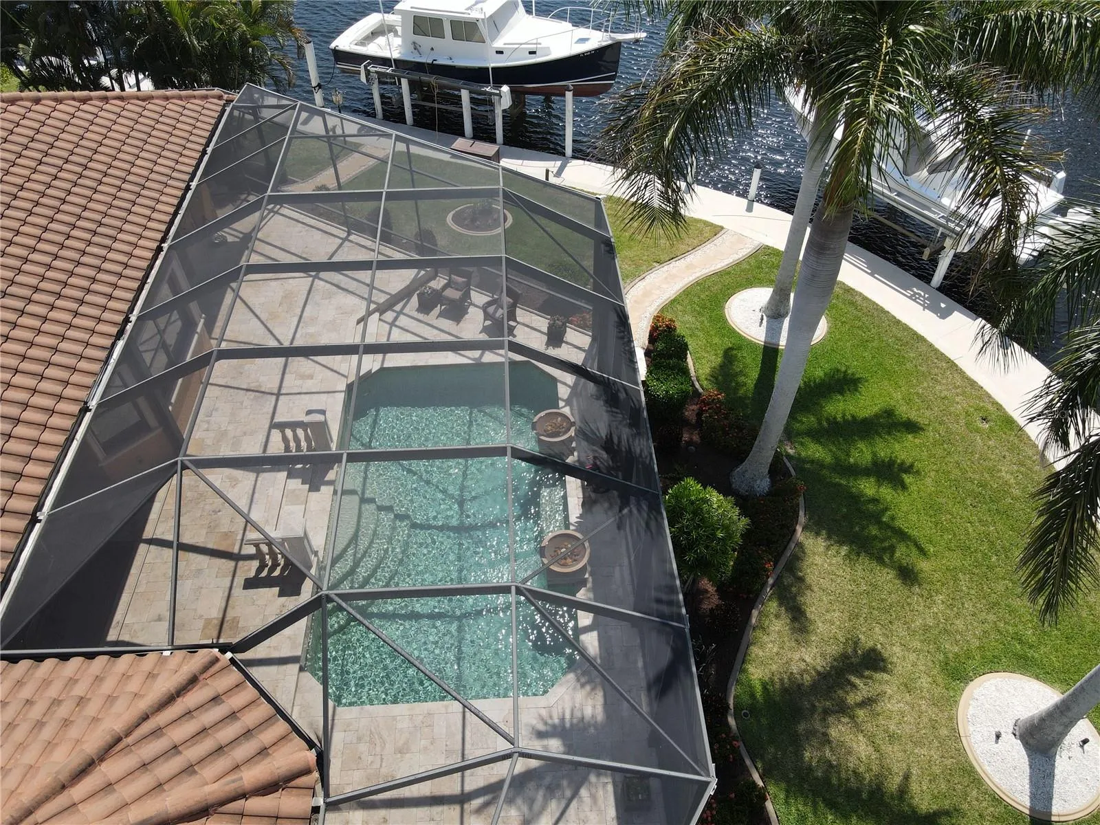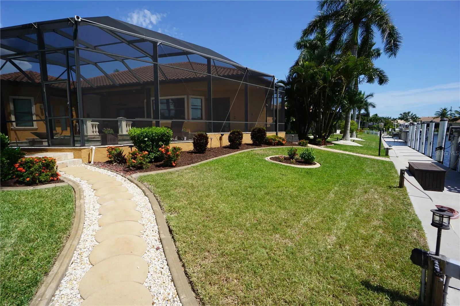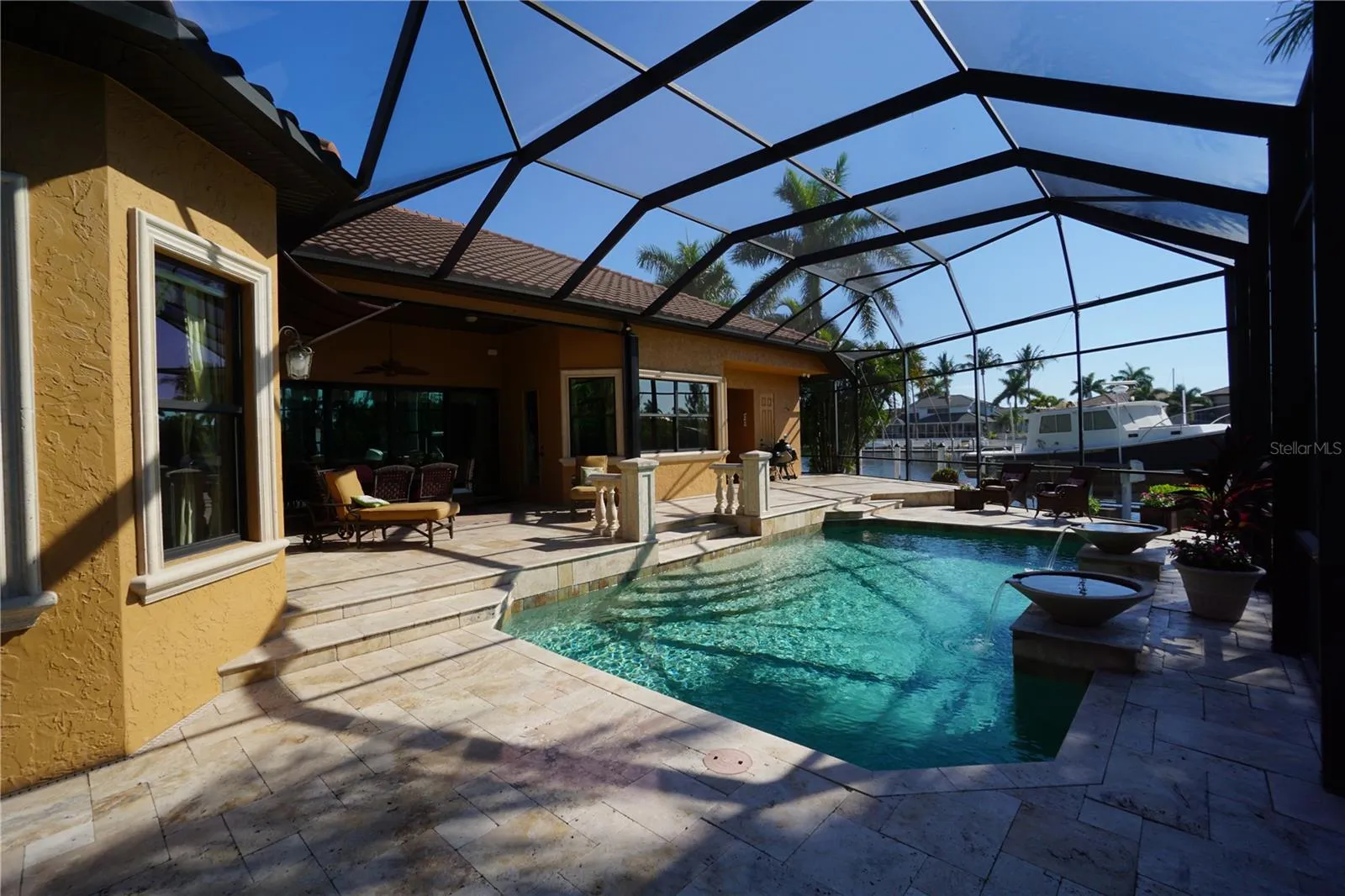 This 2014 Towles Corp. home is truly a one of kind that resides on a tip lot with 192 ln. ft. of waterfront seawall and can be closed within 2 weeks for that special buyer. There is 170 ln ft. of concrete dock with 2 boat lifts. One is a 20,000 lb. lift and the second is a 16,000 lb. lift. The seller is willing to finance for the right buyer who qualifies at a rate lower than the market rate. This home is 2854 sq. ft with 3 bedrooms and 3 full baths. The homes curb appeal is evident as soon as you pull in to this spacious oversized brick paver driveway that leads to a large and tall 3 car garage with lots of options for overhead storage. As you pull in you will notice all the attention to detail starting with the front porch columns and the special ordered front door. It is landscaped like a dream and then in the back you will find the pool area is like a resort setting. The huge lanai with travertine tile is great for get togethers and parties. The privacy out back is second to none as this lot was specifically hand picked for when this home was built. Once inside, it is like a t.v. show when you notice all the amazing upgrades such as a Sub Zero refrigerator and a $14,000 La Cornue gas stove. This home is equipped with a 500 gallon, in the ground propane tank, that is used for cooking on the range, the 20KW whole house generator and the 2 seperate insta hot water heaters. One of the water heaters is used for the master bathroom and the laundry room while the 2nd unit is for the balance of the home. The master bedroom, bathroom and laundry also has it own air conditioner unit as this home has 2 full size units. The entire home has upgraded large format tile in the living areas and plank looking ceramic or wood in the 3 bedrooms. Wood cabinets finished with granite countertops complete the kitchen and the bathrooms. The formal dining room can easily be used as a office. The ceilings are 12 ft. tall and finished off with 7 inch crown molding and multiple tray ceiling accents throughout the home. The 4 door pocket slider opens up to the entire lanai and pool area and feels like an extension of the living room. The pool bathroom with a walk in shower is probably the nicest pool bathroom in the entire neighborhood. The guest bedrooms share the 2nd bathroom with another walk in shower area and raised bowl sink. The master bathroom has a stand alone tub with diverter for the faucets and wand sprayer. The master bathroom is finished off with a walk in shower and a private toilet room with a separate bidet. His and her walk in closets. The laundry room is 12 x11 and has plenty of cabinet storage and closet. The home has all hurricane rated windows, entrance doors and garage doors. The back lanai area can be quickly closed off with an accordian shutter. So now that you have found your dream home, you will quickly find out how great this location is as the Charlotte Harbor is a short boat ride away. Downtown Punta Gorda and all the unique and amazing dining options are just minutes away. A Home Depot and Publix shopping center is just down the road. Downtown Punta Gorda has water side walking and biking trails, along with a doggy park, kiddie park and multiple different Pickle Ball locations like the new Pickle plex with over 20 courts for leagues and tournaments. For all you golfing enthusiast, there are 8 different courses within a 20 minute drive. Location, Location, Location and this home has it and so much more!