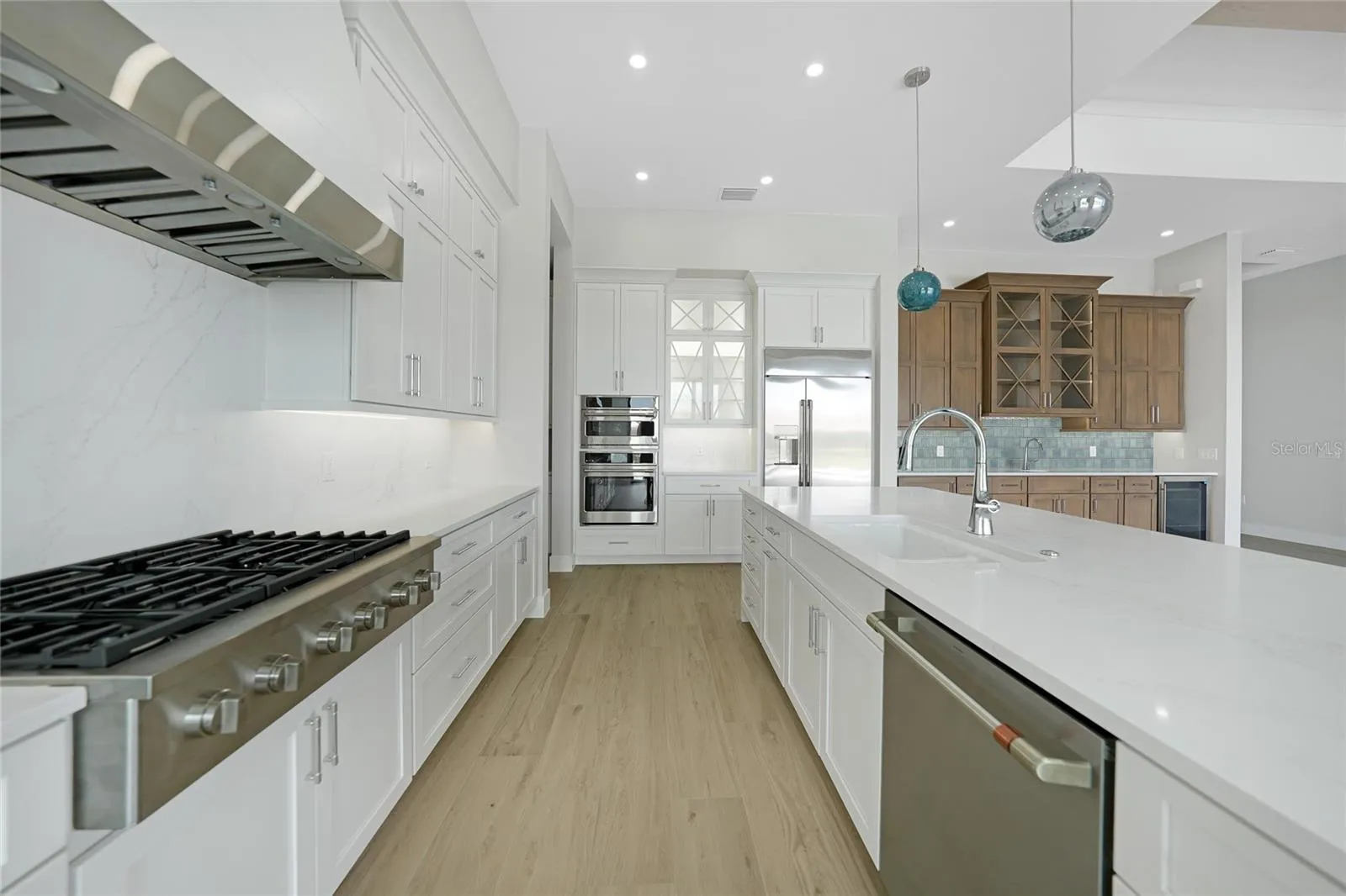 Introducing a rare opportunity to own a brand-new, custom-built waterfront estate that flawlessly combines contemporary design, refined craftsmanship, and the relaxed sophistication of Southwest Florida living. Nestled on a quiet canal in one of Punta Gorda’s most desirable neighborhoods, this 3-bedroom + den, 3-bathroom residence offers over 2,598 sq ft of meticulously curated living space—designed to impress at every turn. From the moment you arrive, the home’s striking curb appeal and attention to detail signal that this is no ordinary build. Step inside and be welcomed by an open-concept floor plan adorned with wide-plank tile flooring, exquisite tray ceilings, faux wood beams, and custom shiplap features that echo coastal elegance. The heart of the home is the designer kitchen—outfitted with Café Professional stainless-steel appliances, quartz countertops, soft-close cabinetry, and a gas cooktop—flanked by a butler’s pantry, wet bar, and wine refrigerator for effortless entertaining. A wall of zero-corner sliding glass doors opens completely to the outdoor living area, blurring the lines between interior and exterior in true Florida fashion. Retreat to the expansive primary suite, where private pool access, a custom wood closet system behind 8-foot solid doors, and a spa-like bath with dual shower heads and a rain shower head, with quartz finishes that create a personal sanctuary. The thoughtful split-bedroom layout provides comfort and privacy for guests, with the second bedroom featuring an en-suite bath, and the third offering direct access to the pool and shared access to the cabana-style pool bath. Step outside to your private tropical resort—a fully fenced backyard anchored by a heated, saltwater pool adorned with iridescent glass tile, powered by state-of-the-art Pentair equipment. Entertain in style under the extended covered lanai complete with a fully equipped outdoor kitchen (grill, sink, refrigerator), and refresh with the outdoor shower after a day on the water. A 36×10 concrete dock with pavered walkway offers quick boating access, making this home a dream for water enthusiasts. Additional luxury features include: *Three-car garage with epoxy flooring *Custom wood accents and high-end finishes throughout *TV mounts pre-installed in multiple rooms *Quartz surfaces in kitchen, all bathrooms, and laundry *Rain gutters, garbage disposal, and fully landscaped grounds. This home is more than move-in ready—it’s a move-up in lifestyle. Every inch was crafted with the discerning buyer in mind, combining architectural beauty with practical luxury. Whether you’re seeking a serene retreat or an entertainer’s paradise, 2815 Coral Way delivers an elevated waterfront experience without compromise. Schedule your private showing today and experience Punta Gorda luxury at its finest.