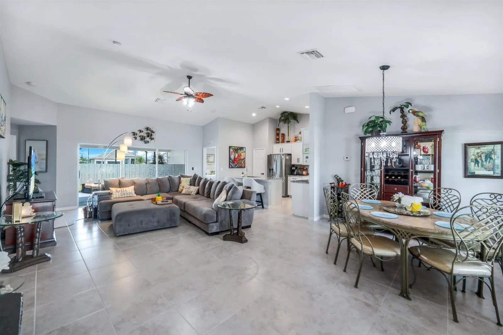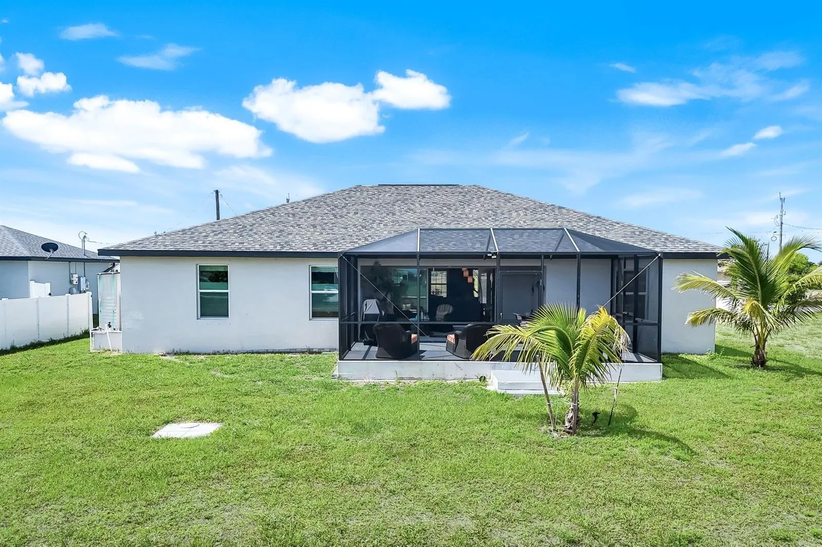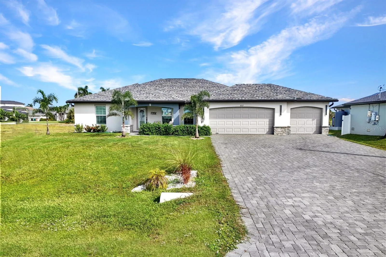 Better Than New – Upgraded 4-Bedroom, 3-Car Garage Home with Designer Touches in NW Cape Coral! Plus it includes the lot next store. This is not your typical builder-grade home—welcome to a truly exceptional Christopher Alan residence loaded with upgrades and pride of ownership throughout. From the moment you arrive, you’ll notice the difference: a brick paver driveway, custom lighting, and lush landscaping set the tone for what’s to come. Step inside and be impressed by plantation shutters, elegant upgraded lighting, and energy-efficient LED recessed can lights in the kitchen and baths. The open kitchen is a showstopper with upgraded appliances (double oven range, quiet dishwasher, double-door refrigerator—all included and photographed for detail), a center island, pantry, and sleek upgraded cabinet hardware. This immaculately maintained 4-bedroom, 2-bath home offers a split-bedroom layout for privacy, and every door features enhanced handles and hardware for a refined finish. The home is also equipped with a whole-house reverse osmosis system (just 3 years old), ensuring clean water throughout. The outdoor living space is a true retreat—enjoy your morning coffee or evening glass of wine on the extended 10×17 under-roof lanai, complete with added ceiling fan, and step out to the spacious 12×24 caged patio—ideal for entertaining, lounging, or future outdoor kitchen. The backyard has room for a dream pool, a playground, or room for your pets to roam free. Additional features include ceiling fans throughout, sealed grout on tile flooring for like-new appearance, and a 3-car garage for added convenience and storage. Located just off Burnt Store Rd., you’re just minutes from grocery stores, gas stations, local boat ramps, and Crystal Lake Park. A brand-new neighborhood playground is just two streets away, and world-class beaches, golf, dining, and entertainment are just a short drive. Bonus: The adjacent lot at 4321 NW 34th Ln is also available for purchase separately—imagine the possibilities! Don’t miss this one-of-a-kind opportunity to own a truly standout home in one of NW Cape Coral’s fastest-growing neighborhoods.