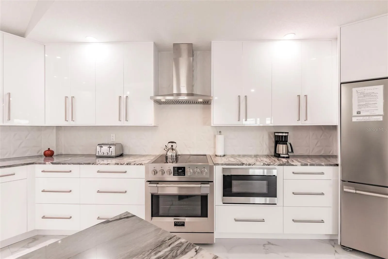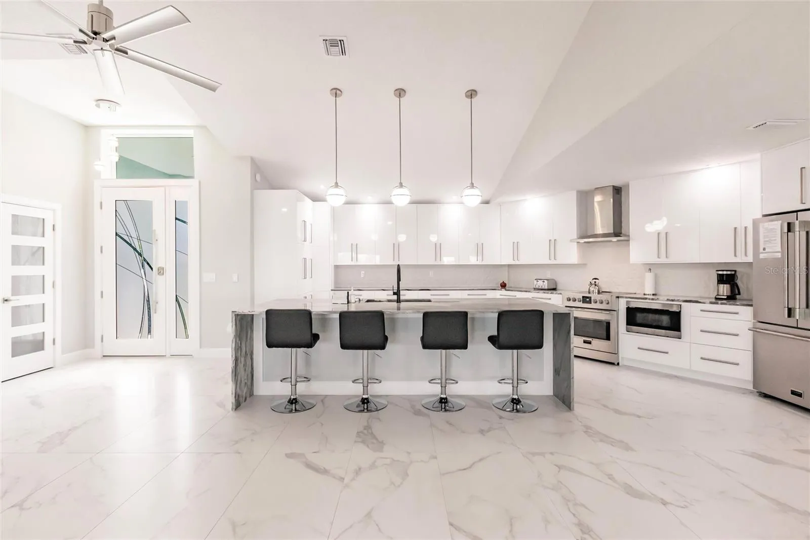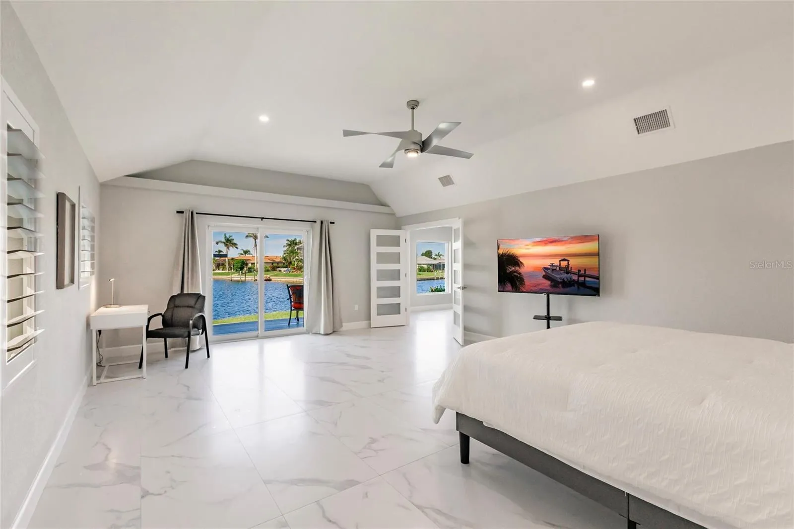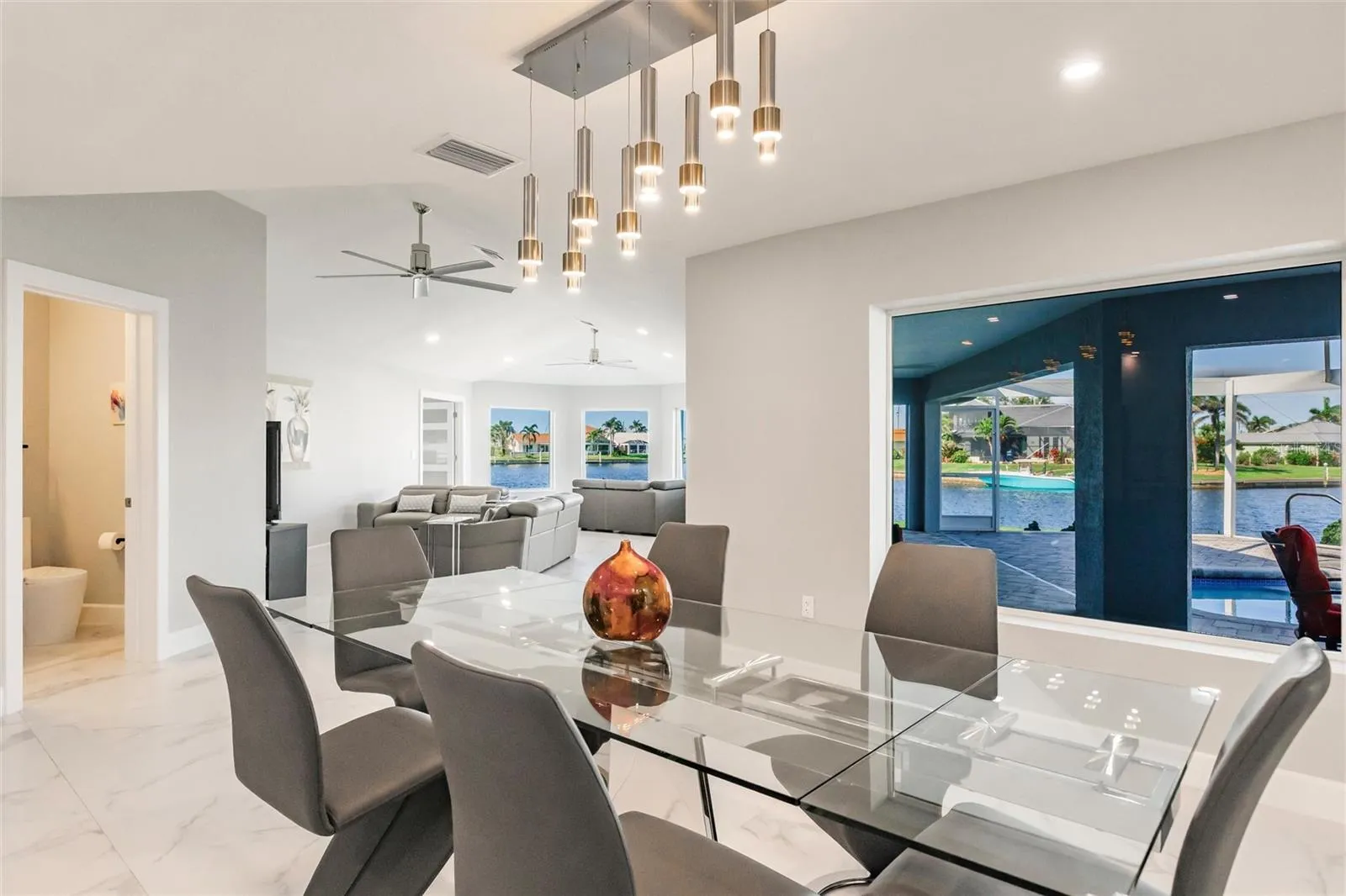 Under contract-accepting backup offers. Welcome to your turn-key 2024 Renovated Waterfront Oasis, where every detail whispers of luxury and relaxation. Nestled just 5 MINUTES away from the bustling harbor, this haven boasts 175 feet of serene SAILBOAT waterfront, offering a front-row seat to a paradise that is exclusively yours to enjoy. Venezia makes for the perfect ready Airbnb. IMPACT WINDOWS AND DOORS offer peace of mind year-round. Lasting up to 50 years, the newly installed CONCRETE ROOF offers additional protection for a homeowner! Stepping inside this NEWLY PAINTED & RE-STUCCOED sanctuary, you are greeted by 2,911 square feet of meticulously crafted living space. With 3 large bedrooms and 2 full baths, along with 2 half baths, there’s room for everyone to unwind in comfort. Porcelain tile floors gleam throughout the home, leading you to a gorgeous living area adorned with large picture windows and sliding glass doors that frame the breathtaking views of your waterfront property. Entertaining is effortless and enjoyable for all. The gourmet kitchen is adorned with high gloss, solid wood European cabinets that softly close, brushed nickel cabinet pulls, a spacious walk-in pantry with cabinetry, and sleek Fulgor Milano Sophia appliances, including an induction range that beckons the inner chef within you. Admire the beautiful water view from the heated poolside oasis, where a resurfaced heated swimming pool with spa awaits, enclosed by a pool cage with no see um screen for uninterrupted enjoyment! As we retreat to the master suite, a deck invites you to sip your morning coffee while soaking in the surroundings. With a view that relaxes, further pamper yourself in the large ensuite bath, featuring Ratel toilets, Kohler sinks, and a Halo water filtration system. A concrete dock with an 18,000 lb. lift awaits the avid boater, ensuring total access to the water below. This property also has a front-row seat to the yearly festive Christmas Boat Parade that has become a staple in this community. Indulge in the finer things in life at this turn-key waterfront retreat, where every amenity has been thoughtfully curated for your utmost enjoyment. Welcome home to luxury living, where every day feels like a vacation.