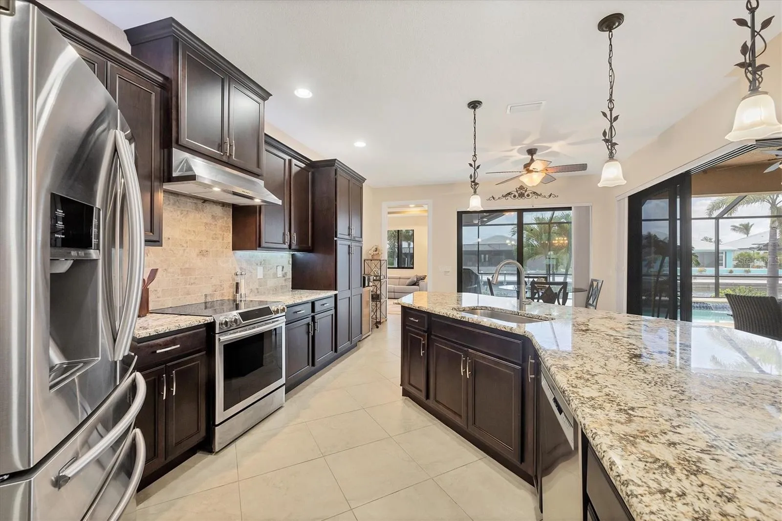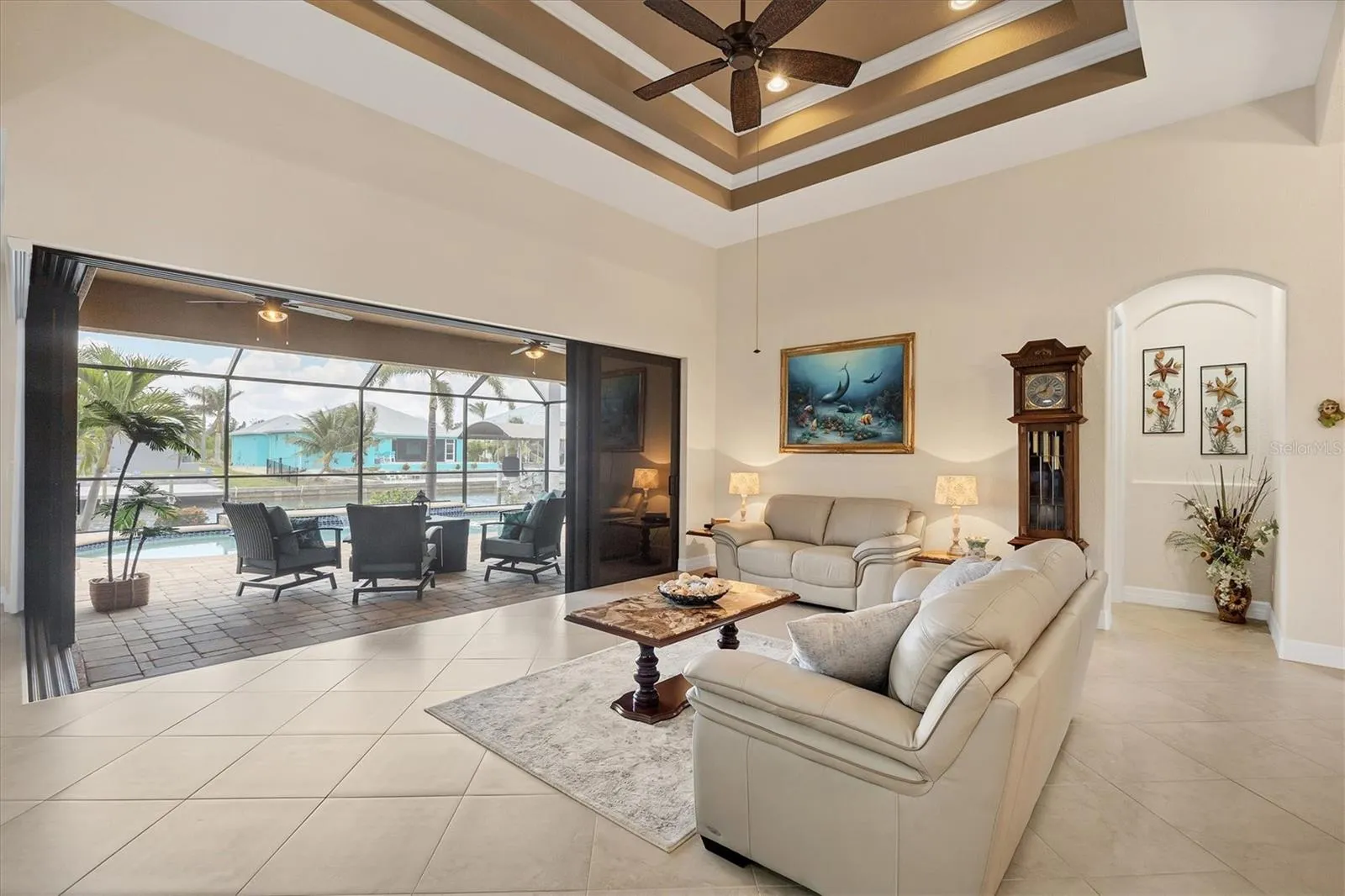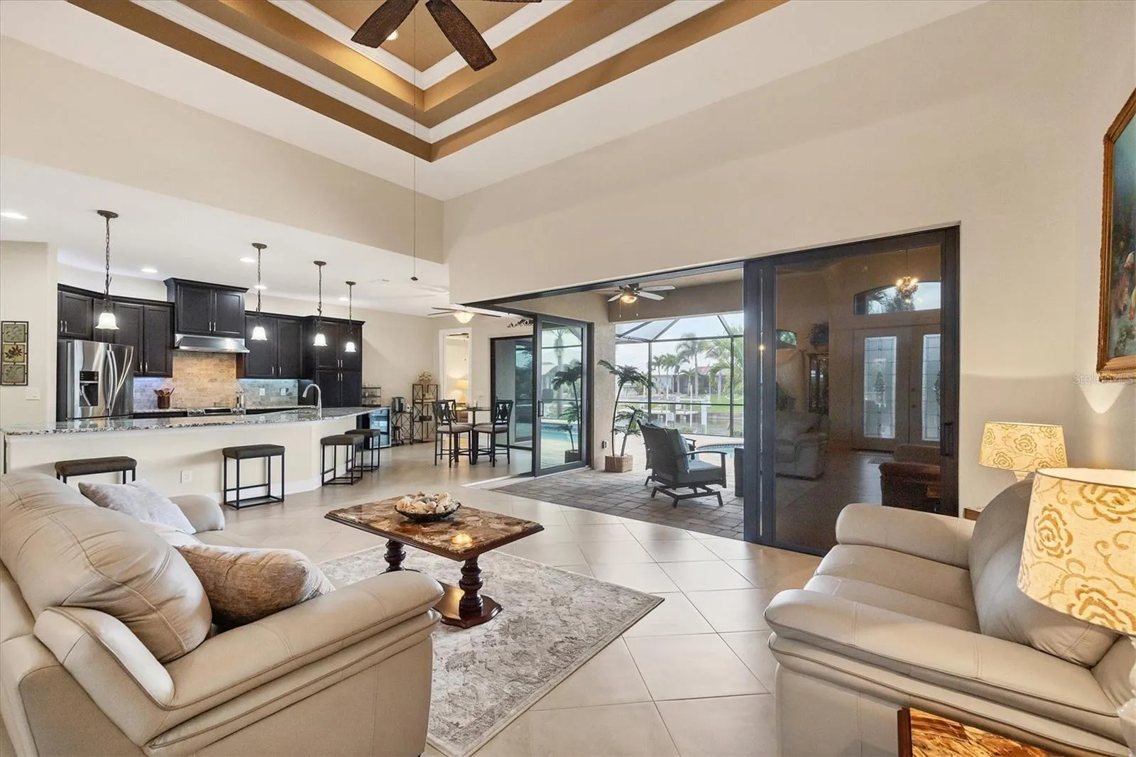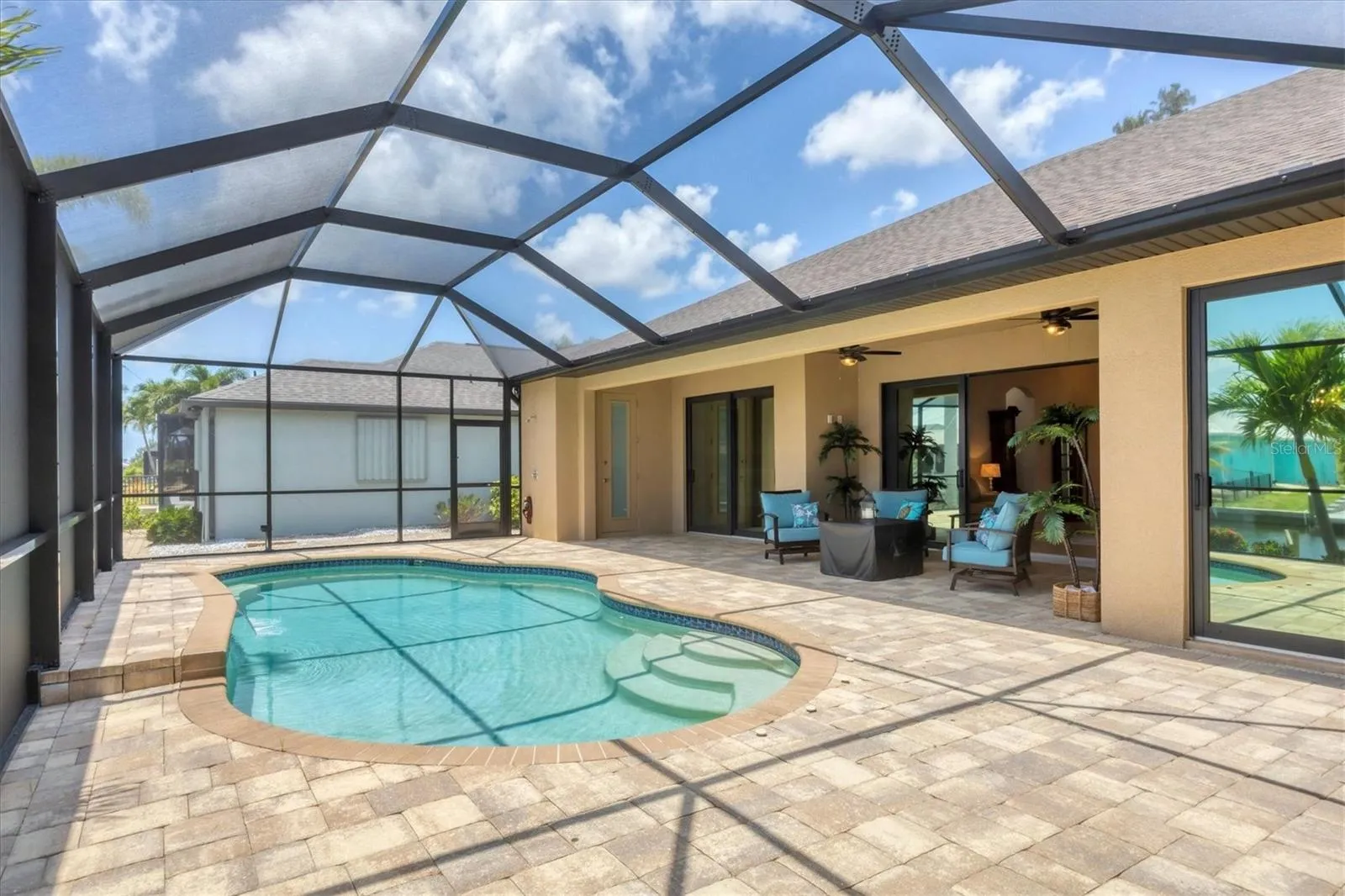 MARKET ADJUSTMENT!! ENJOY “THE FLORIDA LIFESTYLE” in this Beautiful Custom Built POOL HOME in one of the most sought after WATERFRONT BOATING communities on the GULF COAST!!! This distinguished well mantained home is absolutely STUNNING!!! Features include 3 BEDROOMS, 2 1/2 BATHS, Great Room with Double Tray Ceiling, 8ft 90 Degree Sliders to Lanai and Pool Area, Formal dining room and a large BONUS FAMILY room. This Home is Elegantly appointed and boasts a very spacious OPEN concept design for the distinguished buyer!!! Home has beautiful light fixtures, ceiling fans, PORCELAIN TILE FLOORS throughout, crown molding and tray ceilings. SPACIOUS Kitchen is tastefully appointed with gorgeous wood cabinetry, underlighting and upgraded GRANITE countertops, large ISLAND with BREAKFAST BAR, Lots of storage and counter space, TILED BACKSPLASH, STAINLESS STEEL appliances include refrigerator, hooded range, dishwasher and microwave, Soft close and pull out drawers, PENDANT and recessed lighting and a large BREAKFAST NOOK. Spacious laundry room with Maytag WASHER & DRYER, Built-in cabinetry with underlighting, tile backsplash, utility sink, GRANITE countertops, upright freezer and a built-in DESK for crafts/sewing. All NEW Smoke Detectors, Window Shades, NEW HEAT PUMP. Split guest bedrooms are spacious and have a nicely TILED guest bath. Primary bedroom has 8ft sliders to pool and lanai, tray ceiling, ceiling fan, 2 WALK-IN CLOSETS, Linen Closet a Nicely TILED Roman style walk-through shower, DUAL VANITIES with GRANITE countertops. Enjoy this spacious Paver lanai, HEATED SALTWATER POOL with Waterfall, NEW SALT Clorinator, NEW POOL PUMP, and POOL BATH with OUTDOOR SHOWER and a NEW POOL CAGE!!! MORE featuresi nclude NEW ROOF, Irrigation from canal and system has NEW IRRIGATION PUMP and Control Box. Approx. 80ft PAVER DOCK on SEAWALL with 6K BOAT LIFT with electric and water. SPRAY FOAM INSULATION, Tinted IMPACT WINDOWS, Meticuliously landscaped with Mature trees, 3 CAR GARAGE with epoxy flooring, utility sink and a full 3 Car Paver Driveway. SOUTH GULF COVE is only minutes away from Beautiful Southwest FLORIDA BEACHES in BOCA GRANDE and MANASOTA KEY with boating access to the GULF and surrounding ISLANDS. Community offers several nice PARKS and playground, BOAT RAMP, marinas and a clubhouse and yacht club you can join!!! Several GOLF COURSES, WORLD CLASS FISHING, shopping and great restaurants are only minutes away!!! EXPERIENCE THE FLORIDA LIFESTYLE!!!
