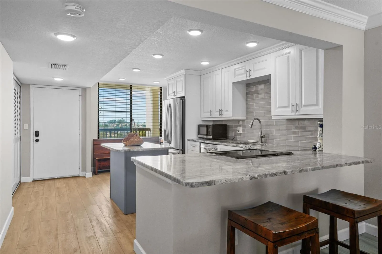 St. Pete Beach Yacht & Tennis Club offers Resort Style living between two charming beach communities. This waterfront condominium residence has an open concept living area, two spacious bedrooms and two full baths. The northern view offers wide open views of the Intracoastal from the private patio – providing glorious sunrises over Boca Ciega Bay and breathtaking sunsets over the Gulf. This residence has been fully updated from the ceilings to the floors and every detail in between. The modern kitchen has granite countertops, new kitchen cabinets and stainless appliances, a large pantry for storage, island for meal preparation and a breakfast bar. The entertainment area has ample space for the dining table which seats 6 guests and a comfortable living room for streaming your favorite shows or hosting game night. The primary suite has a king bed, walk-in closet, ensuite bath and sliding doors to the private patio. The guest bedroom has a queen bed, large built-in closet and access to the second full bath. Private laundry in the unit has new full-sized washer and dryer. Enjoy tennis clinics, clubhouse, fitness center, shuffleboard, pickleball, community pool & spa. A short walk to restaurants and Treasure Island Beaches, and a short drive to downtown St. Petersburg! While all ages are welcome, no pets are allowed and no smoking permitted. Owner prefers a long term tenant. Rental Rate is determined by the length of stay. Boat slip with lift may be available for an additional monthly fee.