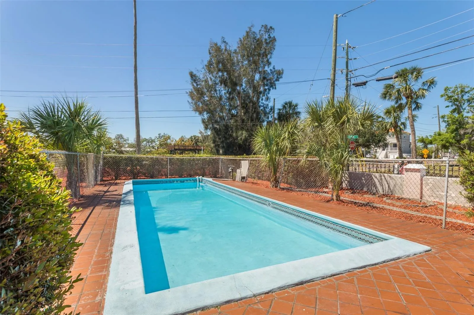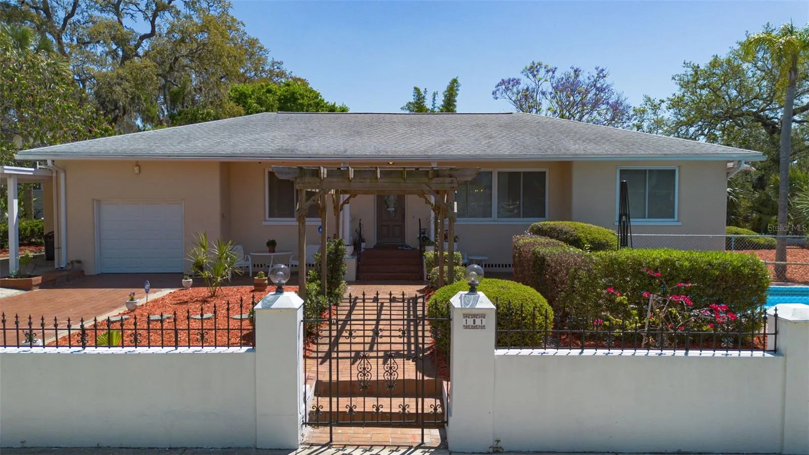 Enter this charming older inground pool home with safety fence, through wrought iron gate and brick paved walkway to the front door.