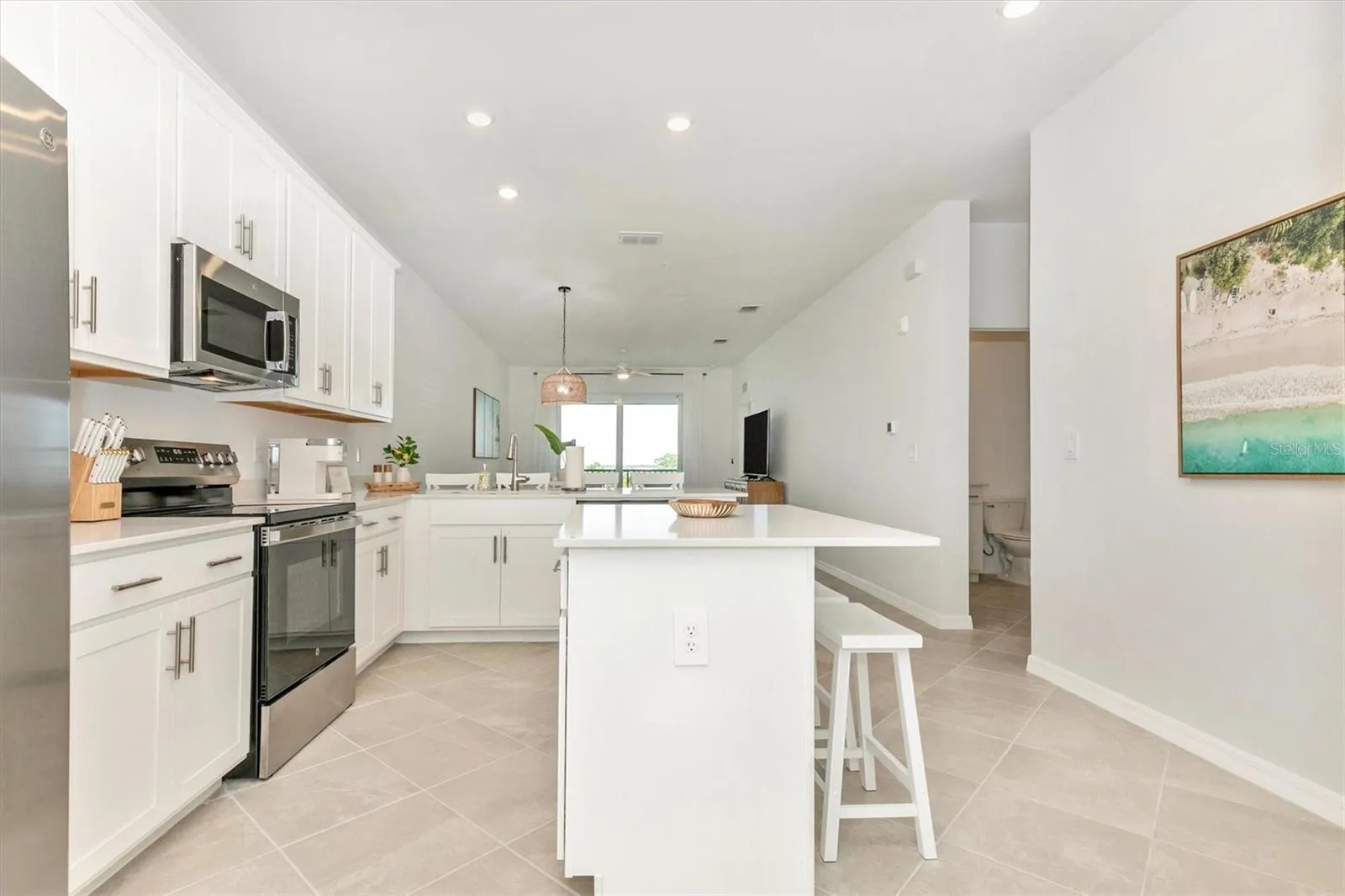 Your Dream Vacation Awaits! Whether it’s a girl’s getaway, a golf trip with friends, a romantic time with your significant other, or a work-from-home experience that feels like a vacation, we have the perfect spot for you! Introducing this stunning, brand-new 2-bedroom, 2-bath condo on the 4th floor, boasting breathtaking views of the Gordon Lewis Championship Golf Course. The golf course is ready for play, and the Sunshine State is calling your name! As you arrive at your very own covered parking spot, you will find the elevator just a few steps away for your convenience, go up to the 4th floor and just to the left you can immediately enjoy breathtaking views. You will be in awe as you open the main door, this condo was decorated with a tropical beach and chic vibe that you will enjoy throughout the rooms. First, you will find a very spacious kitchen with a center island and seating for 6, fully equipped to cook your most delicious meals, lots of cabinetry space, S/S appliances, coffee maker, toaster, wine glasses, pots and pans, and more. To the right you will find a tastefully decorated bedroom with a Queen size bed and top-of-the-line mattress and your very own TV, linens and towels just outside of the bedroom at the linen closet, and right next to it is a full bathroom with a laundry room. An open concept Dining and Living room with a 65” TV to enjoy your favorite shows, and very stylish and comfortable furniture, right next to it is the sliding glass door that takes you to the lanai, with a beautiful and peaceful setting and gorgeous views of the 10th hole and 11th tee, where you can enjoy your favorite drink while you can witness the sunrise or sunset. The Primary room has window overlooking the golf course, King size bed and top of the line mattress too, also you very own TV, two walking closets and a spacious en-suite bathroom with spa-like feel and a linen closet full of beach towels, towels and bedding set. As part of the amenities the community offers Lagoon-style pool & spa, miles of walking trails, Tiki bar, Tennis & pickleball courts, Fitness center, Golf & tennis pro shop. The Club House will be built in 2025. Explore the vibrant Downtown Wellen Park and CoolToday Park, just minutes away. Plus, enjoy the nearby unspoiled beaches, unique flora and fauna, exciting retail, and dining options, new Costco just a few minutes away. This is the ultimate vacation destination for world travelers! Monthly rentals available. Monthly Off-Season $3500. Golf privilege for additional transfer fee. Monthly High Season: $5500 (utilities included $100 cap on electric). Don’t miss this opportunity to experience luxury living in Florida’s sought after Wellen Park Golf & Country Club! Contact me for more details and book your stay today!