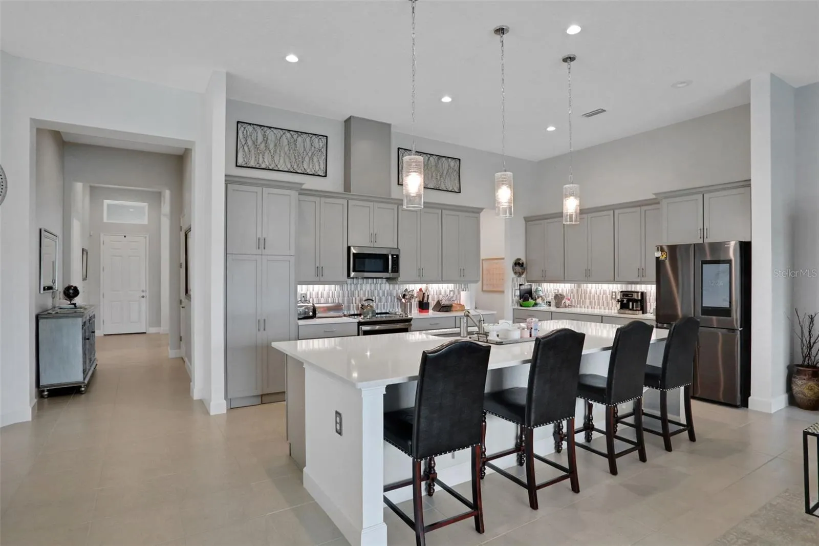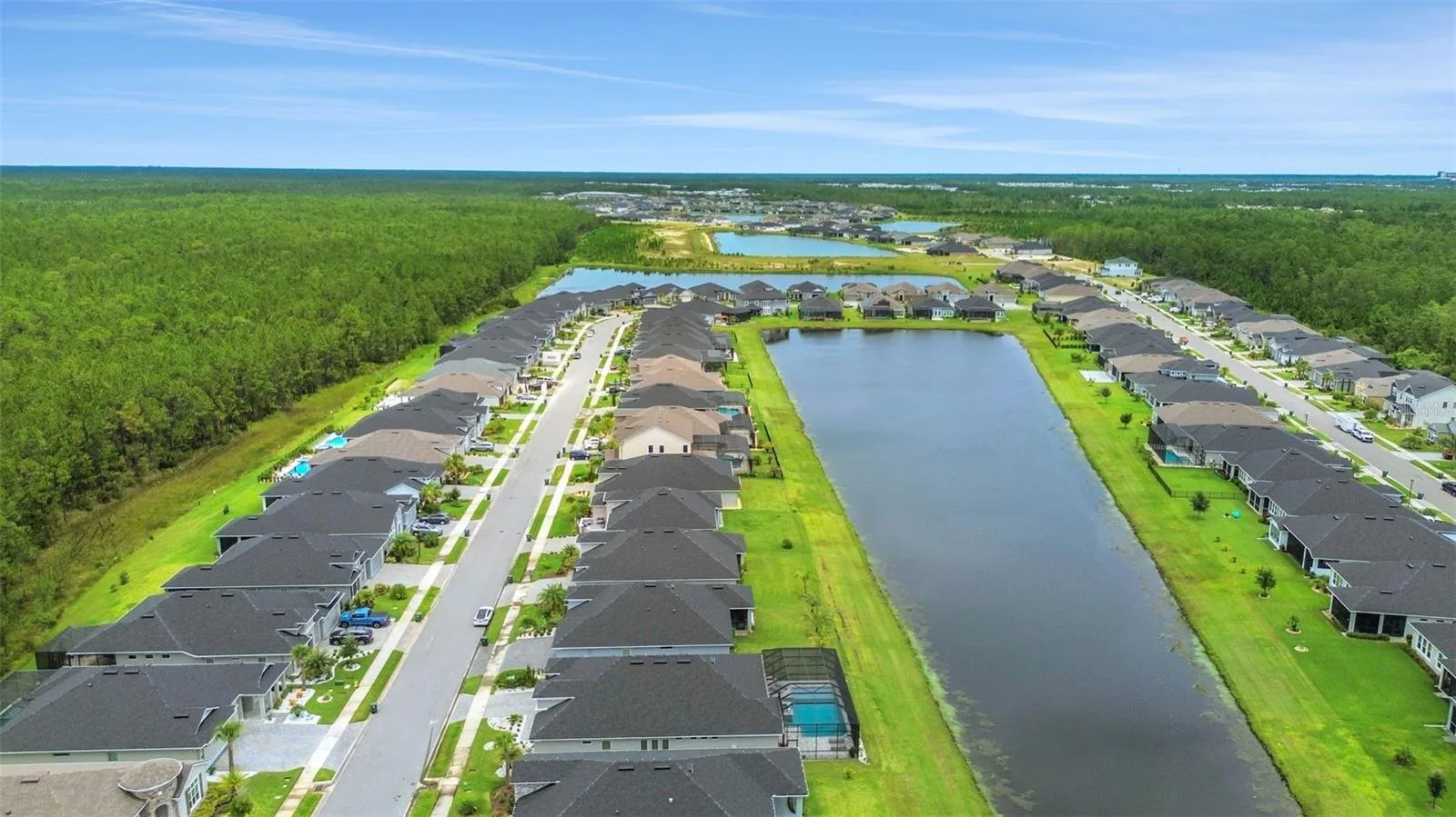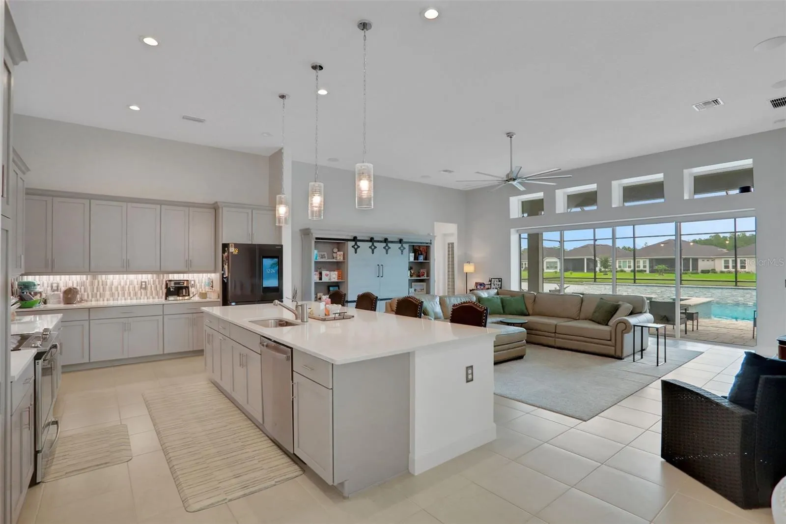Welcome to 402 Aquamarine Way – a recently built, move-in-ready retreat that blends timeless design with true resort-style comfort. With 4 bedrooms, 3 baths, and a versatile flex space, this home adapts beautifully to the way you live, work, and unwind. The heart of the home is the jaw-dropping kitchen, anchored by an 11-foot quartz island, suited for entertaining & everyday ease. Step outside to your own private oasis: a sparkling saltwater pool and spa framed by tropical landscaping, overlooking a tranquil pond, offering the ultimate setting for Florida living year-round. Whether it’s morning coffee on the lanai or sunset soaks, every day feels like a staycation.Other standout features include an EV charger in the garage, upgraded finishes throughout, and a smart, functional floor plan in one of Daytona Beach’s newest, most conveniently located neighborhoods with the best amenities