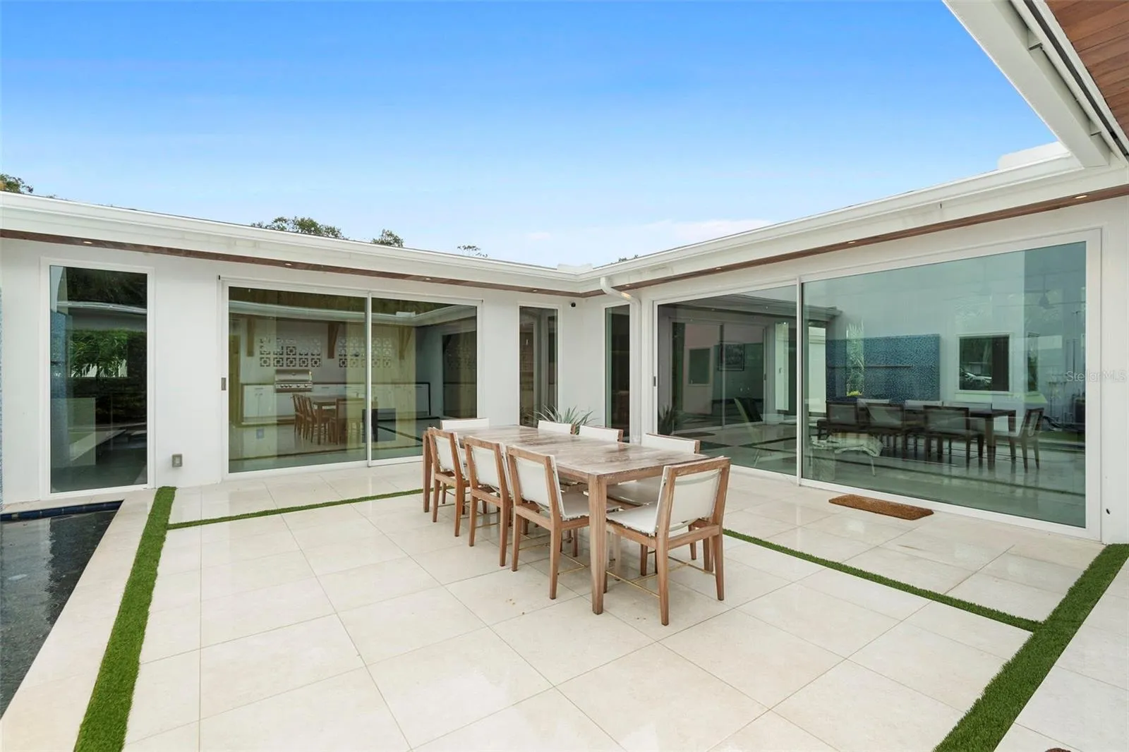 Welcome to 705 Faulkner, your new home in the heart of the Historic District of New Smyrna Beach, Florida. With awe-inspiring views, this mid-century modern, waterfront home offers a PRISTINE 84 ft. of river frontage with a private boathouse, 10,000lb lift and kayak dock. Inside, three bedrooms with three en-suite bathrooms, a dedicated office, and a chef’s kitchen with top of the line appliances from Gaggenau, Miele, & Sub-Zero define luxury living. Panoramic Euro-wall doors provide unobstructed views open to the intracoastal waters and resort-style outdoor spaces, featuring an infinity-edge heated saltwater pool/spa with a mote, outdoor kitchen with granite countertops, retractable “noseeum” screened lanai and Italian porcelain pavers. With newly installed Enphase whole-home solar, you are practically eliminating your electric bill! The upgrades in the landscaping, whole home generator, and impressive outdoor lighting features alone make this home a site to see. 705 Faulkner has all of the elegant, modern features you could want in one of NSB’s most desired neighborhoods.. Just five minutes from the beach and walking distance to the flourishing Canal Street Historic Arts District, this is coastal living in New Smyrna Beach, Florida at its finest!