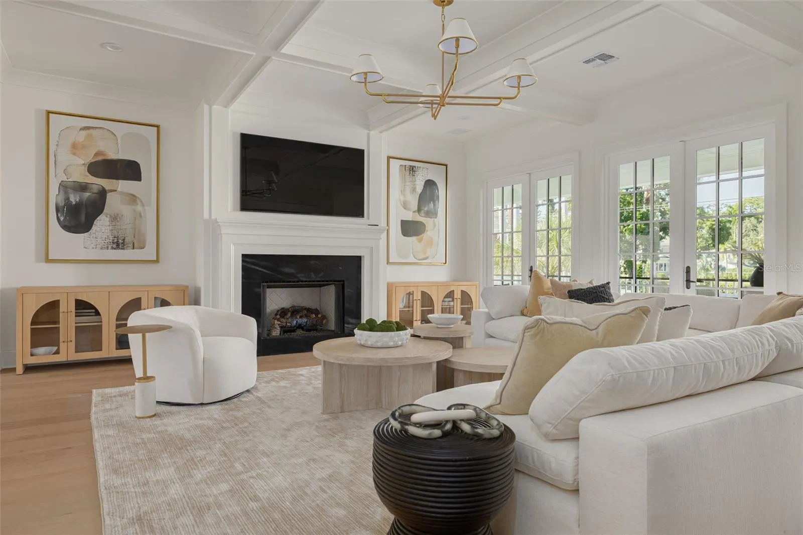 This is a MOVE-IN READY CANOPY SIGNATURE HOME in collaboration with LAUREN LEITNER DESIGN. Would you love to live just steps from BEACH DRIVE in St. Petersburg’s coveted Historic Old Northeast in a custom designed Canopy Home? Here’s your chance to make that dream a reality with Canopy Builders – St. Petersburg’s most trusted name in luxury home construction. This new build sits on a desirable 89 x 110 sq ft corner lot and offers 4 Bedrooms (FIRST-FLOOR PRIMARY SUITE) + Study + Loft, 4 Baths, an oversized 2-car garage, pool and spa, plus an Accessory Dwelling Unit (ADU) with 1 bedroom and 1 bath. The main residence boasts 3,985 sq ft of living space, with the ADU adding 589 sq ft for a total of 4,574 sq ft under air. The ADU includes a full kitchen, laundry, and walk-in closet—ideal for guests, extended family, or rental income. Surrounded by brick streets and mature oak trees, this home blends modern luxury with timeless character, just a 10-minute walk to downtown St. Pete and the waterfront parks. From the welcoming front porch, you enter a foyer with tongue-and-groove paneling and designer lighting, while the formal dining room showcases grasscloth wallpaper, wainscoting, and a statement chandelier. The great room boasts a fireplace and coffered ceilings, flowing seamlessly into the kitchen, designed as both a chef’s dream and a gathering space. The kitchen features a La Cornue range, paneled Sub-Zero refrigerator, Bosch dishwasher, and inset custom cabinetry, anchored by a white oak island with Calcutta marble countertops, tongue-and-groove ceiling, and a custom reeded range hood. A breakfast nook with a gold pendant sits just beyond, while the butler’s pantry impresses with a paneled Avalon wine cooler, deep green cabinetry, brass shelving, marble counters, and gold hardware. The main level also includes a mudroom with dark cabinetry and brick herringbone flooring, a powder room with wallpaper and a soapstone vanity, and a laundry with custom cabinetry, marble checkerboard floors, and Calcutta counters. The primary suite offers wood-beamed ceilings and a spa-like bath with gold accents, fluted vanities, and Calcutta marble. Upstairs, a loft opens to three bedrooms, each with its own en suite, including designs with navy handcrafted tile and dark wood vanity, gingham tile with marble accents, and a white reeded vanity with silver hardware. The upstairs laundry includes deep green tile, Carrera marble counters, and soft white cabinetry. Canopy not only designed the interior but also customized all exterior finishes. Out back, enjoy a custom pool and spa, outdoor kitchen with grill and brick hood, and lush surroundings. The detached ADU includes quartz counters, white cabinetry, and subway tile backsplash. Planned features include Hardie Board siding, a tankless gas water heater, impact-resistant windows, and engineered hardwood floors throughout. Dual digital thermostats allow independent climate control. Additional luxuries include 10’ ceilings on the first floor, 9’ ceilings on the second, 8’ interior doors, and Canopy’s signature gas sconces on the porch. This home is walking distance to waterfront North Shore Park, biking distance to downtown, and just a 20-minute drive to St. Pete Beach or Tampa. Contact us to learn more about the custom finishes that make this home truly one of a kind.
