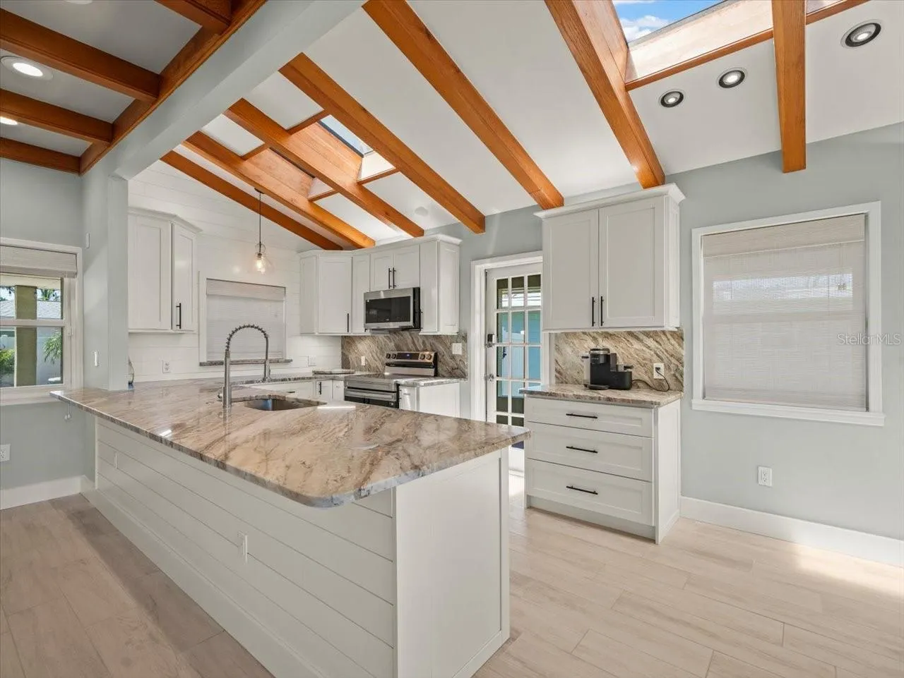 BELOW APPRAISAL – Stunning Beachside Retreat with 1-7 day rentals allowed – 1 Block from the Sand! Experience the ultimate in coastal living with this beautifully renovated 3-bedroom, 2-full-bath, 2-half-bath beach home, just one block from the beach! Boasting 2,352 sq. ft. of living space, this home offers the perfect blend of luxury, comfort, and style. The moment you walk in the door the WOW FACTOR will amaze you. Totally open floor plan & wood beamed ceiling. The brand-new kitchen is a chef’s dream with all new appliances and seamless flow into the family and dining spaces. The entire 1st floor is beautiful ceramic tile. All secondary bedrooms are accessed on the main level. Just a short walk up the stairs will shock you. The 2nd floor is all original hard wood floors and cathedral ceilings. This flex space has many functions. It is a perfect family / TV room and is 24 X 30 feet in size. Now let’s step outside and relax and entertain in your new Pebble Tec pool and spa. I challenge you to find undercover patio out by the pool that is 26 X 30 feet. Pool has its own 1/2 bathroom. This outside oasis is unmatched. ALL appliances, HVAC and water heaters are brand new. This home is a rare opportunity to own a fully updated, move-in-ready beach house in the heart of Redington Beach. Don’t miss your chance to live the beach life you’ve been dreaming of!
