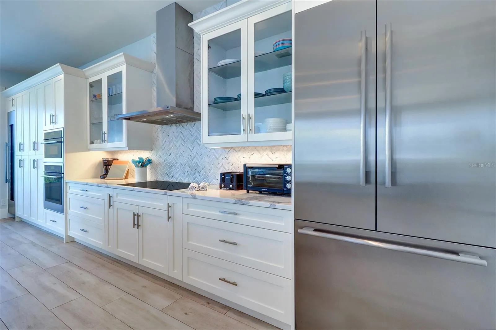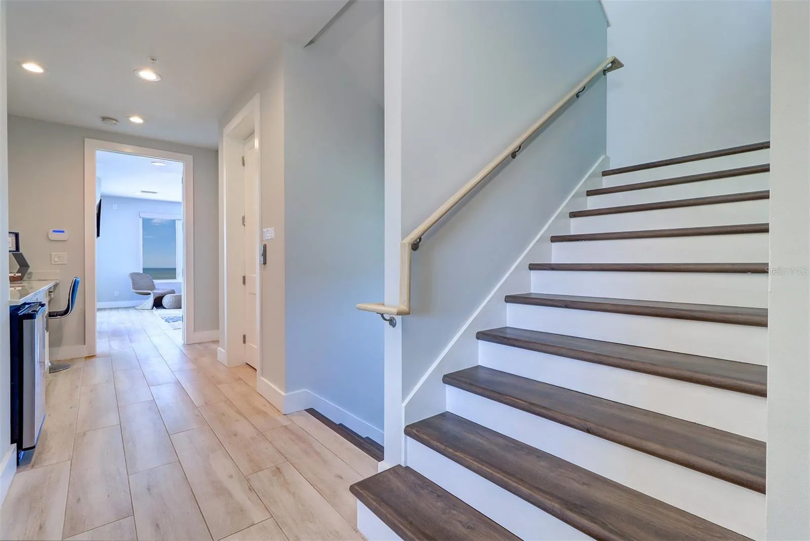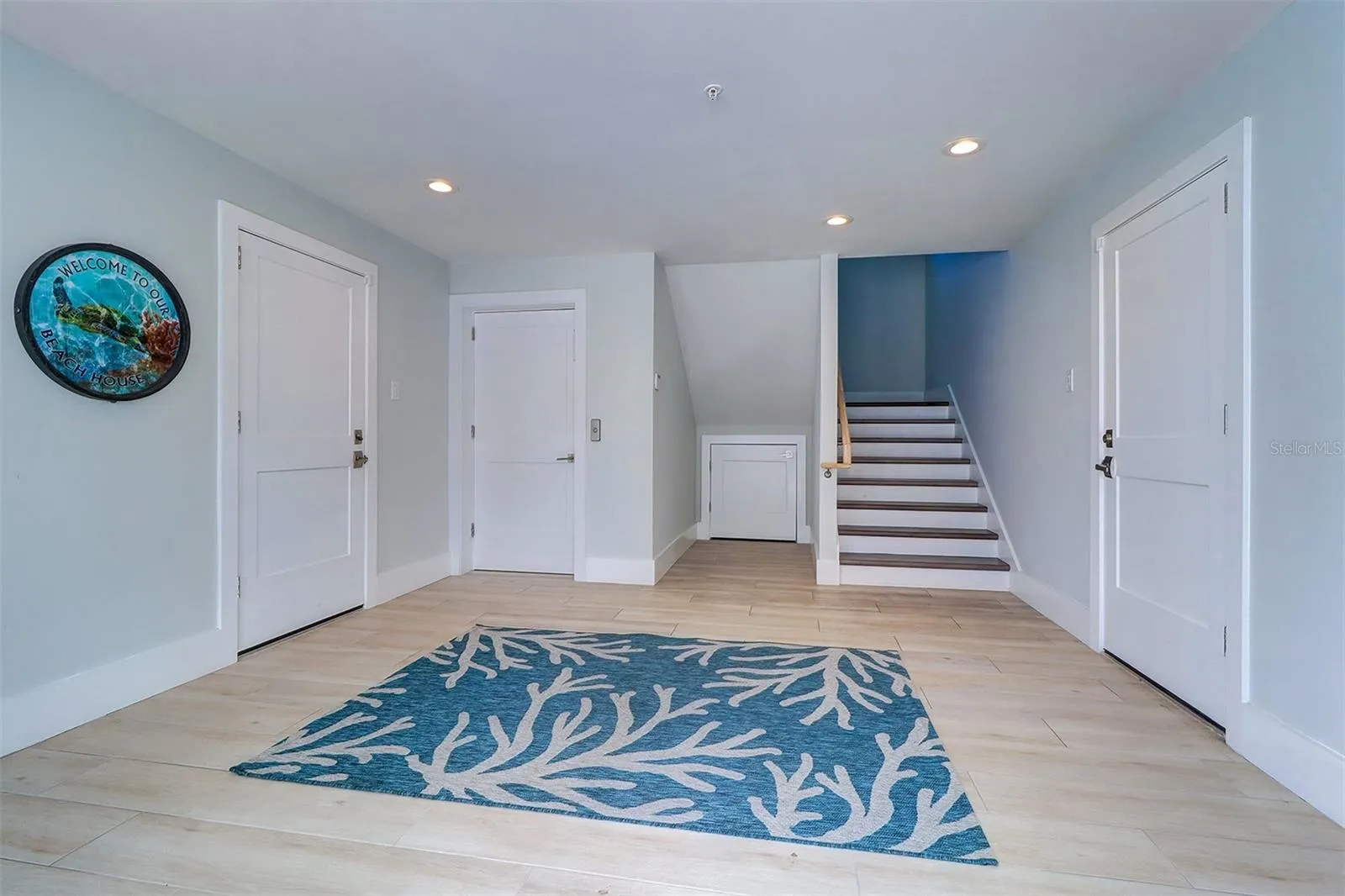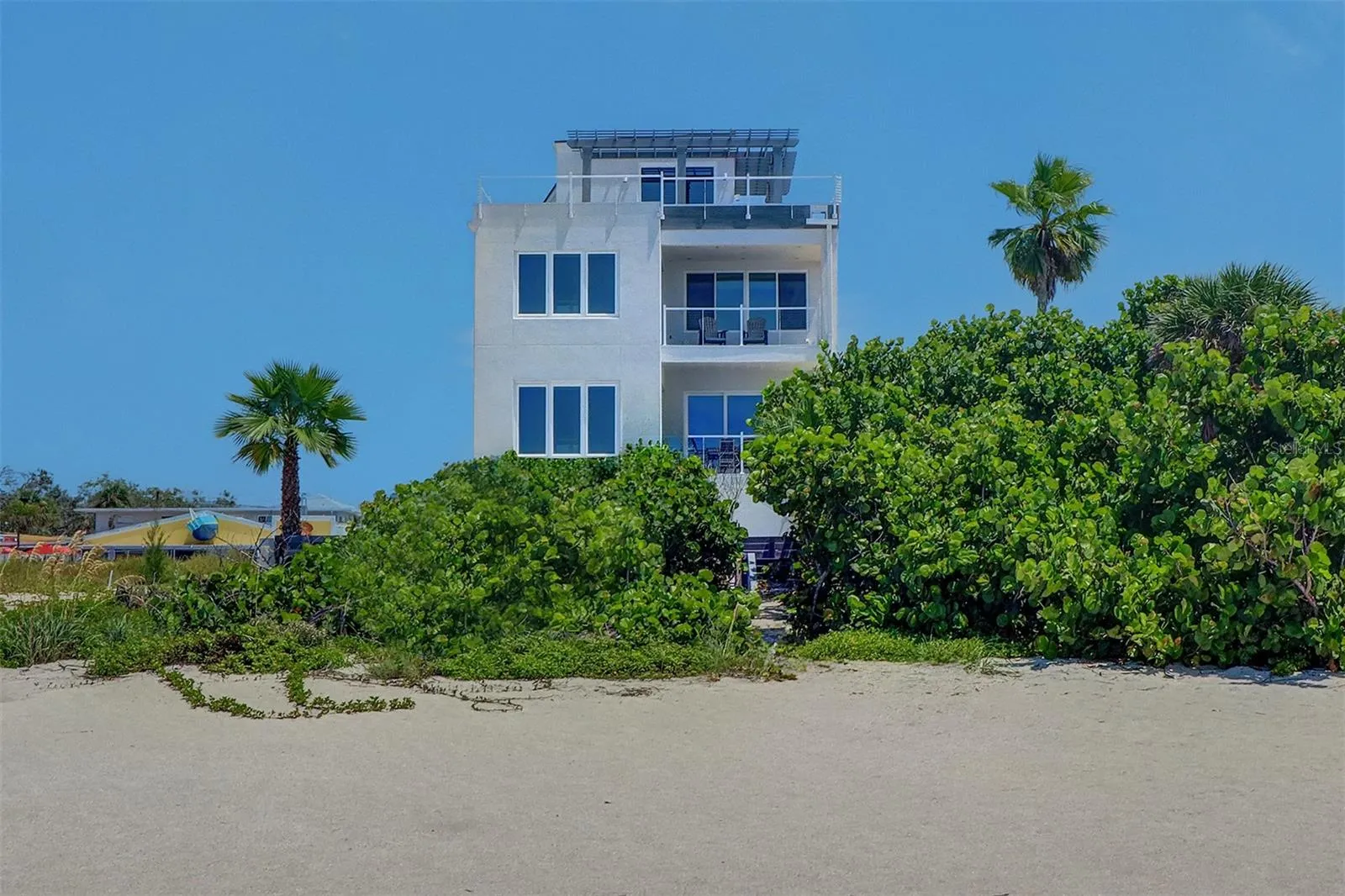 Under contract-accepting backup offers. Direct beachfront luxury home in Indian Rocks Beach. Experience modern coastal living in this exceptional single-family home in sought-after Indian Rocks Beach. Built in 2022, this contemporary masterpiece combines striking design, quality construction, and breathtaking views, offering an unparalleled Florida lifestyle. This spacious four-bedroom, 5.5-bath residence boasts over 5,500 total square feet, 3,870 square feet under air, with solid block construction and storm-rated tinted windows and doors for energy efficiency and turtle protection. A three-car tandem garage accommodates up to six vehicles. Go outside to your private paradise with a beachfront heated swimming pool and hot tub, expansive lounge deck with sun chairs, picnic tables and barbecue grill, and a private path with direct access to the sugar-sand beach. Inside, a custom double-door entry with etched glass tropical artwork welcomes you into a grand foyer with elevator access to all four levels. The main living level offers a coastal-elegant ambiance with floor-to-ceiling windows framing epic water, beach, sunrise and sunset views. Driftwood-inspired plank tile flooring flows throughout. The gourmet chef’s kitchen is a dream with a large island with seating, premium Thermador stainless steel appliances, built-in double ovens, cooktop range and hood, full-size wine refrigerator, custom wood cabinetry, white with gray veined quartz countertops, intricate tile backsplash and designer pendant lighting. Both the kitchen and living area open to a spacious balcony overlooking the pool and beach. This level also features a guest bedroom with en suite, powder room, and laundry/mechanical room. The third level hosts the luxurious beachfront primary suite with a sprawling balcony, spa-inspired bath with a free-standing soaking tub, custom tile shower with glass enclosure, and a walk-in closet with custom built-ins. Two additional bedrooms with en suites, each with designer baths, share a hallway featuring a stylish wet bar with sink, mini-refrigerator and stone countertops. The top floor offers a unique loft-style studio complete with a kitchenette, queen-size pullout sofa, full bath, and two sliding doors leading to a rooftop terrace with 360-degree panoramic views of the Gulf and beyond. Ideal as a primary residence, vacation retreat or high-income investment property, this home has no minimum rental restrictions and comes fully furnished with elegant coastal décor, turnkey and ready to enjoy. In walking distance to charming shops, boutiques, restaurants and pubs, with convenient access to Clearwater Beach, major bridges and two international airports, enjoy world-class fishing, snorkeling, paddle boarding, boating, or simply unwind on the beach with a cold drink as the sun sets over the Gulf.