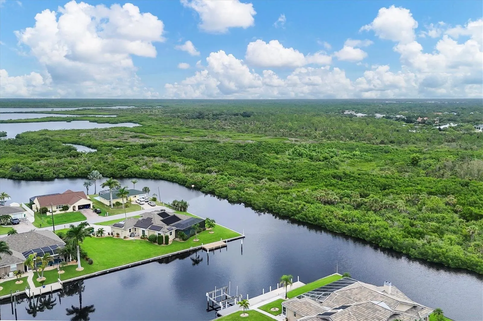 This property is a Stand-Out Head-Turner. Enjoy an Exceptional lifestyle with an exquisite blend of elegant design, high-tech, and Modern Coastal Living. Waterfront Luxury starts and ends here! This stunning Sailboat-Access heated pool home sits on a rare double lot (.46 acres) at the end of a quiet street, offering exceptional privacy and serenity. With 285 feet of concrete Seawall, deep-water dockage with no Bridges to open water, and gorgeous east-facing canal views bordering a Protected Bird Sanctuary, this is truly a Private Waterfront Sanctuary. Being a Solar Certified Home, your energy costs are extremely low. BEAUTIFULLY Updated & METICULOUSLY Maintained, this home offers an open floor plan with luxury finishes, including stacked stone accents, granite counters, and a Chef-Inspired Kitchen featuring a Viking dual-fuel range and premium stainless appliances, RO system. The spacious owner’s suite Boasts direct pool access, dual walk-in closets and a Spa-like bath with dual vanities, Roman Shower with rainfall and multi-jet panel plus a jetted soaking tub. The outdoor area is exceptionally designed for entertaining, featuring a heated pool, an outdoor pizza-oven with grilling station. For Boating Enthusiasts, the 24×10 Dock has new decking and dolphin pilings providing everything you need to launch your next adventure. Additional highlights include a 660 sq ft 3-Car Garage complete with Solar Power System, Storm Smart hurricane Screens, 250-Gallon buried Propane tank, Back-up Generator, Well irrigation, Upgraded plumbing, new 2023 roof, lighting rod protection system, Hurricane automatic roll down shutters, Accordion Shutter on front door, new windows, security cameras, freshly painted. This is a rare opportunity to own a private secure waterfront estate that combines elegance, efficiency, and the ultimate boating Florida lifestyle. A Stand-out Dream Home awaits you. Call Today…