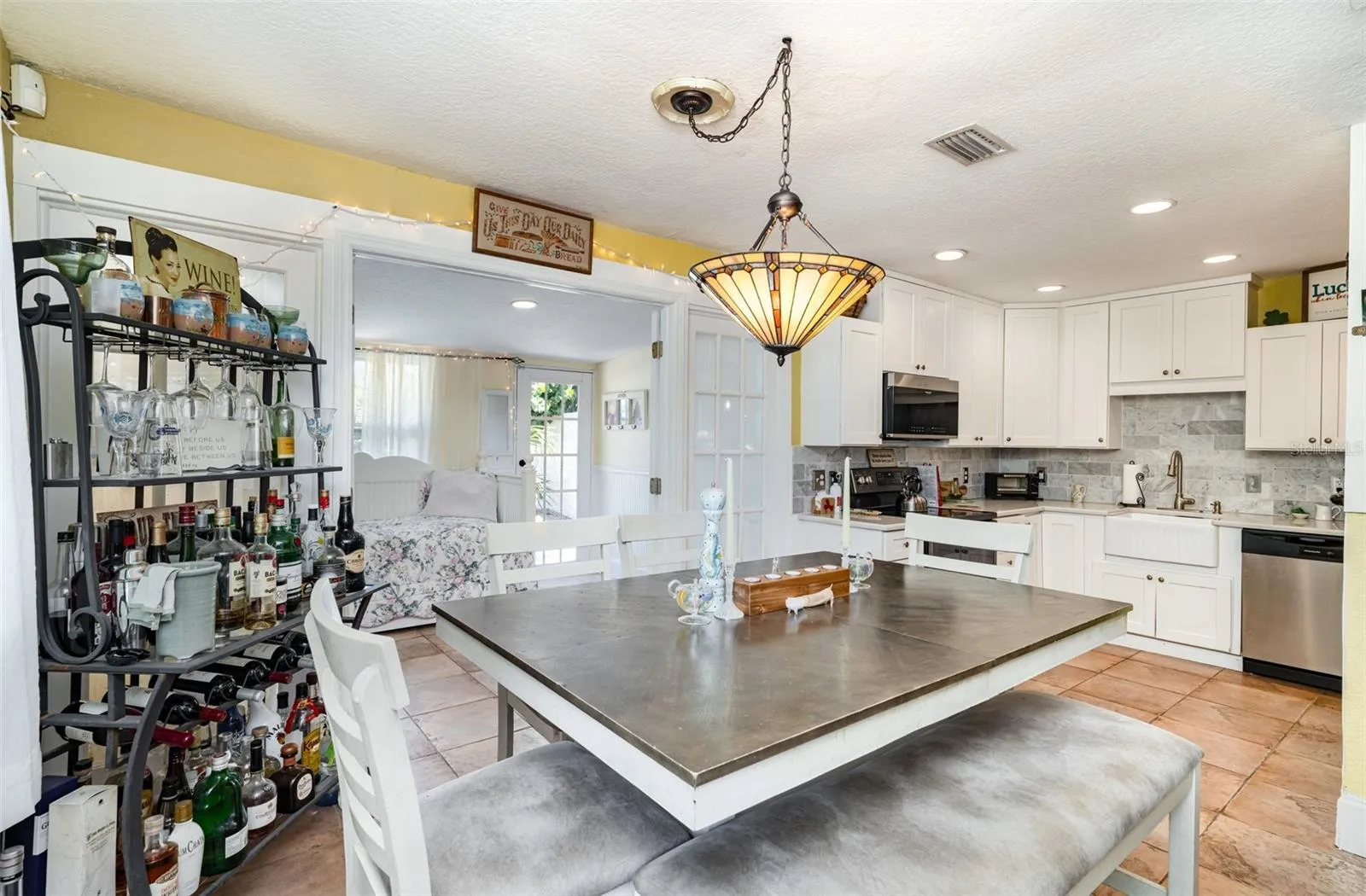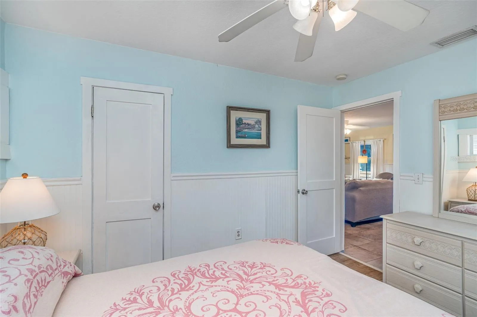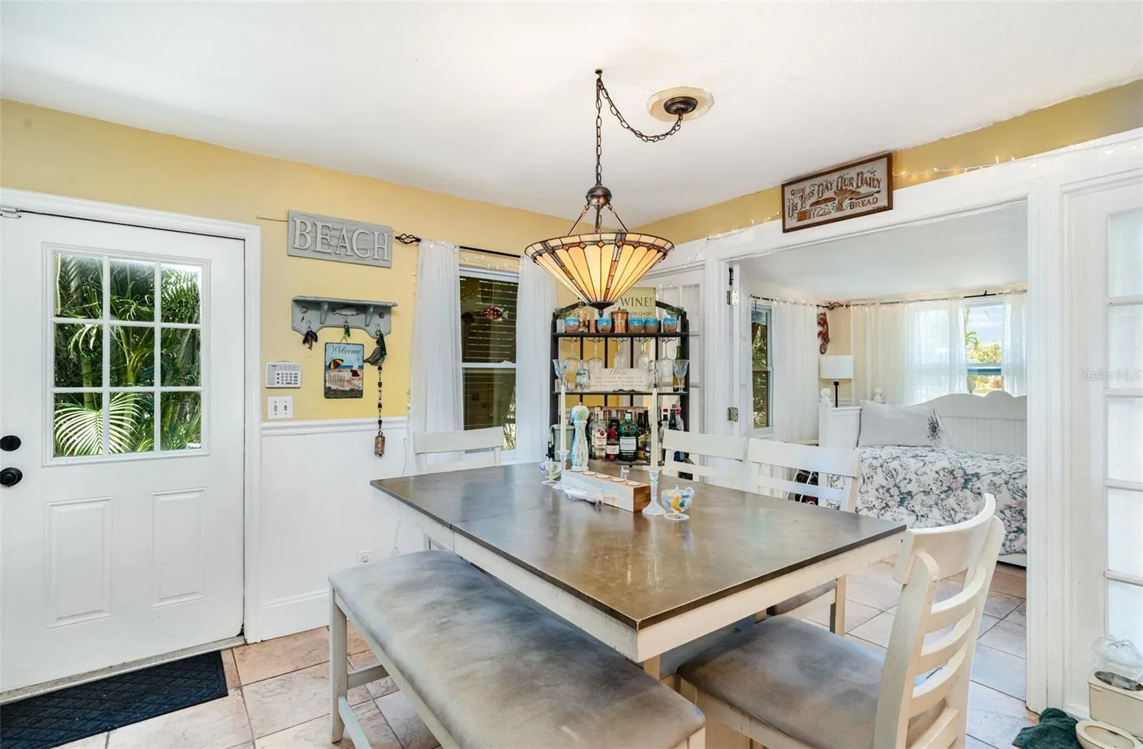 The main updated cottage offers a light-filled, open floor plan with 2 bedrooms, 2 bathrooms, a den, laundry room, and spacious living area. The kitchen was tastefully updated in 2021 with quartz countertops, hardwood cabinets, and newer appliances, complete with a breakfast bar for casual dining. Open the windows and let the coastal breeze fill your home, or step outside to the wooden deck and tiki bar—perfect for entertaining and enjoying evenings listening to the nearby Gulf waves.