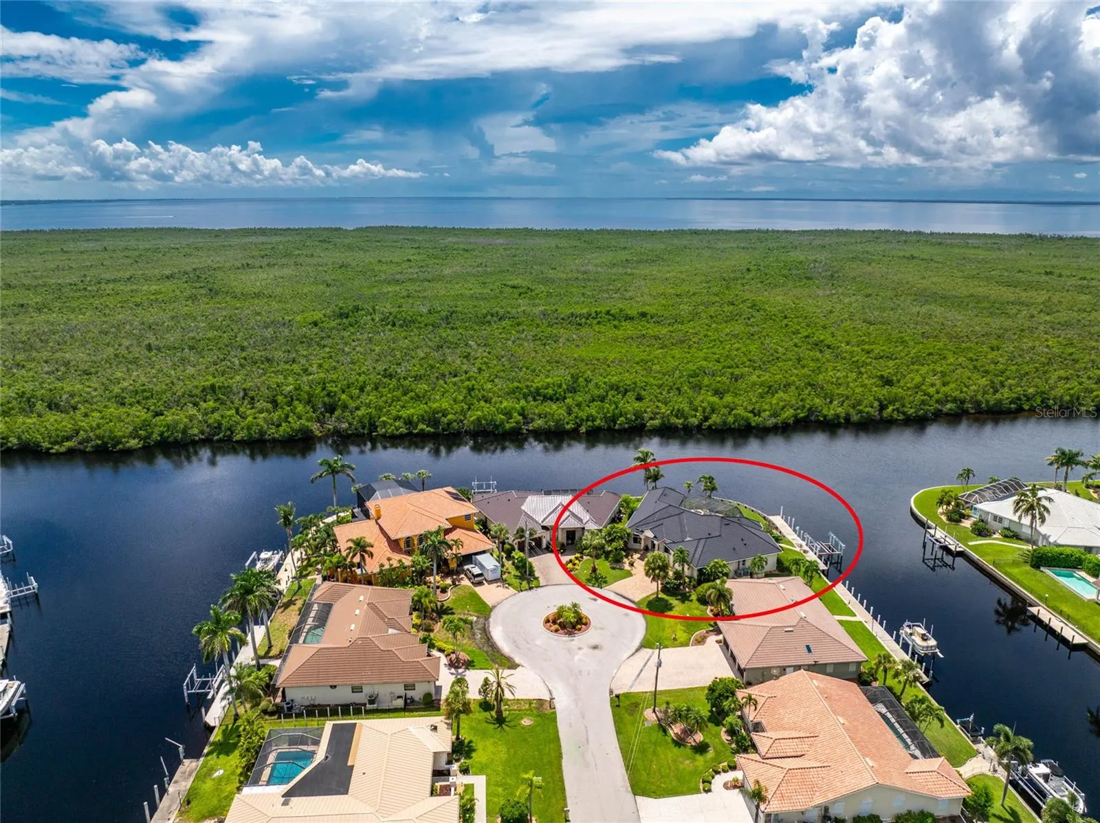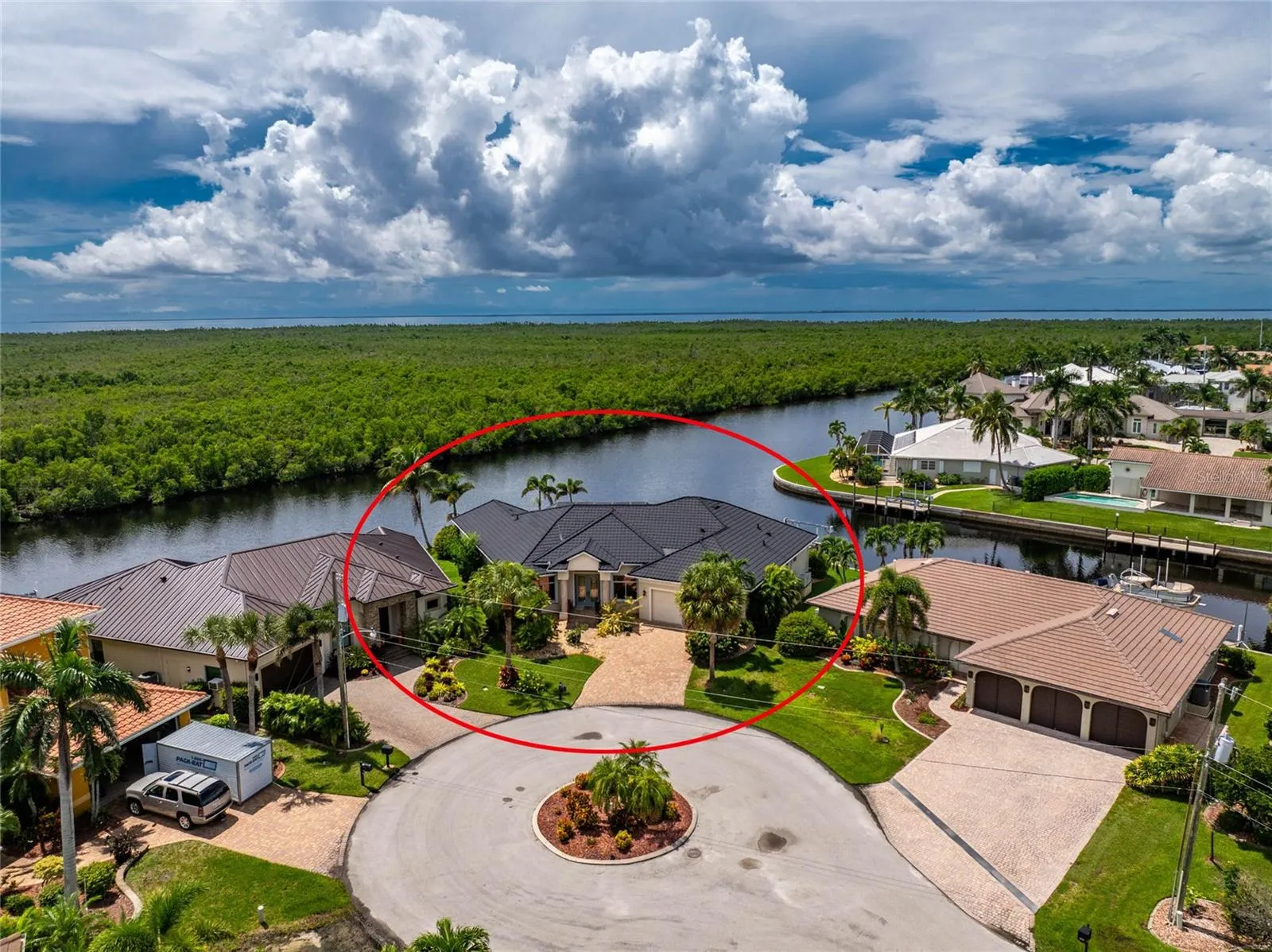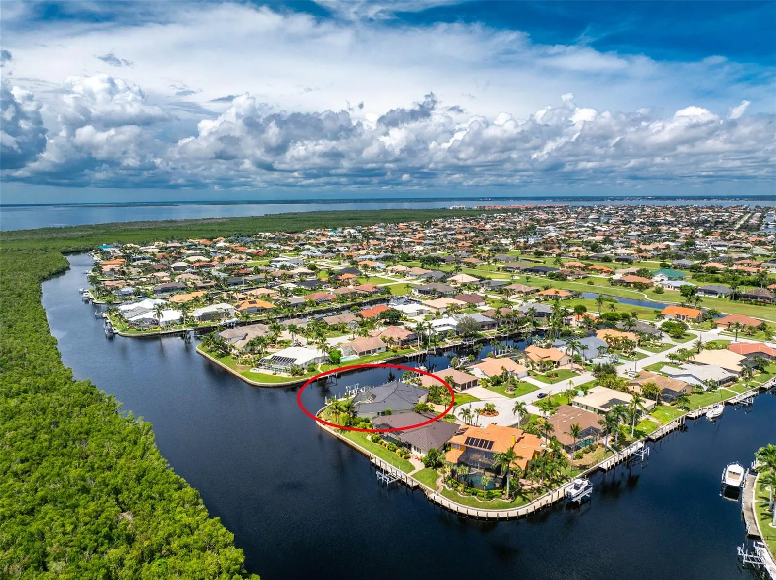 Under contract-accepting backup offers. Impressive custom WATERFRONT home built by Towles Construction located on a TIP LOT in desirable Punta Gorda Isles. *New 173 foot seawall* This spacious home offers 3 Bedrooms, Office and 2.5 Bathroom home with attached 2.5 Car Garage. This light and bright home offers an open and split bedroom floor plan with Great Room, formal Dining Room, well appointed Kitchen with Dining area, Media Room and screened Lanai. The Great Room offers disappearing sliding glass doors that open to the Lanai. The Kitchen offers granite counters, wood cabinets, excellent cabinet and counter space, built in oven, 4 burner gas range, desk and closet pantry. The home Office features a built in desk and bookcases.The Master Bedroom suite features Lanai access, oversized walk in closet/dressing room and private bathroom with dual sinks, walk in shower and garden tub. There are two additional generous sized bedrooms and one of the bedrooms has direct access to the guest bath.A half bath is located just outside of the media room and is also a Pool Bath. Continue to the screened Lanai via sliding glass doors with inground pool and attached spa. Continue to the waterfront with concrete seawall (maintained by the cit of Punta Gorda), 45 foot concrete dock and 13,500 lb boat lift. Other features include vaulted ceilings, cathedral ceilings, hurricane protection, irrigation system. **NEW ROOF 2023** There is NO HOA and the utilities are city water and sewer. This home is minutes from historic downtown Punta Gorda shopping, dining, medical care, waterfront parks, art galleries, walking and biking paths, Charlotte Harbor Event Center, boat ramps, fishing piers, weekend farmer and artisan markets, downtown events and more!